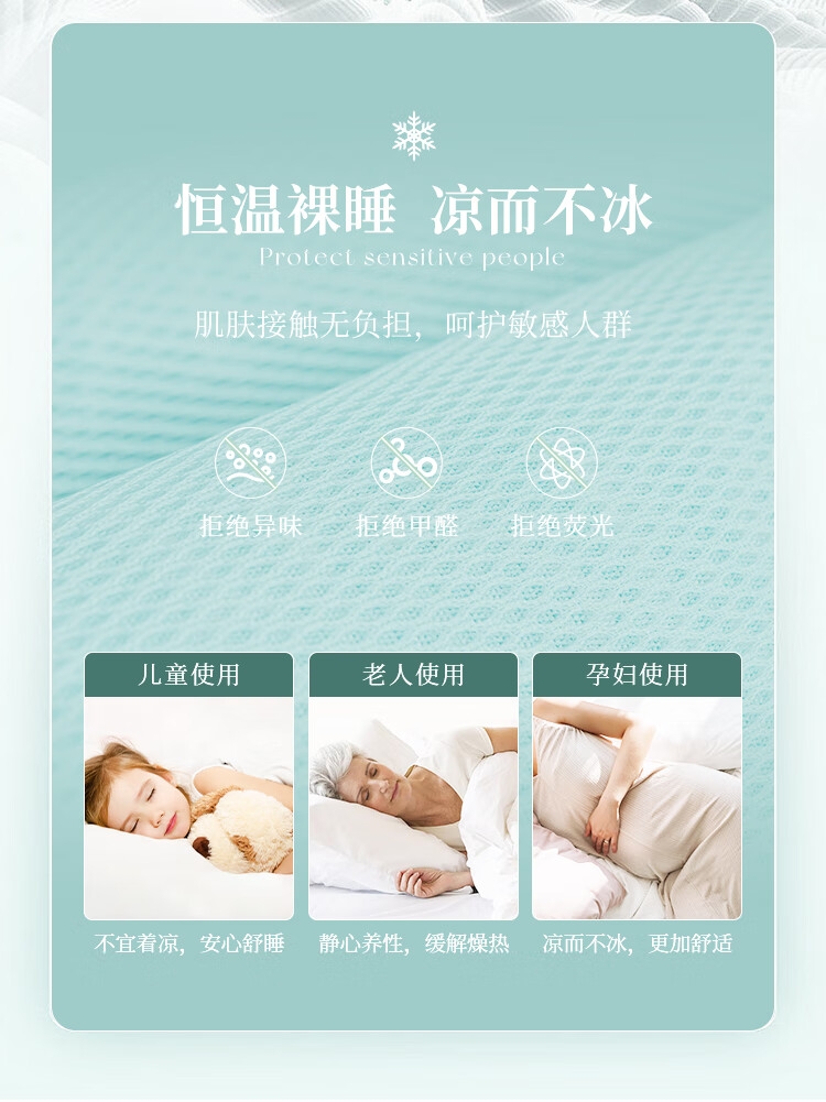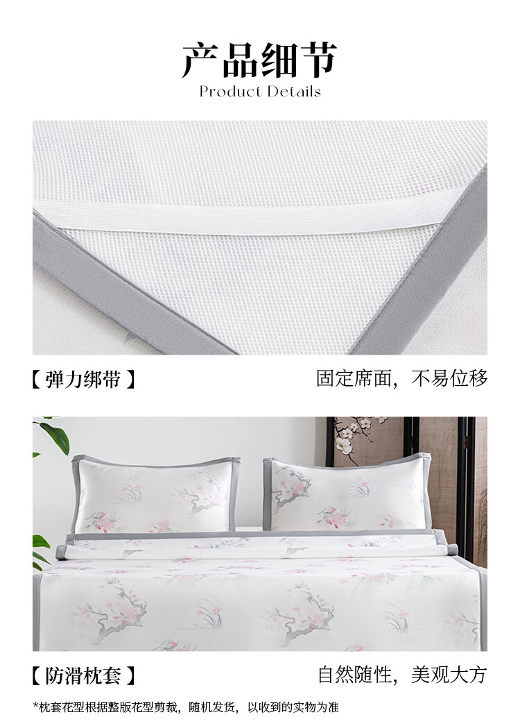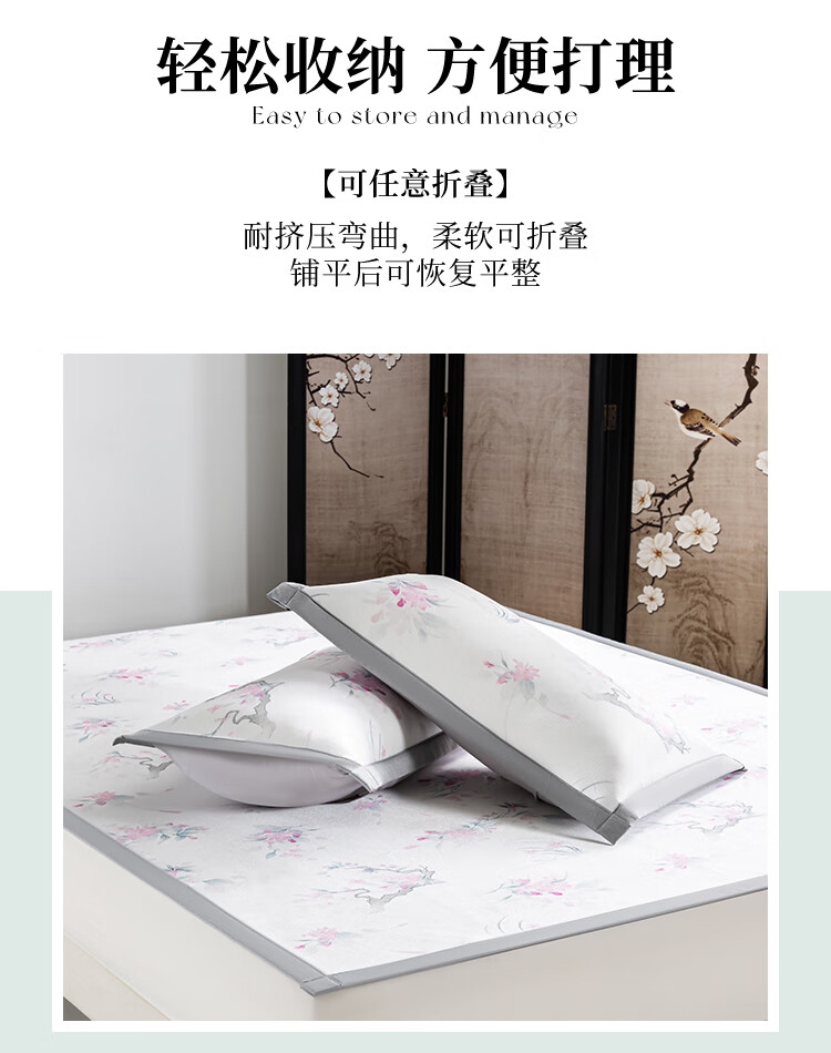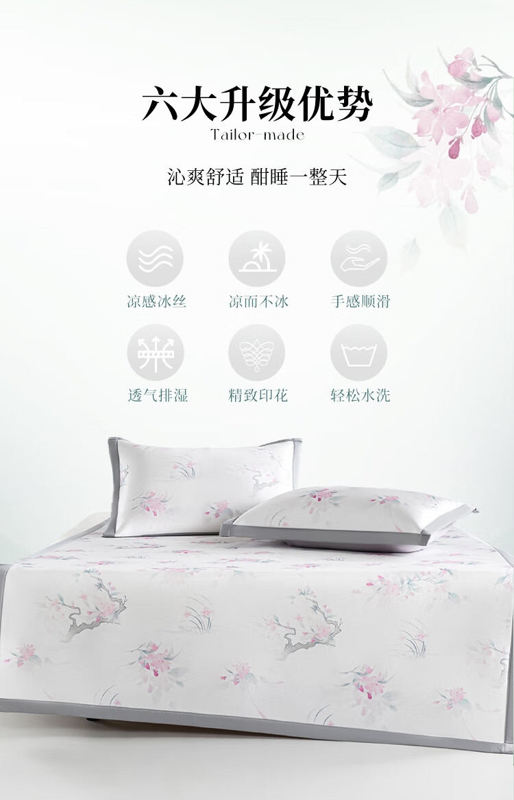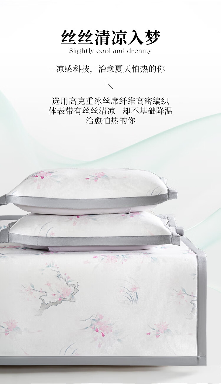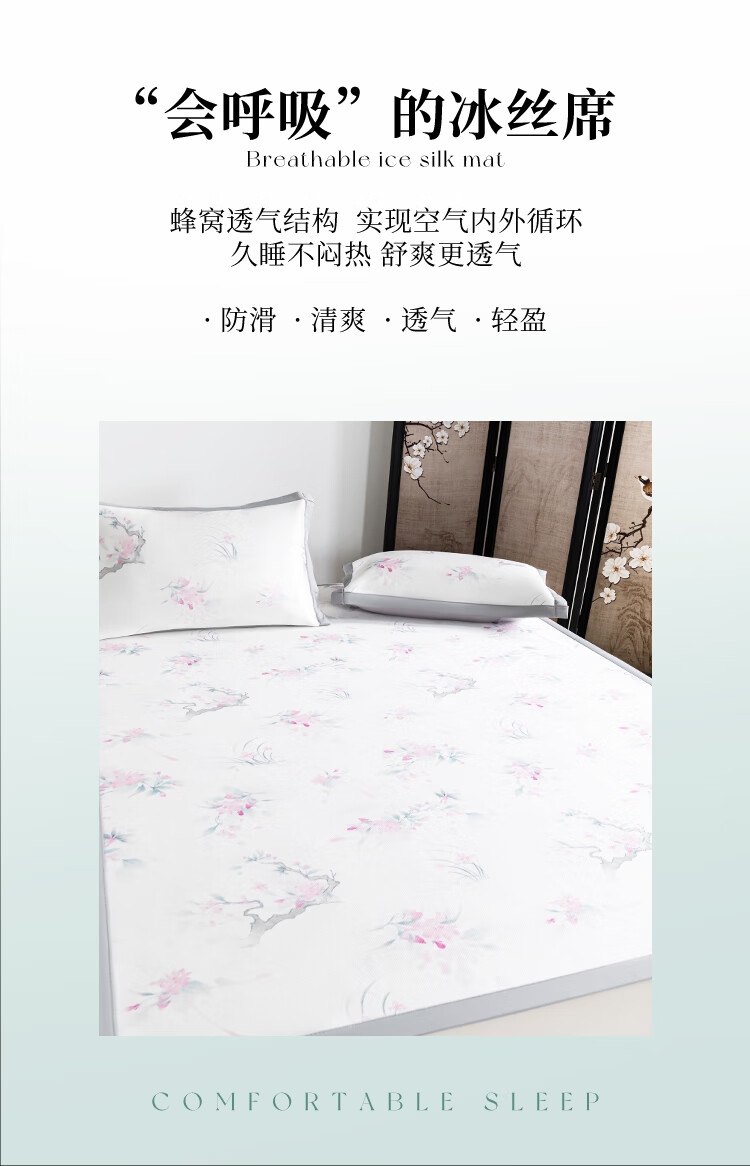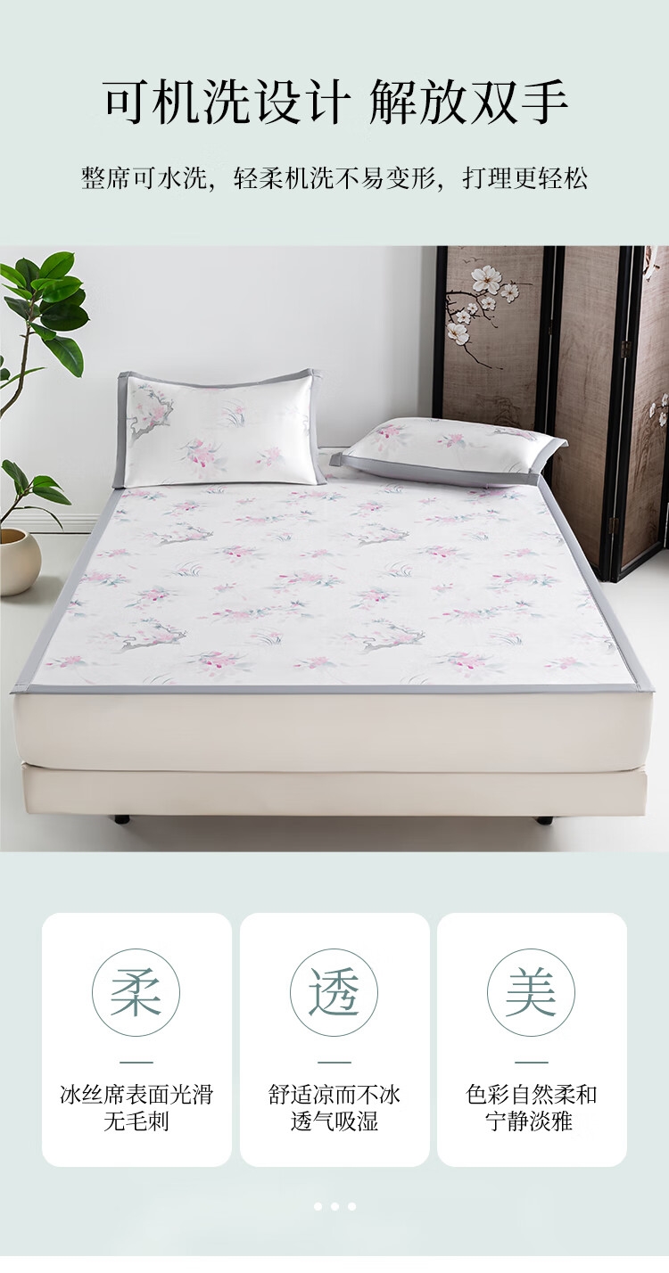 席面细腻滑润,透气性好;可水洗,收纳更方便;冰丝席凉而不冰,可在空调房内使用