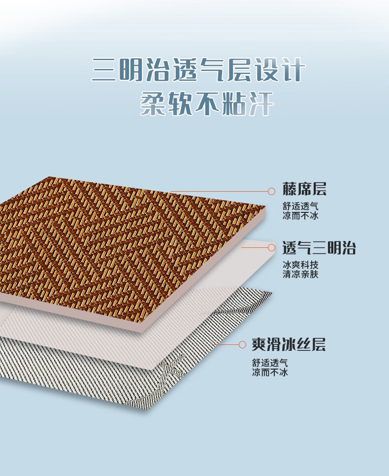 双面双席随心换;凉而不冰,一席两用;一席双感,适配不同体感需求,解锁清凉新体验