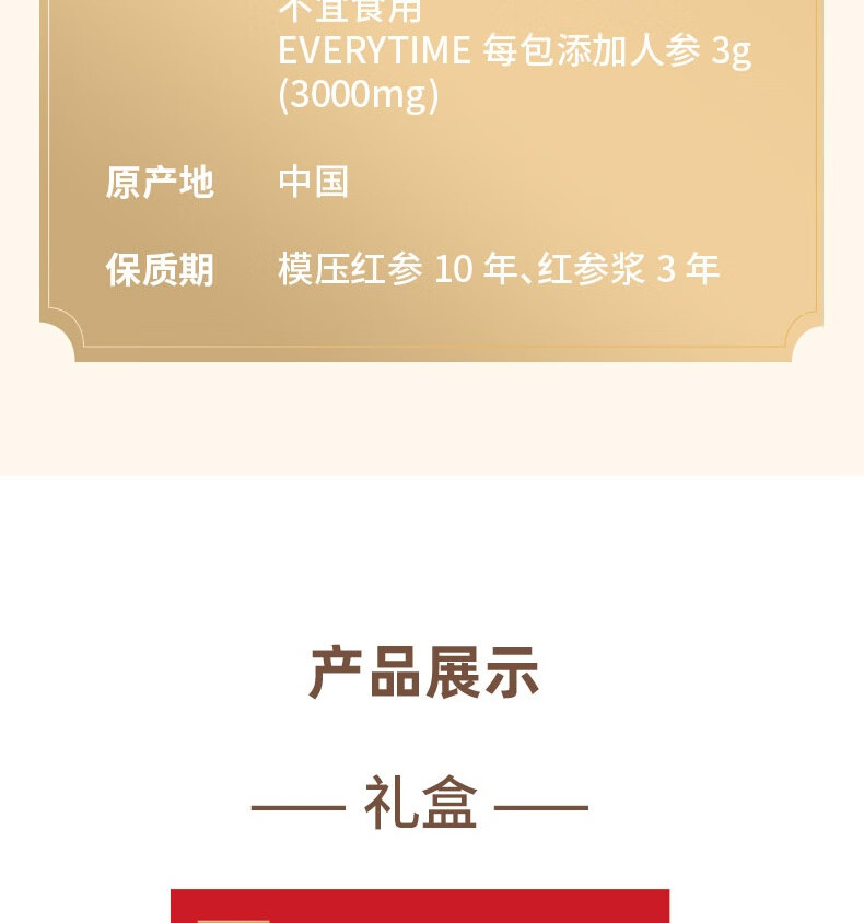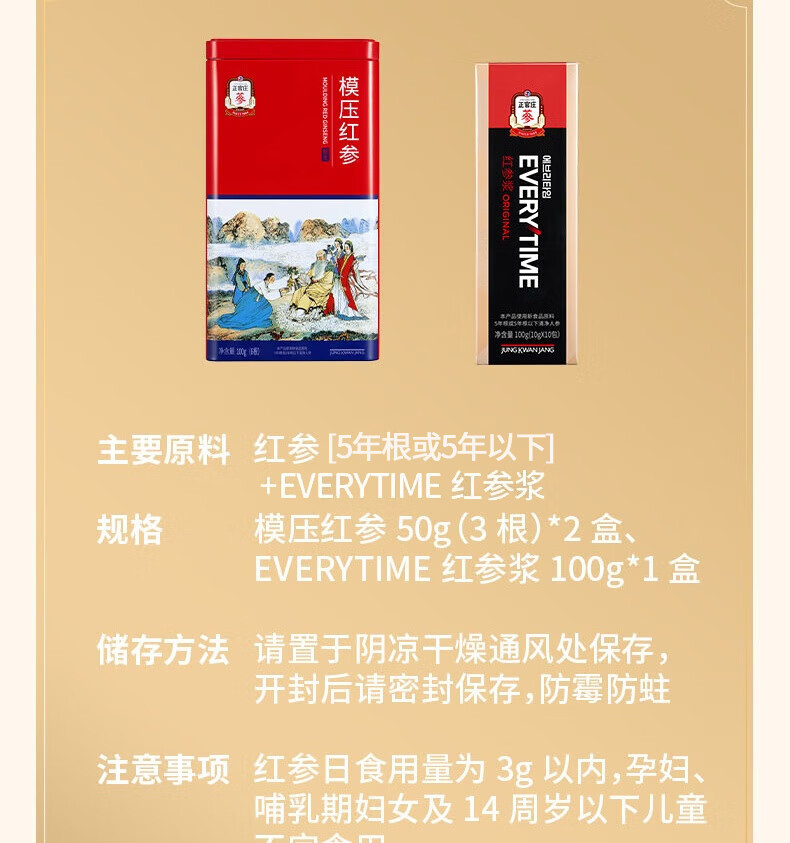 配置清单:模压红参50g*2+ET红参浆100g礼盒