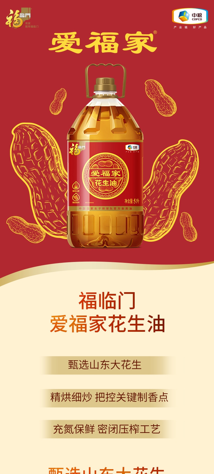 福临门 中粮爱福家压榨一级花生油5L