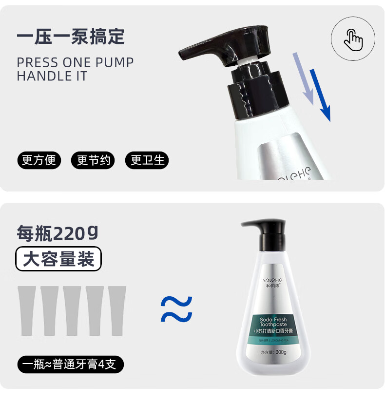 双重清洁成分;龙井绿茶清新配方,持久留香;按压式设计,便捷卫生