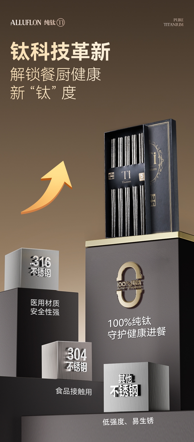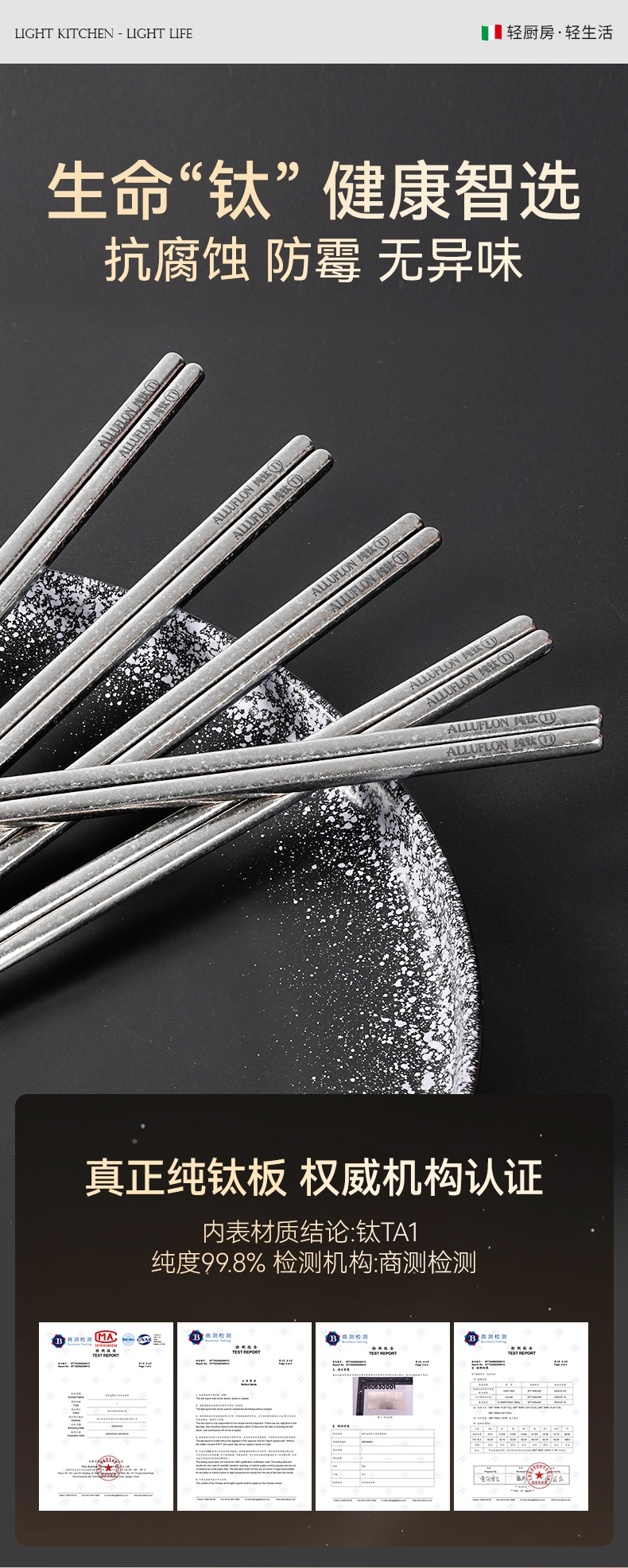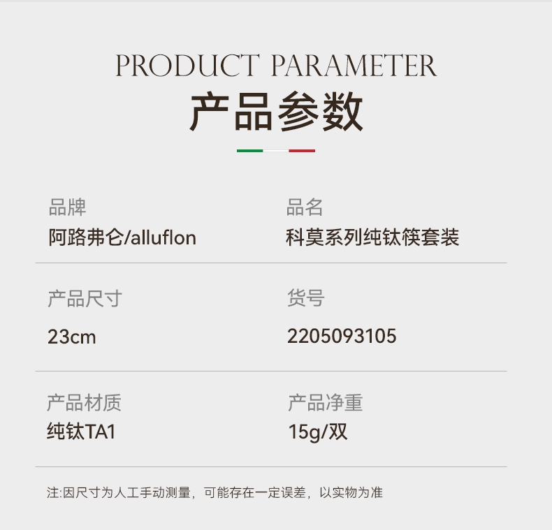 阿路弗仑 科莫系列纯钛筷套装五双装2205093105