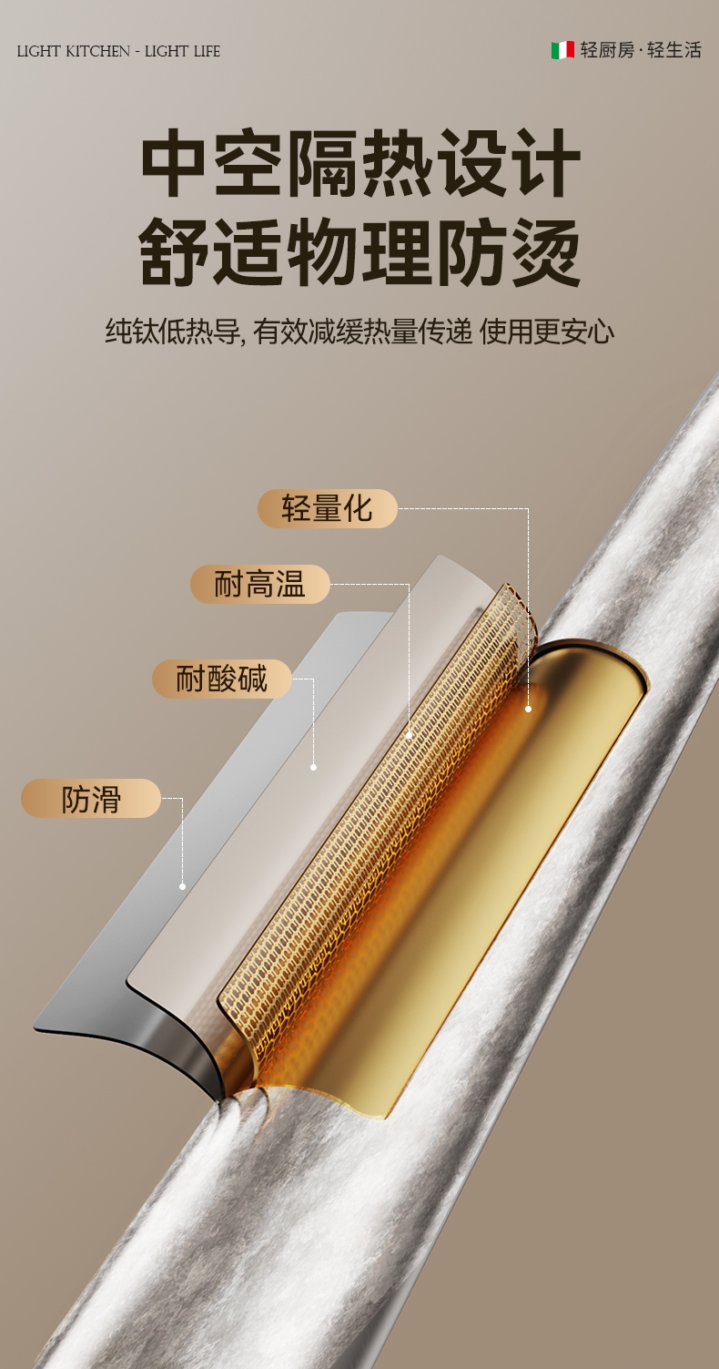 中空隔热设计,舒适物理防烫。;健康无毒,无重金属析出。;不烫嘴隔热有钛 ,低热导率,告别烫手烫嘴。