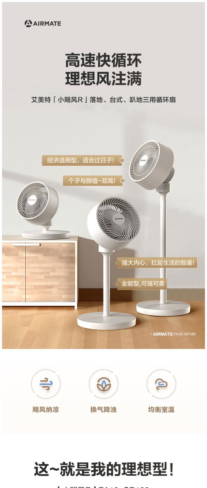 艾美特 语音遥控循环扇FA18-SR189