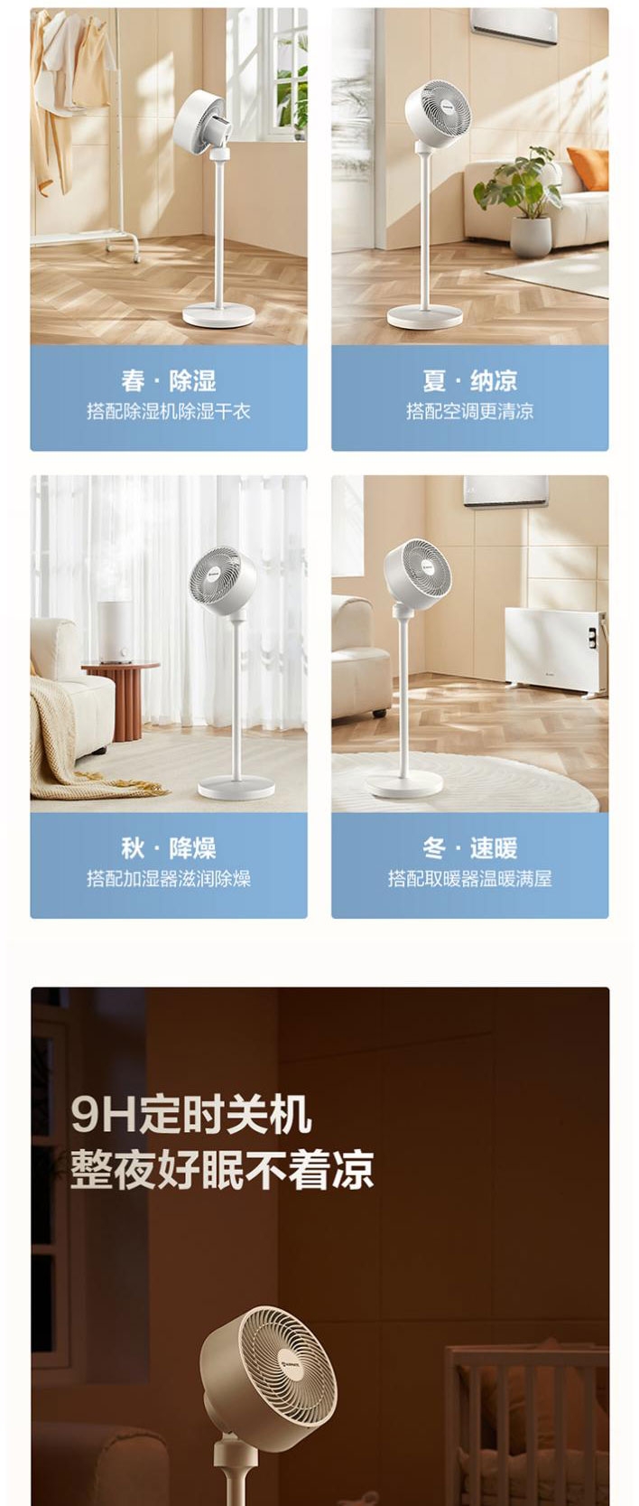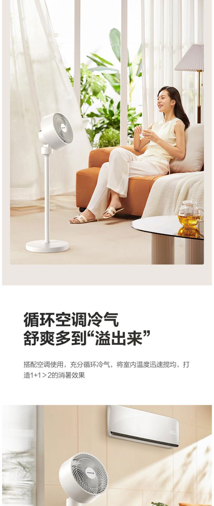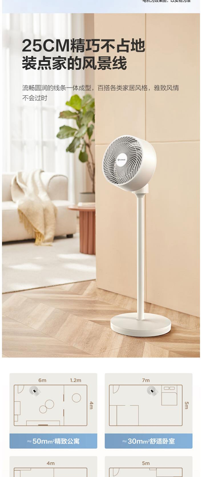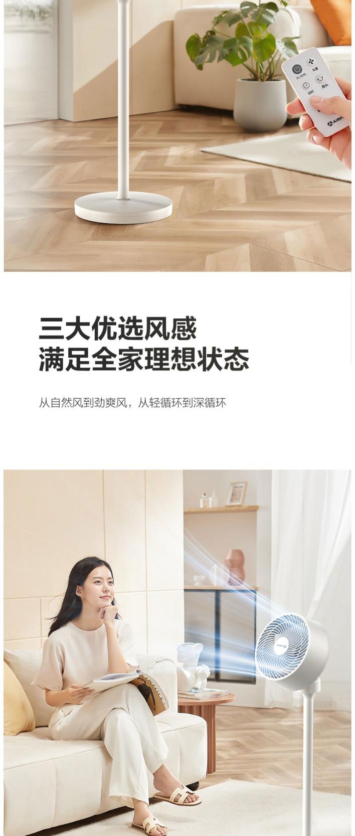 AI语音控制,“芯闪”语音系统,语音控制快如闪电;左右110°自动摆头,上下90°手动摆头;【94CM身高】颀长身姿,送风范围更广