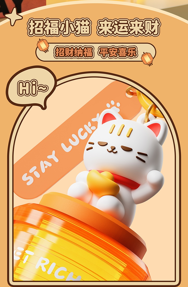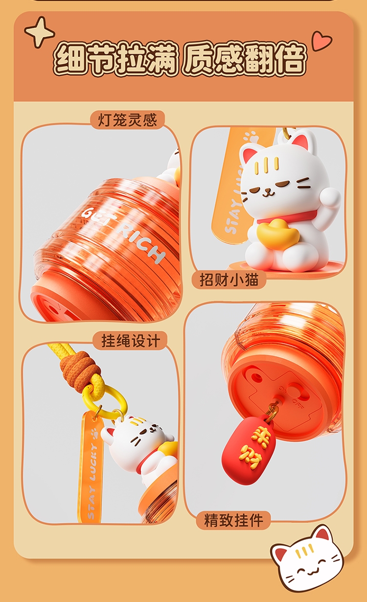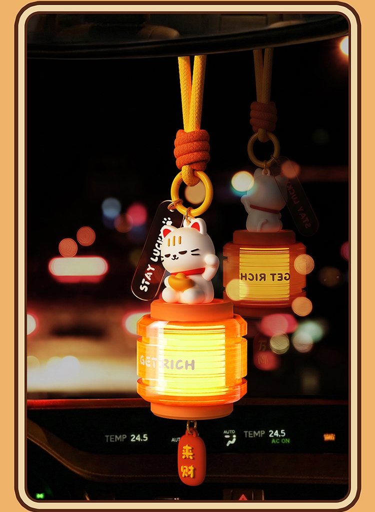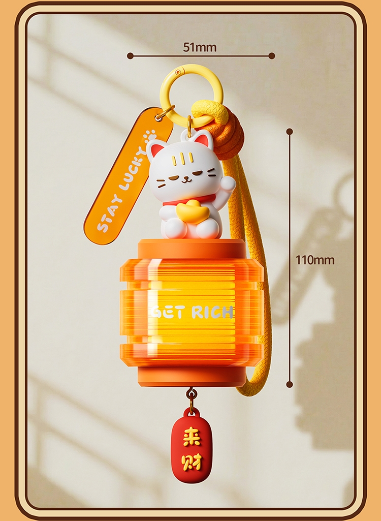 萌趣招财猫 + 国风灯笼造型,颜值直接拉满;暖光柔光不刺眼,挂在哪都是氛围感神器;「GET RICH」+「来财」双 buff 加持,; 可挂包、挂门、挂床头,一物多用超实用