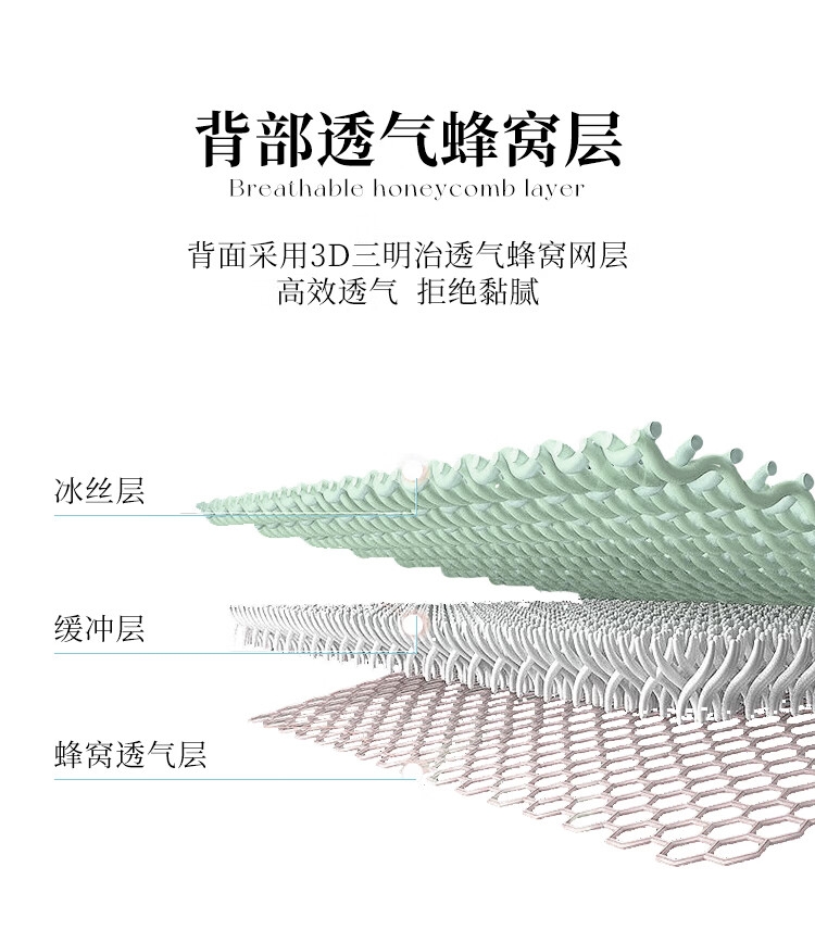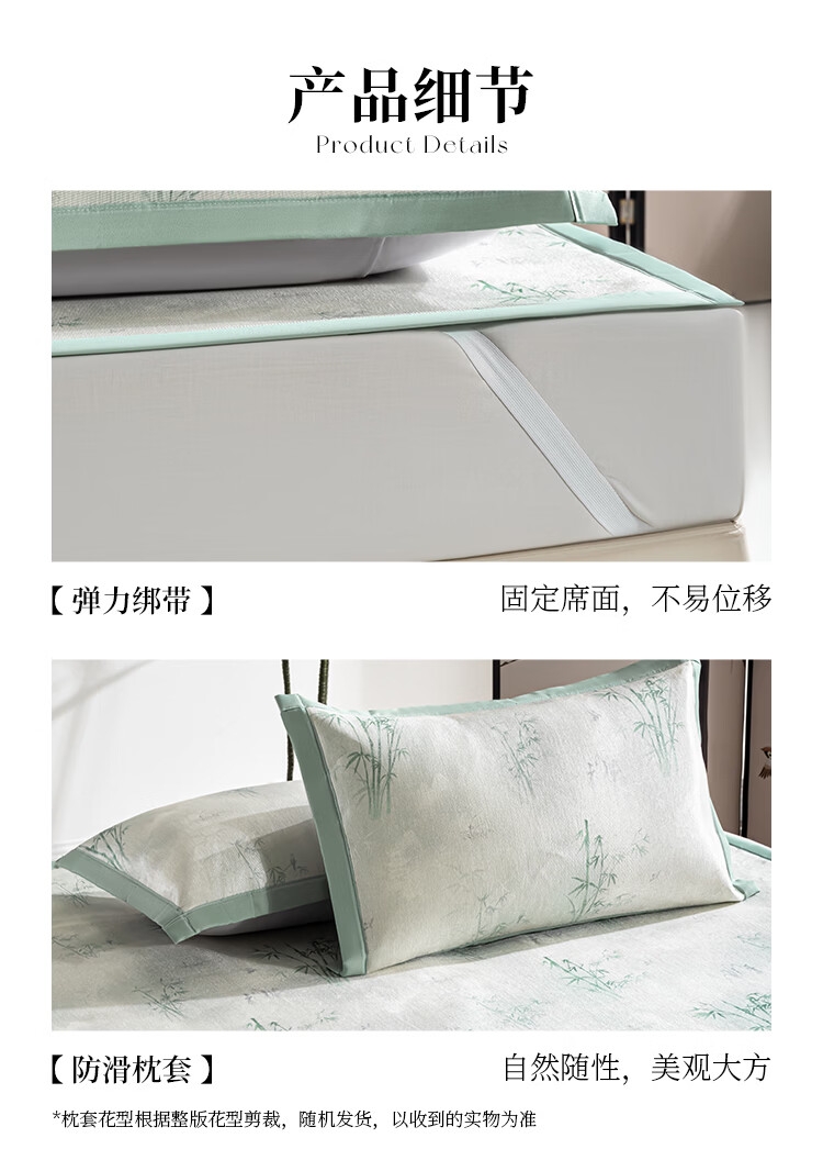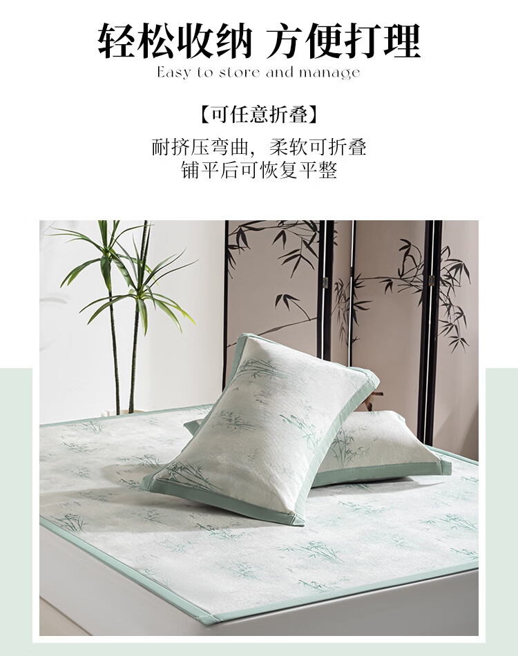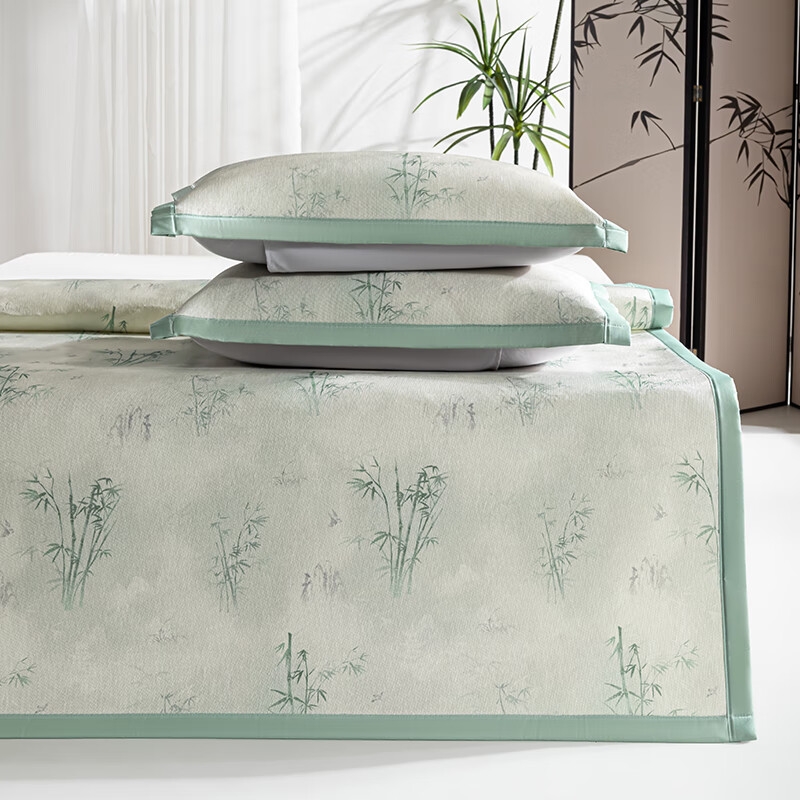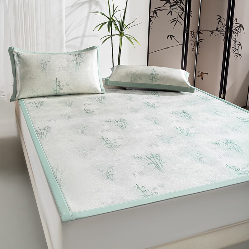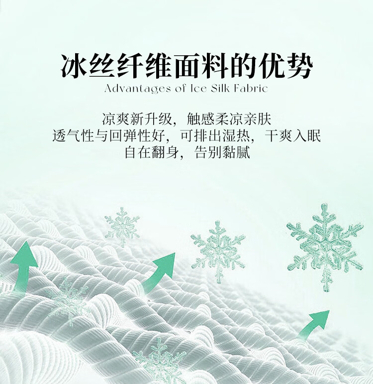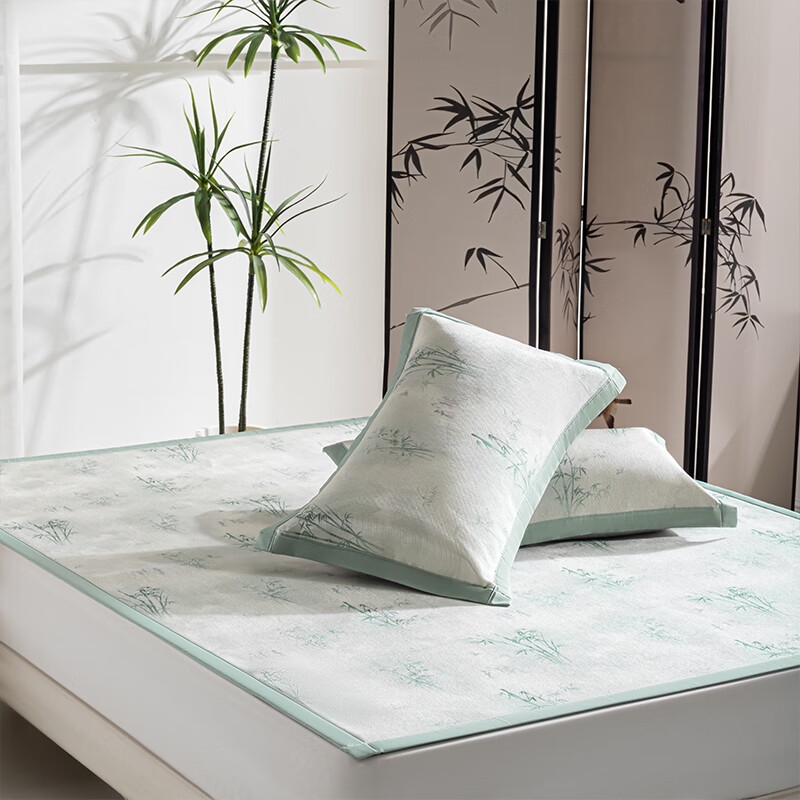席面细腻滑润,透气性好;冰丝席凉而不冰,可在空调房内使用;健康安全,无论老人还是儿童都可以使用