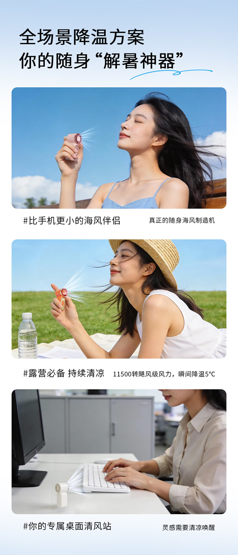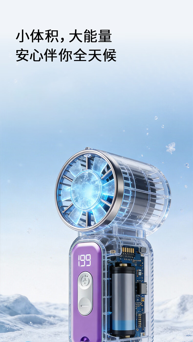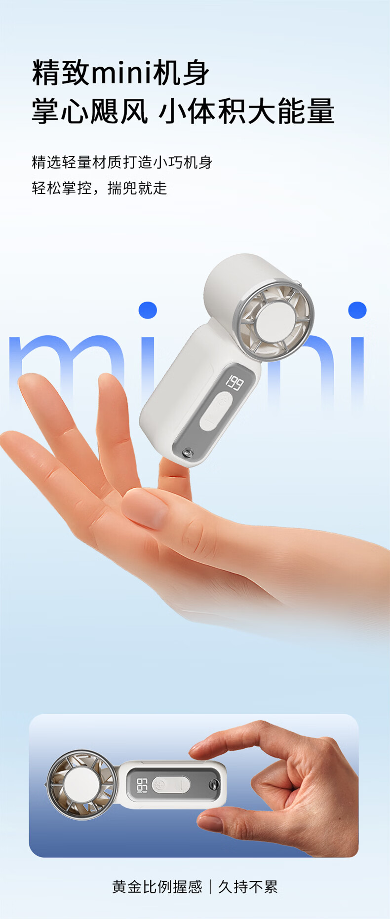 产品风量199档可调;风力强劲,简洁时尚;产品小巧携带方便,可定制企业LOGO