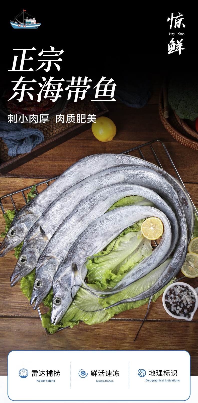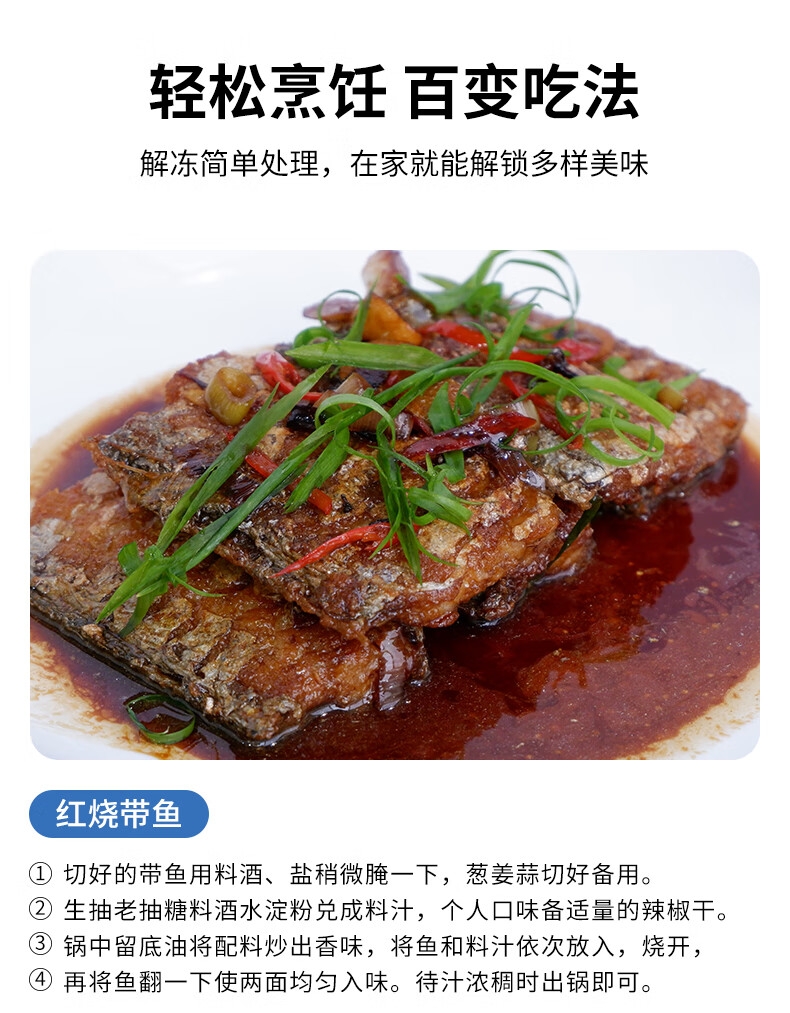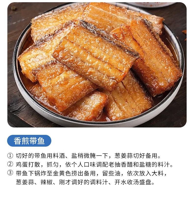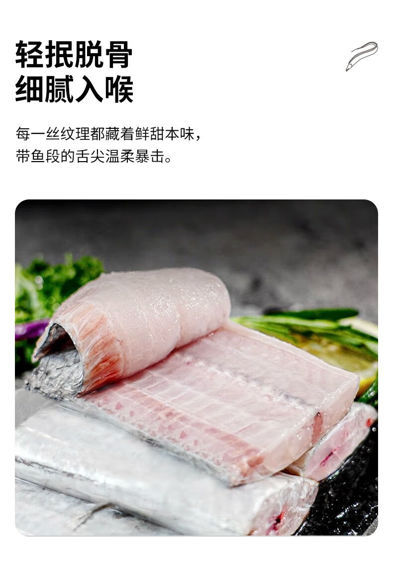 轻抿脱骨,细腻入喉;刺小肉厚 ,肉质肥美;精选当季海捕带鱼, 厚肉软刺锁鲜上桌