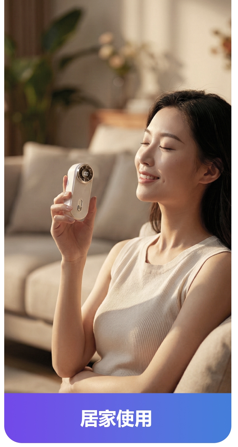 三色清新配色,搭配流线型纹理机身,质感拉满;小巧机身,一手轻松掌握,不占空间;机身搭载高清数显屏,电量 / 档位实时可见