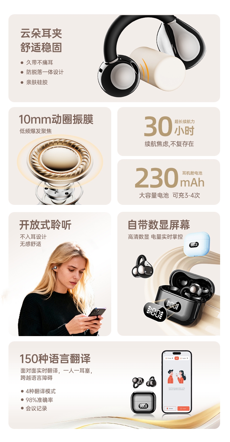 舒适耳夹;超长续航;高清音效