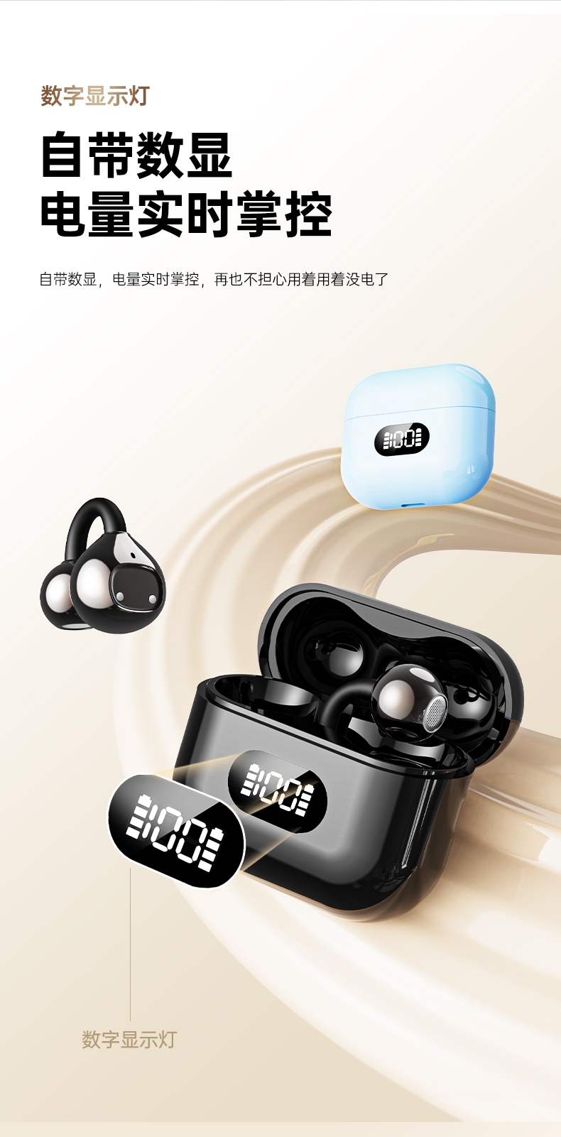 拓蓝者 智能蓝牙耳机数显双耳带仓耳夹TLZ-X62