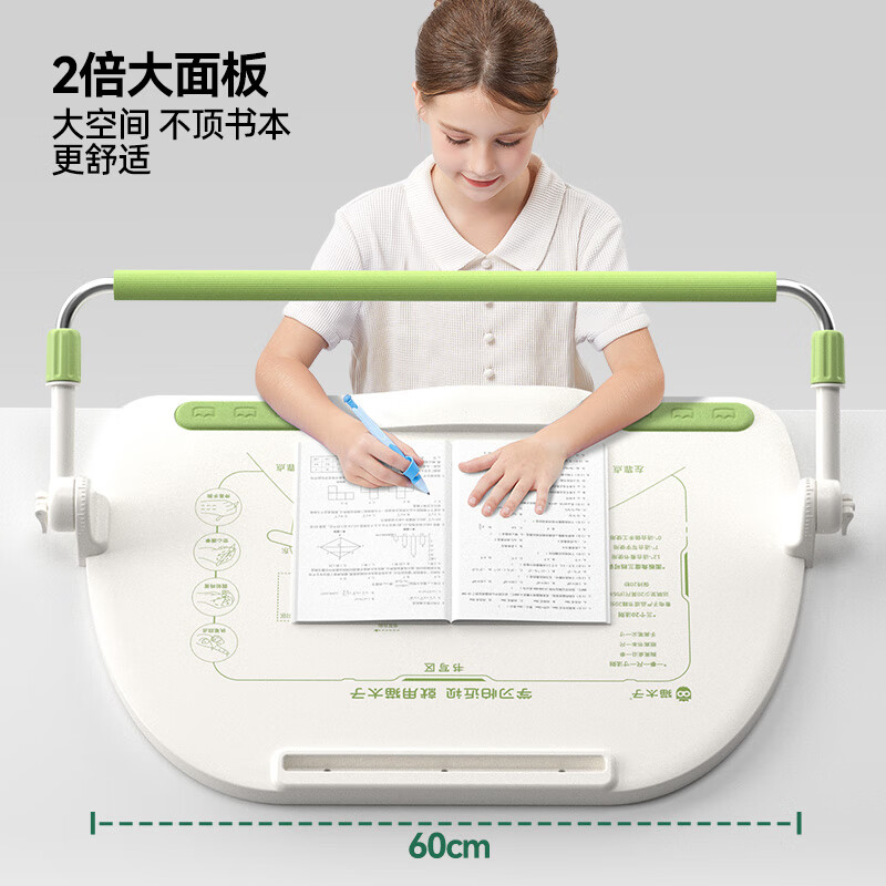 自带护臂软垫, 手臂舒适读写不累;2倍大面板,大空间,不顶书本更舒适;抬高12°,更大视野,读写不低头