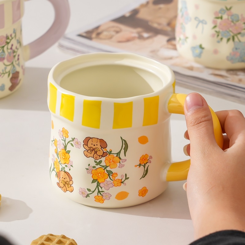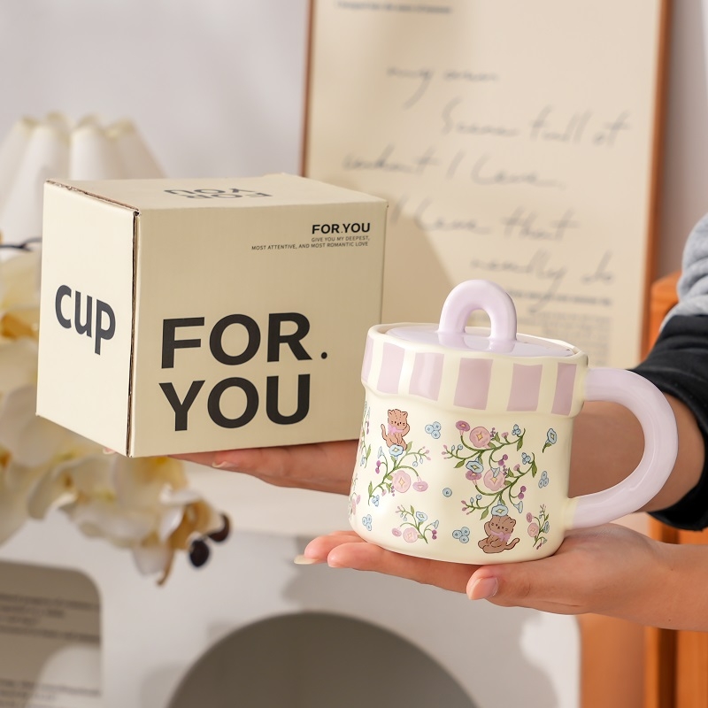 图案呈现出一片春暖花开、生机勃勃的景象,让人心动;独特杯型设计,款式新颖,不撞款;采用优质陶瓷,高温烧制,瓷质光滑细腻,使用安全放心