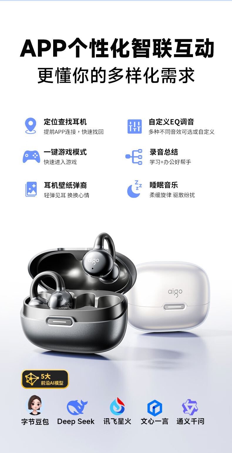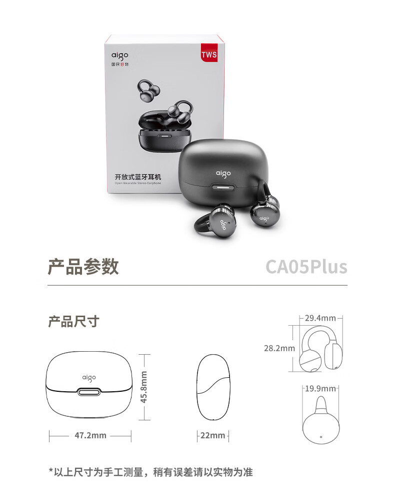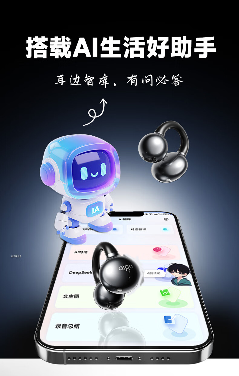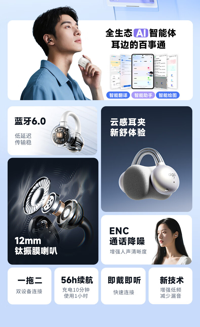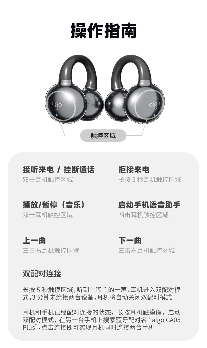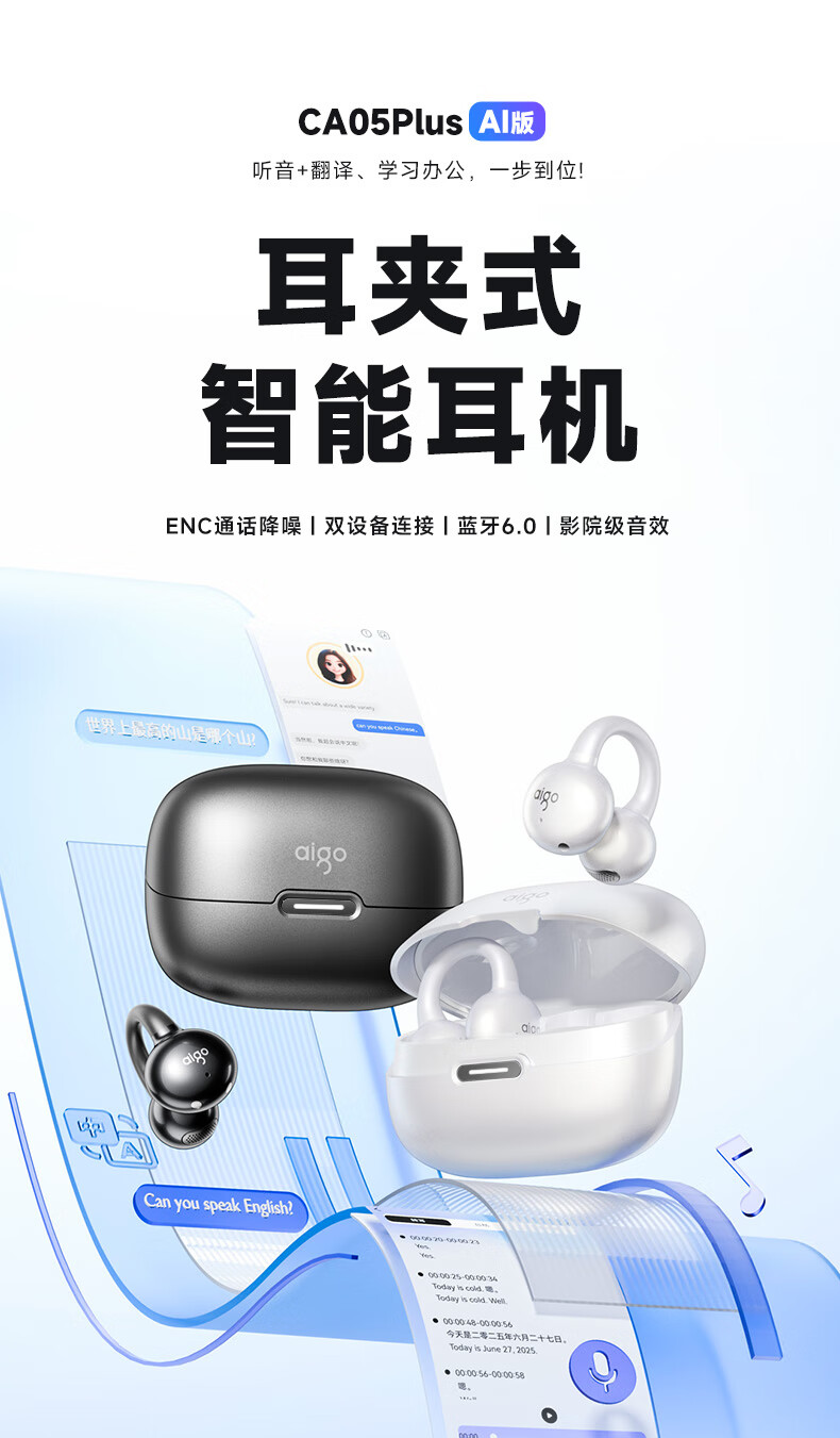 爱国者 骨传导耳夹开放式蓝牙耳机 CA05 Plus Ai版