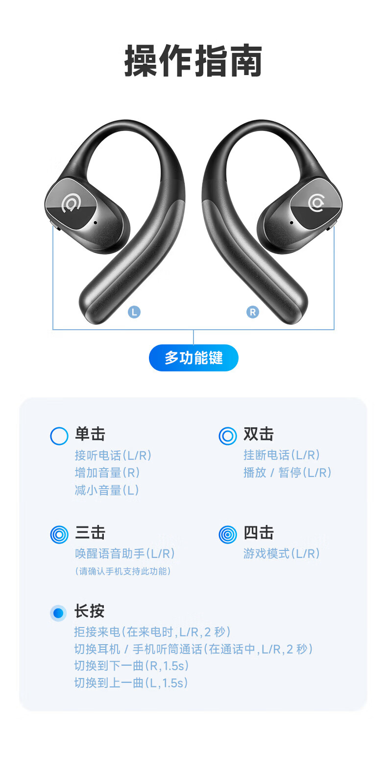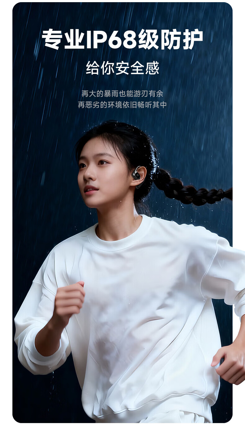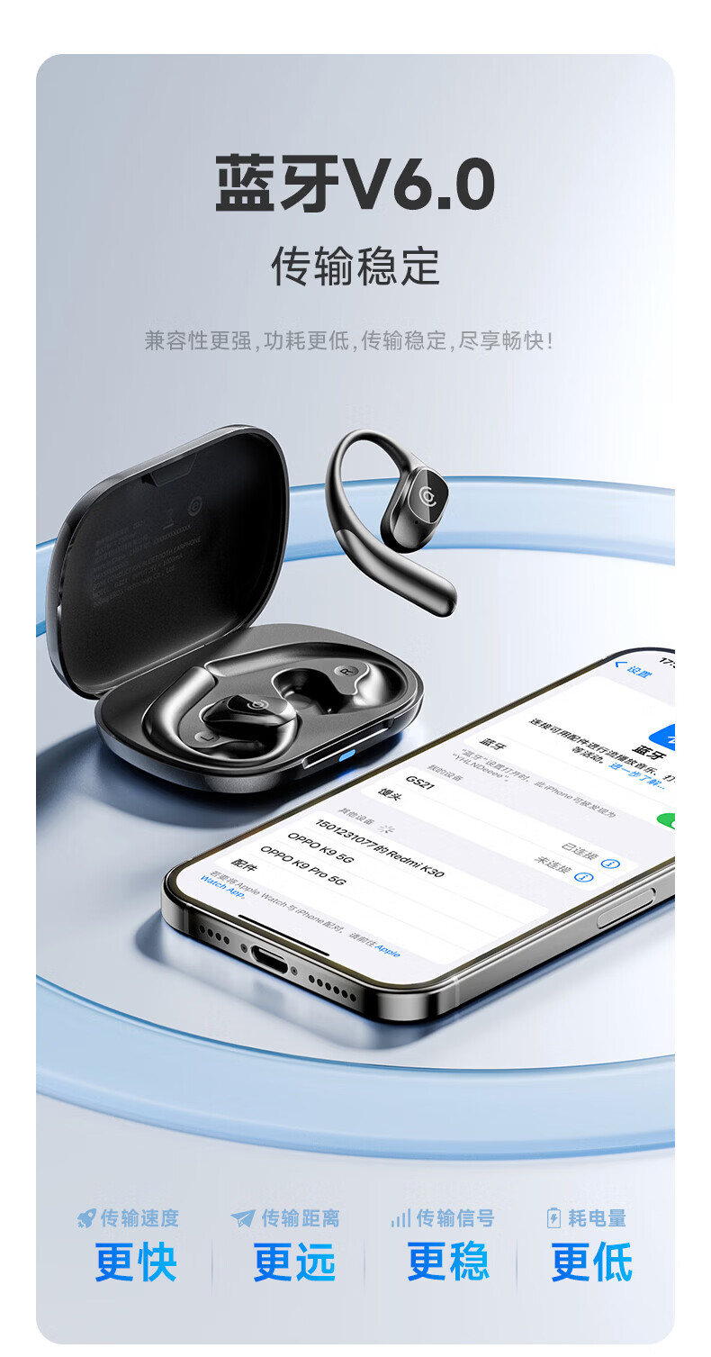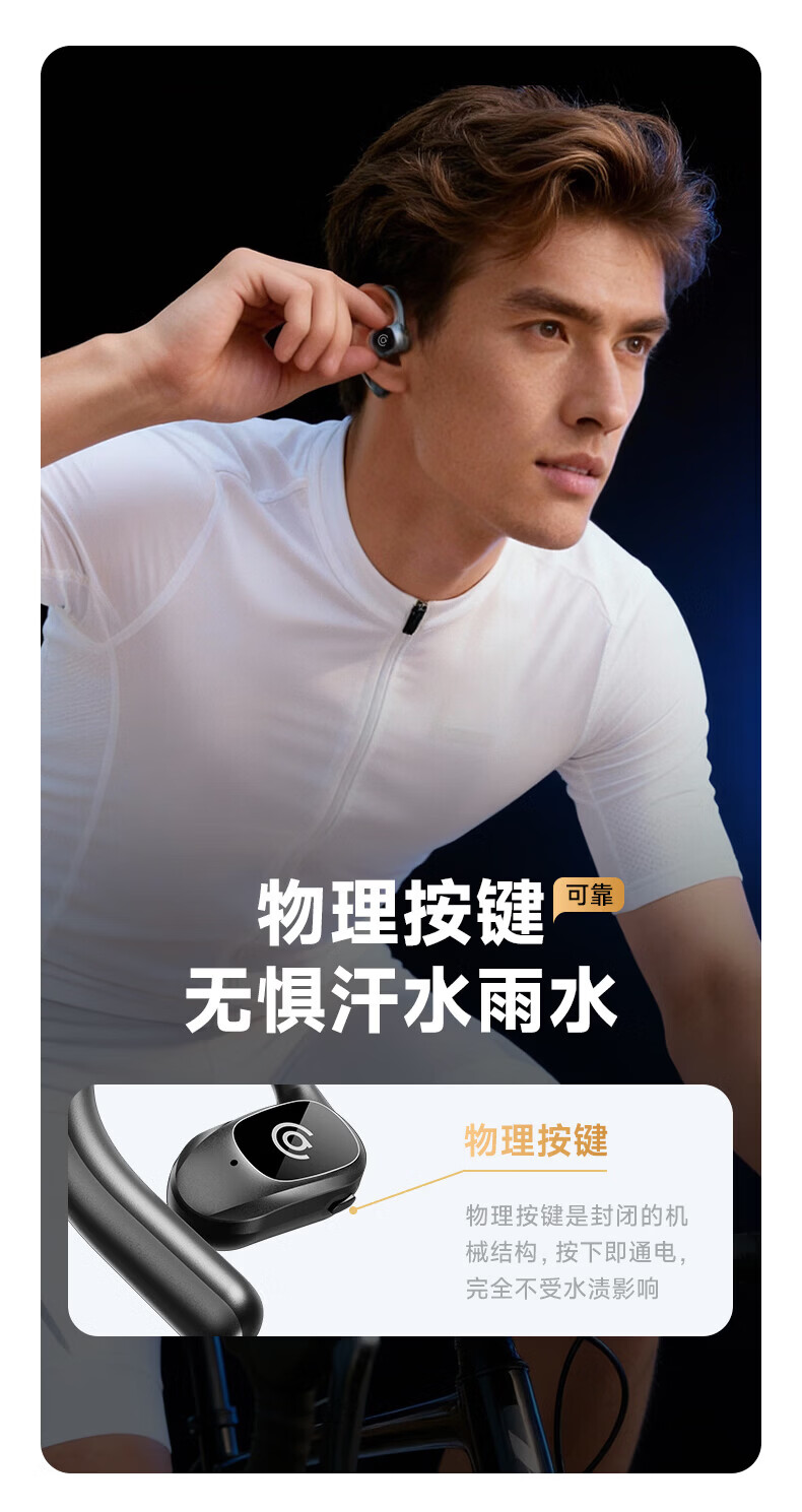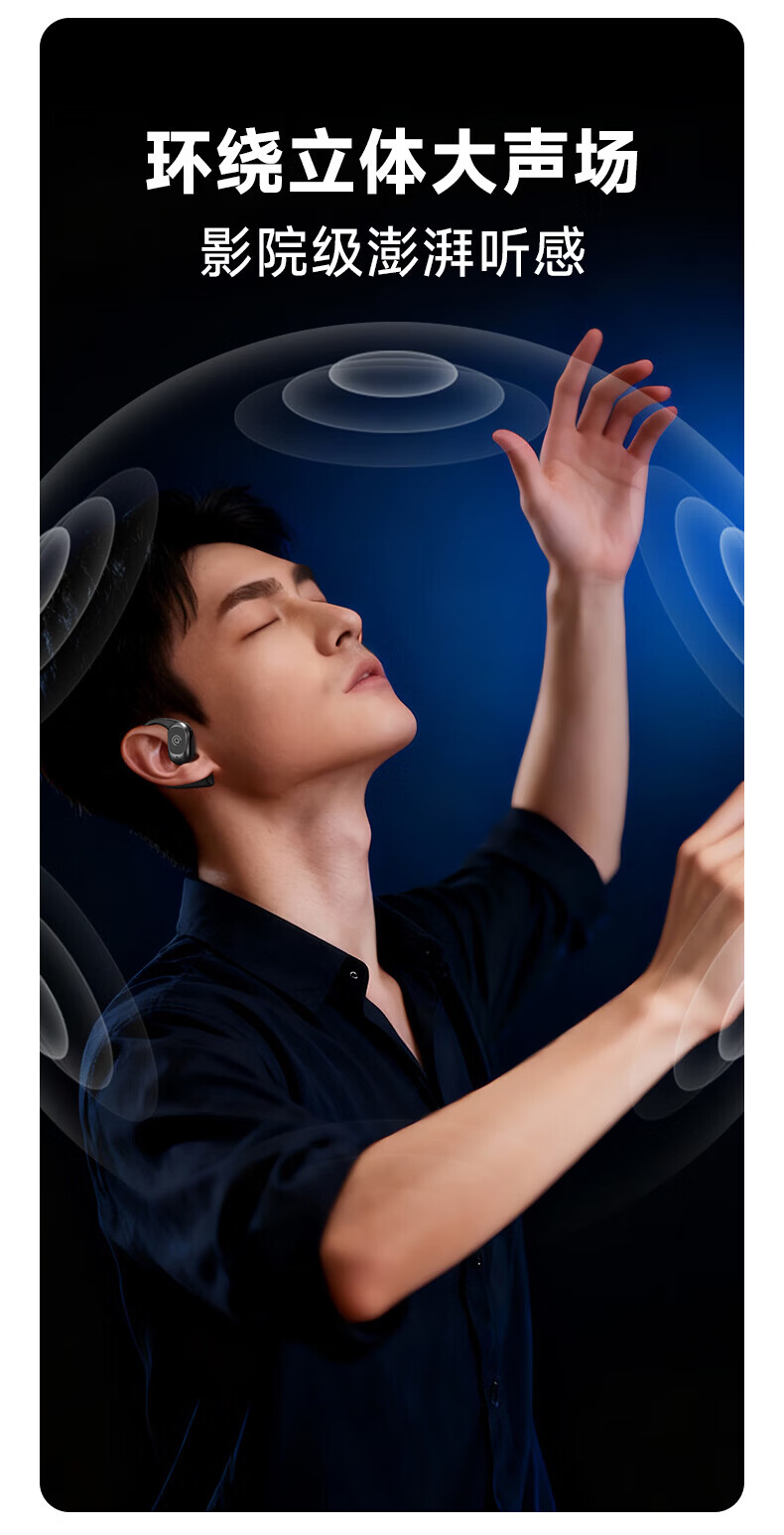 支持AI语音翻译,多语言翻译官,轻松应对多场景使用;轻羽耳挂 。佩戴无负担,舒适伴随行;内置钛丝,自由弯曲,贴合耳廓
