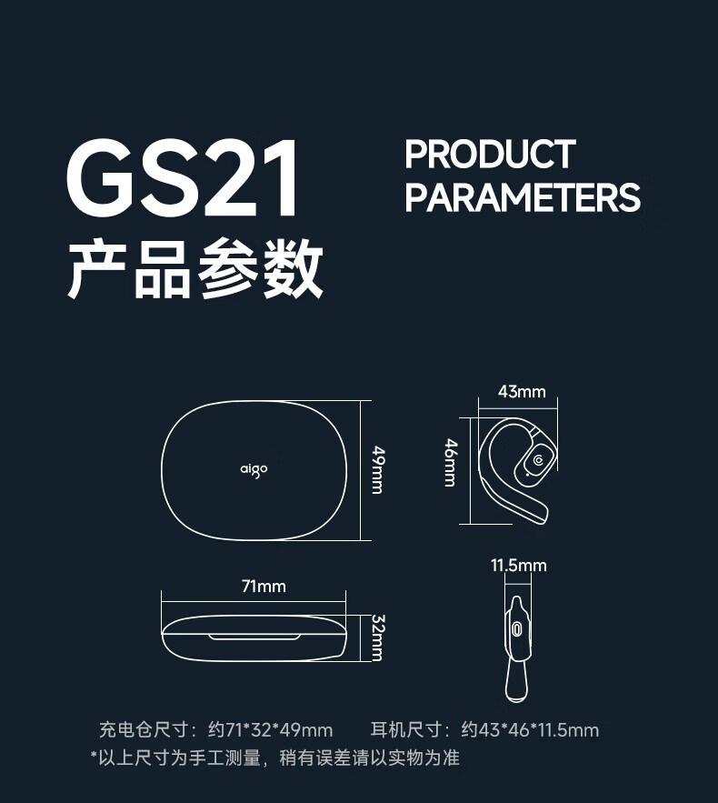 爱国者 耳挂式骨传导蓝牙耳机 GS21