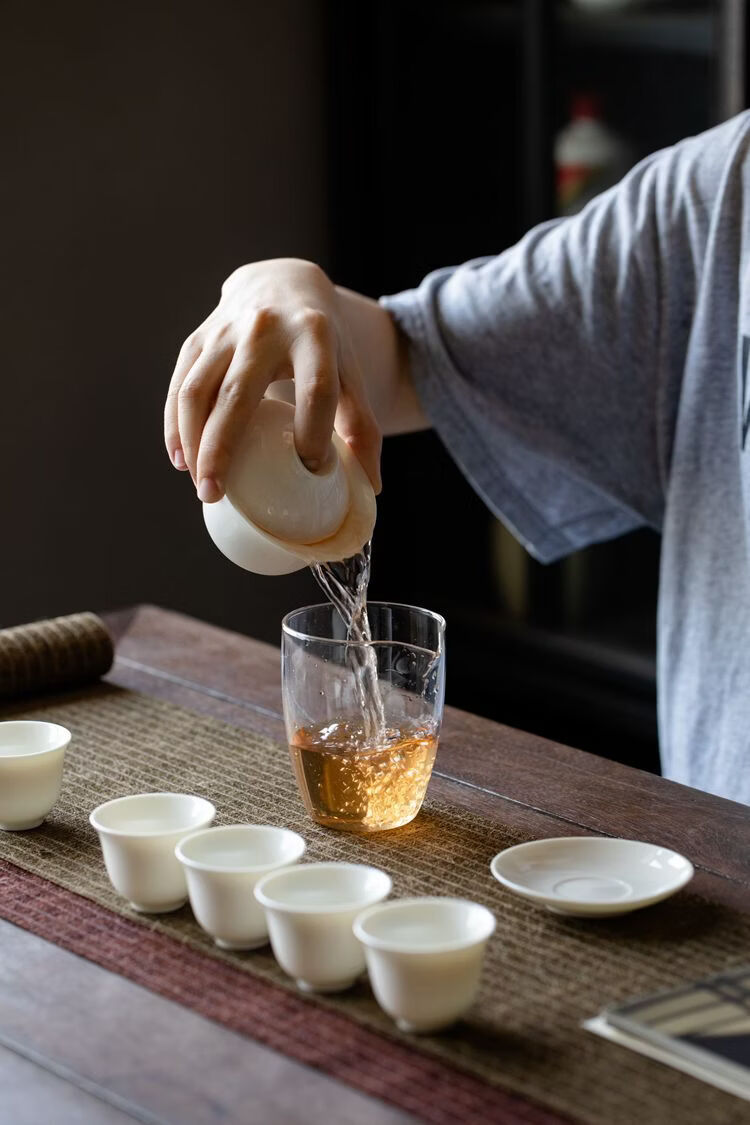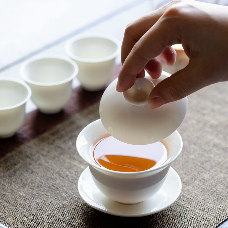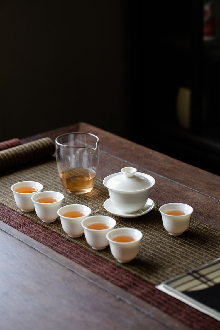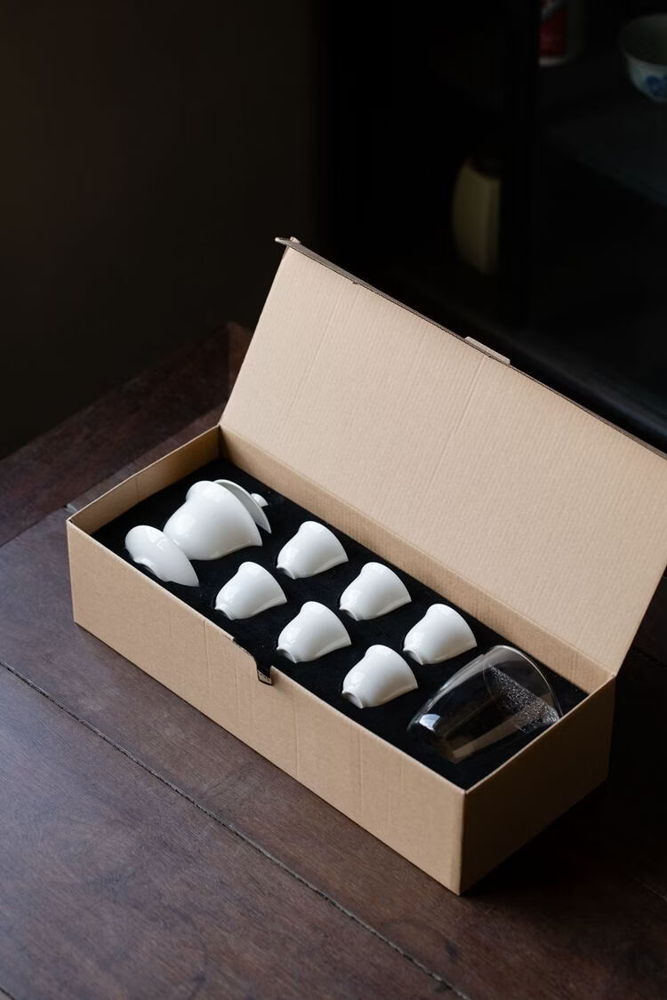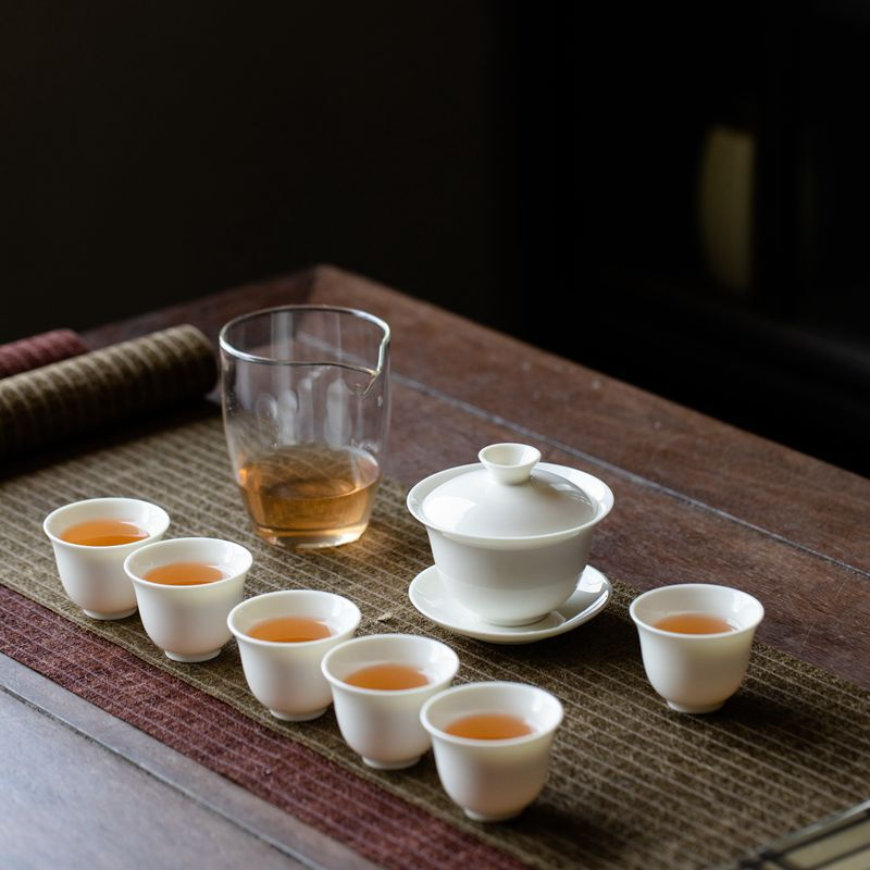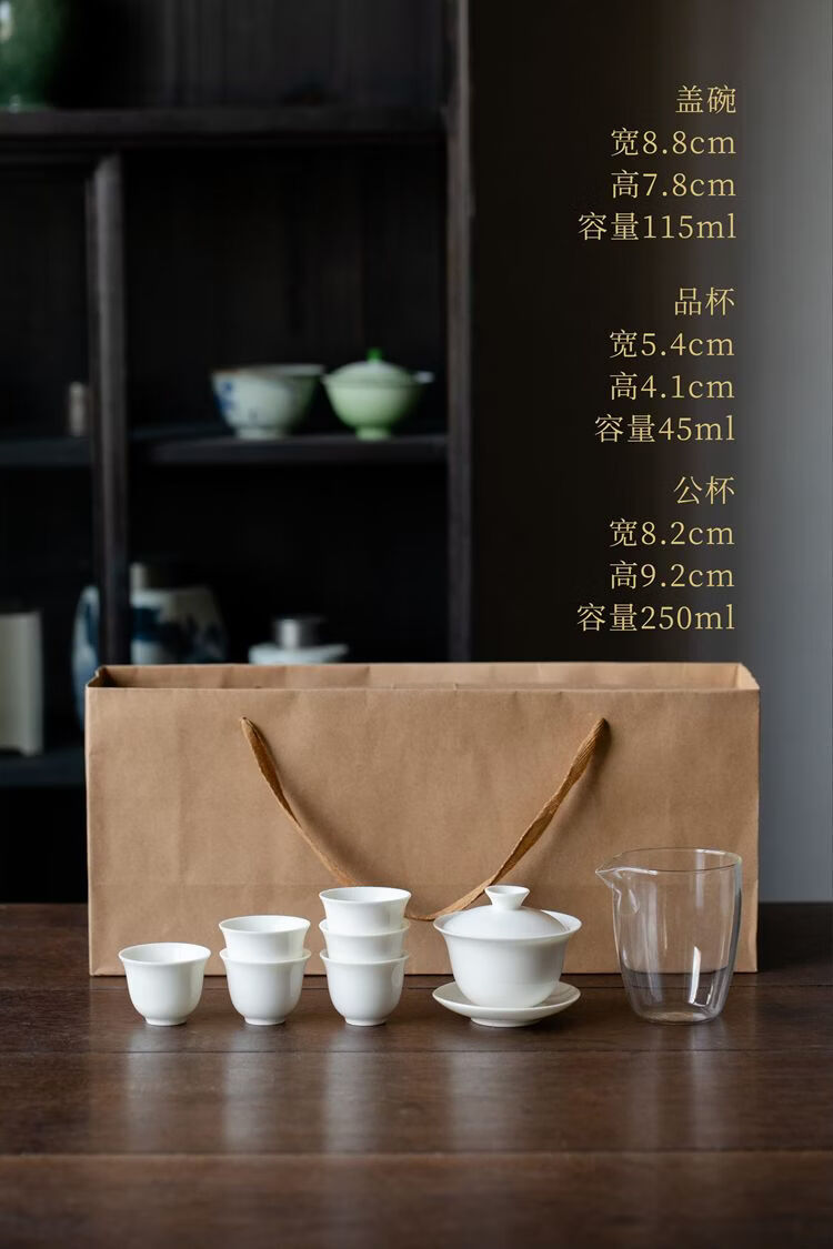 配置:1盖碗,1公道杯,6茶杯,盒子