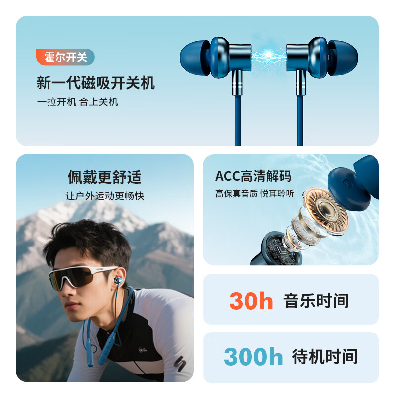 时尚蓝色 ;磁吸开关,耳头磁吸合上关机,拉开开机;ENC降噪通话,超长待机