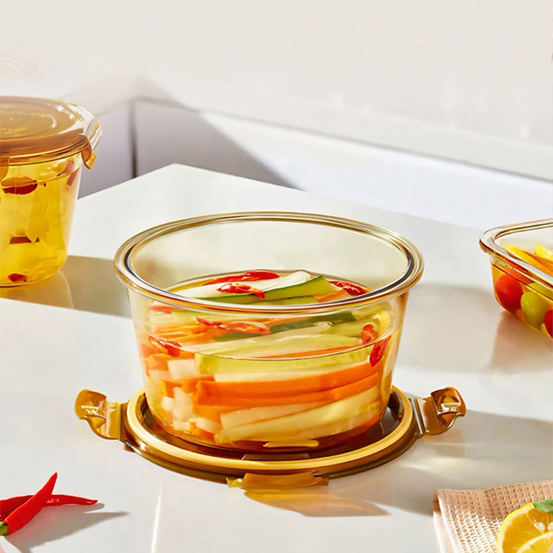 高硼硅玻璃高温稳稳承受安心不炸裂;食品级密封圈内嵌密封圈保鲜更持久;按压锁扣密封牢固锁住新鲜