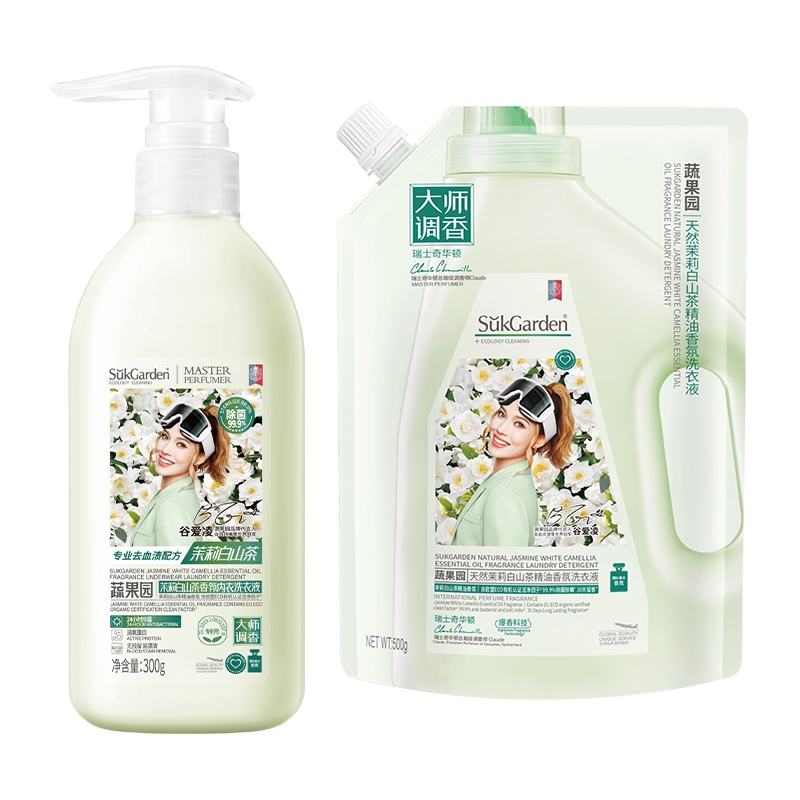 配置清单: SukGarden蔬果园茉莉白山茶香氛洗衣液500g SukGarden蔬果园银针雪松木洁厕剂800g SukGarden蔬果园茉莉白山茶香氛内衣洗衣液300g SukGarden蔬果园青玉油柑果蔬餐具净800g SukGarden蔬果园精美礼盒-谷爱凌版ML01
