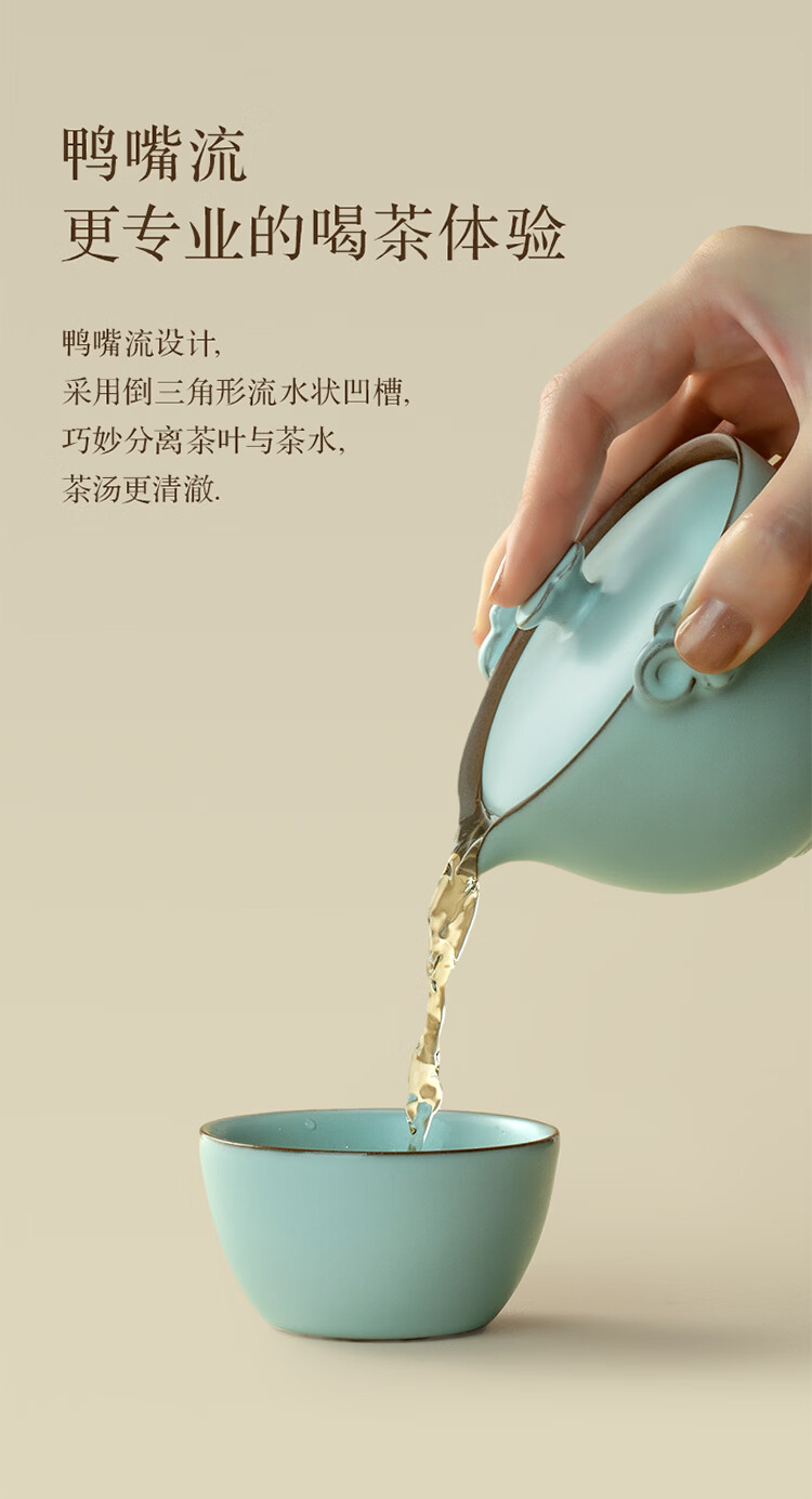 便携;鸭嘴流设计,荣获“香港国际专利博览会”金奖;采用倒三角形流水状凹槽,能巧妙的将茶叶与茶水分离开