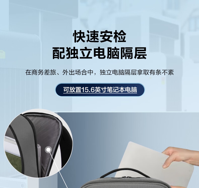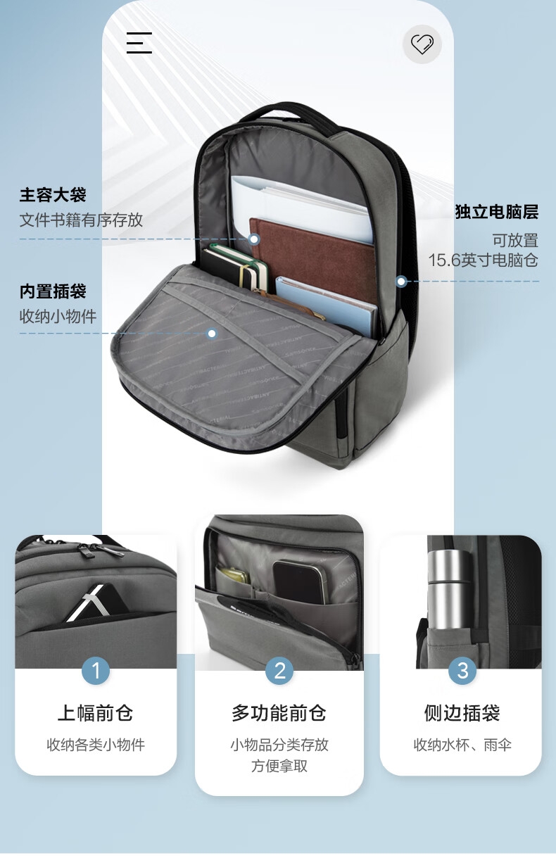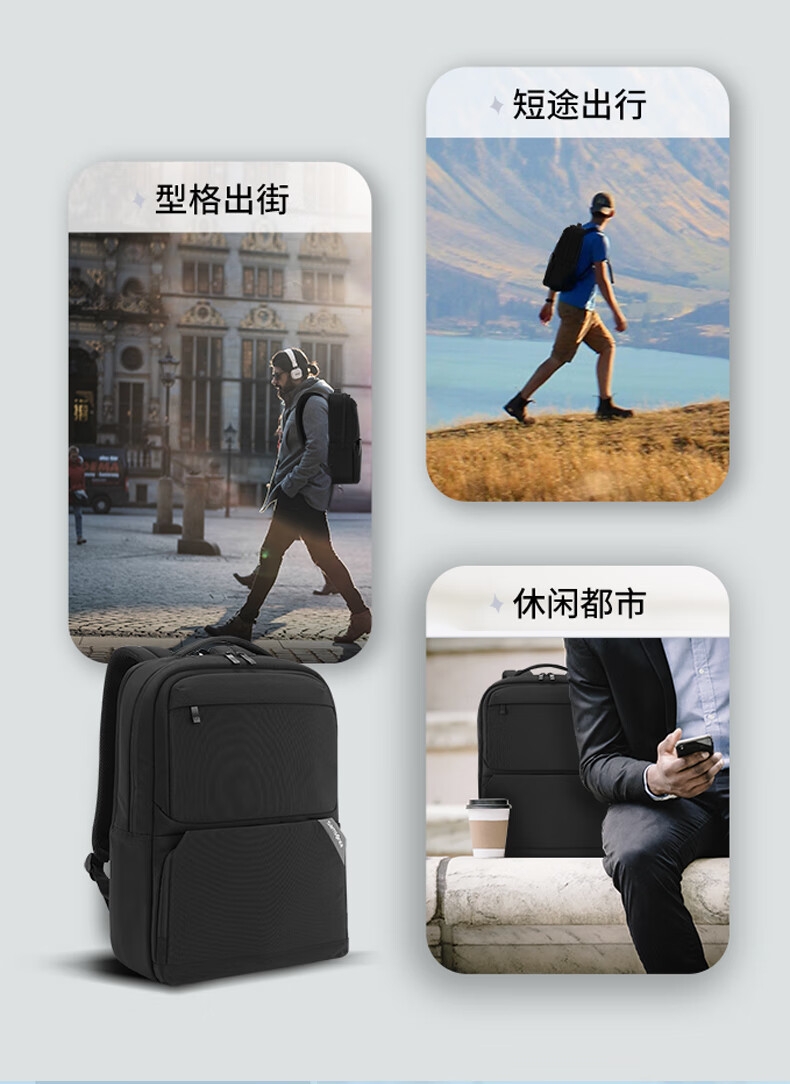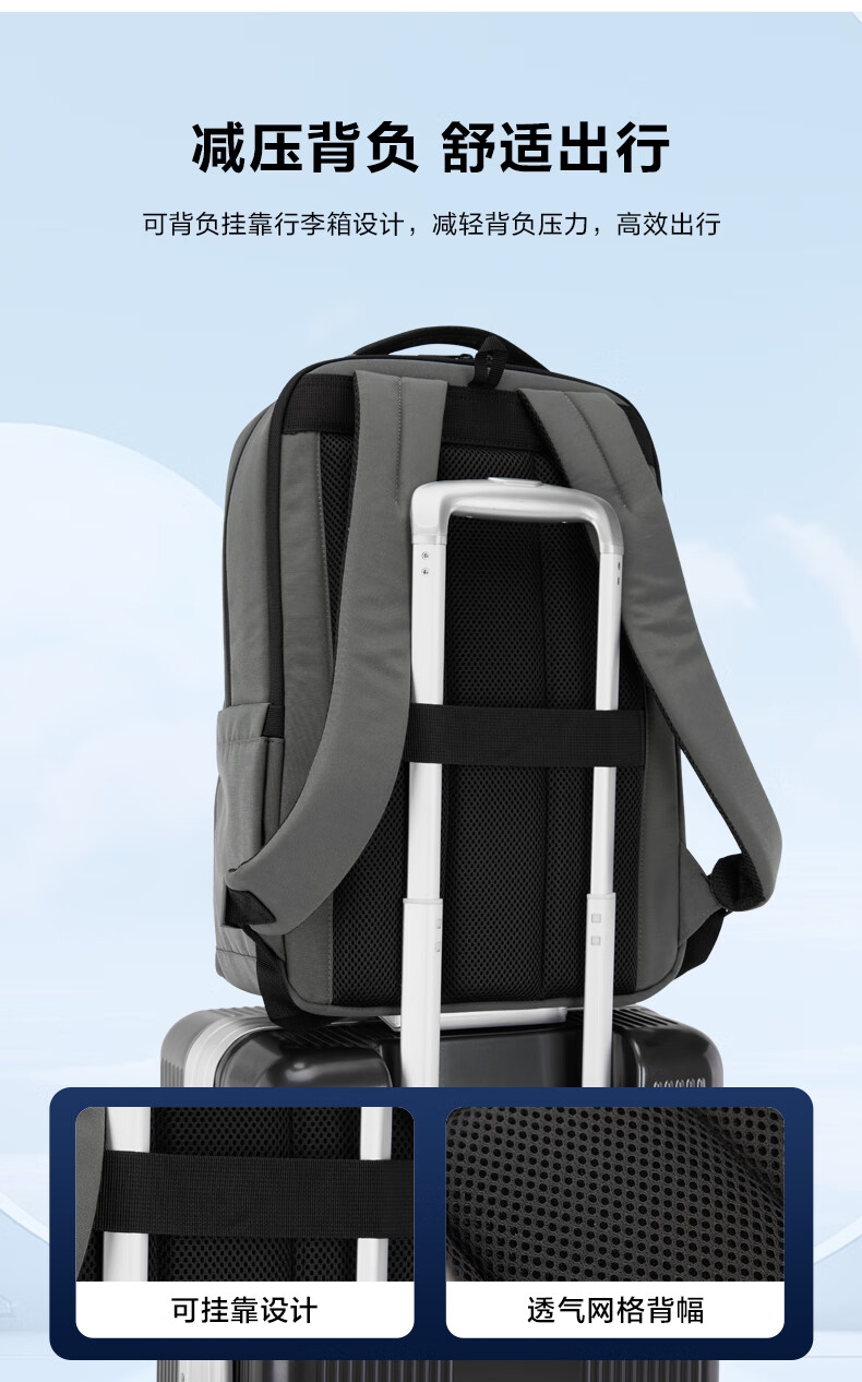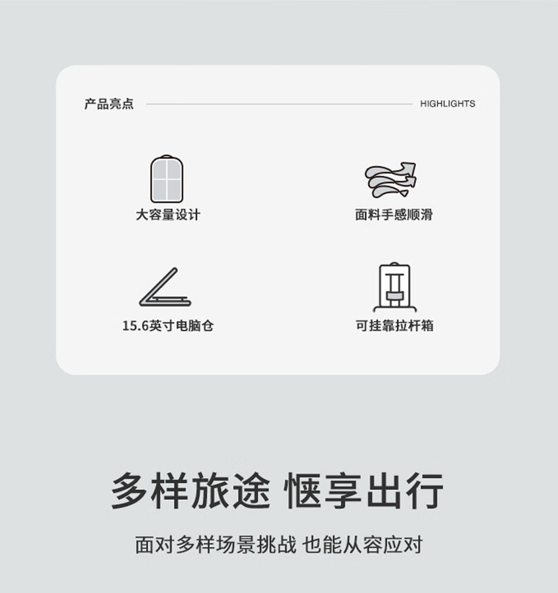 面料防泼耐磨,抗菌内里;S型加厚肩带,透气背幅;便携挂靠功能,解放双手更省力