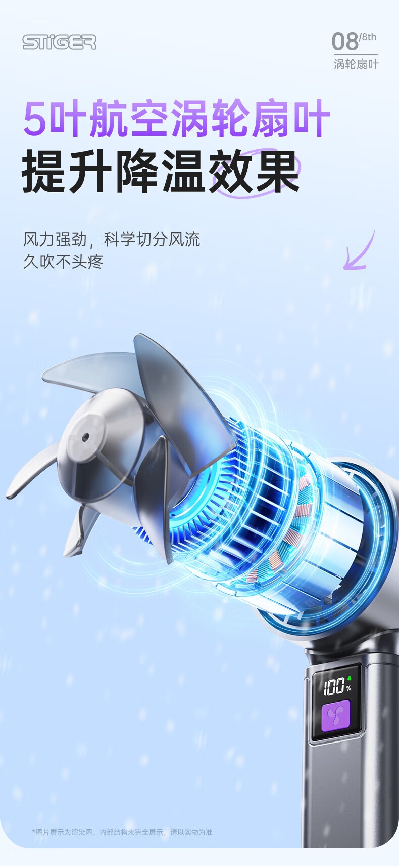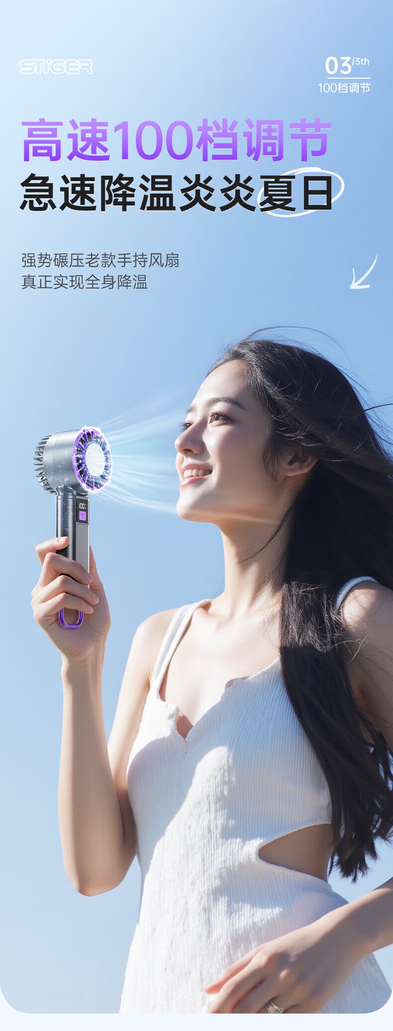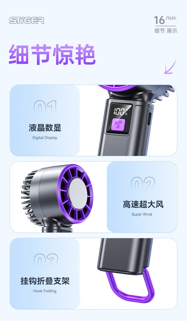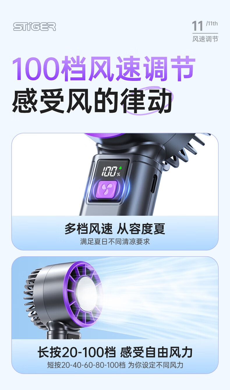 100挡风力,满足各种场景需求;大容量电池,超长续航;小巧便携,携带方便