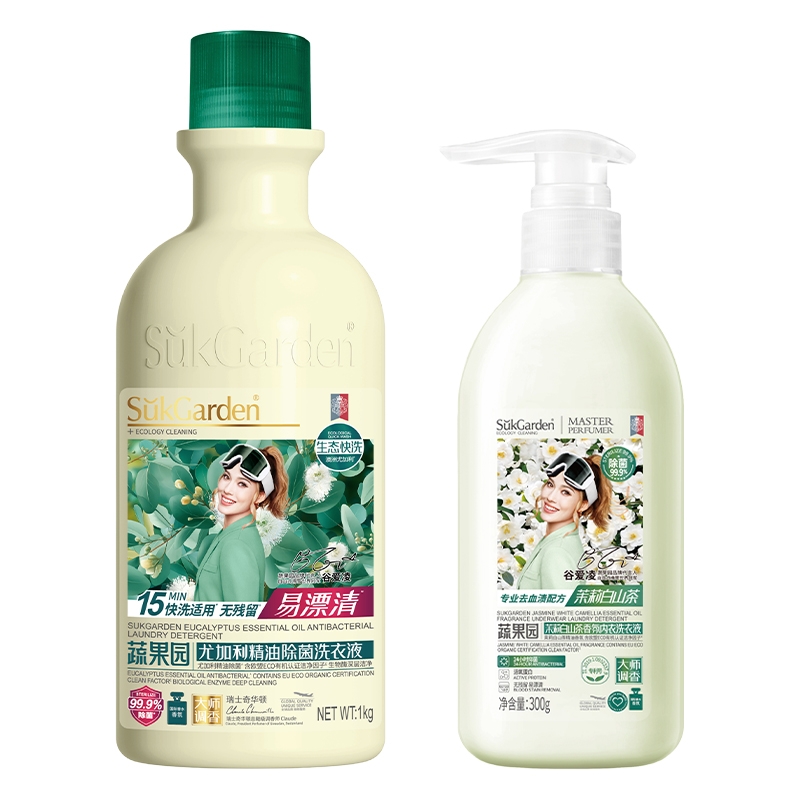 配置清单: SukGarden蔬果园尤加利精油除菌洗衣液1kg SukGarden蔬果园尤加利精油除菌洗衣液1kg SukGarden蔬果园银针雪松木洁厕剂800g SukGarden蔬果园茉莉白山茶香氛内衣洗衣液300g SukGarden蔬果园青玉油柑果蔬餐具净800g SukGarden蔬果园精美礼盒-谷爱凌版ML02