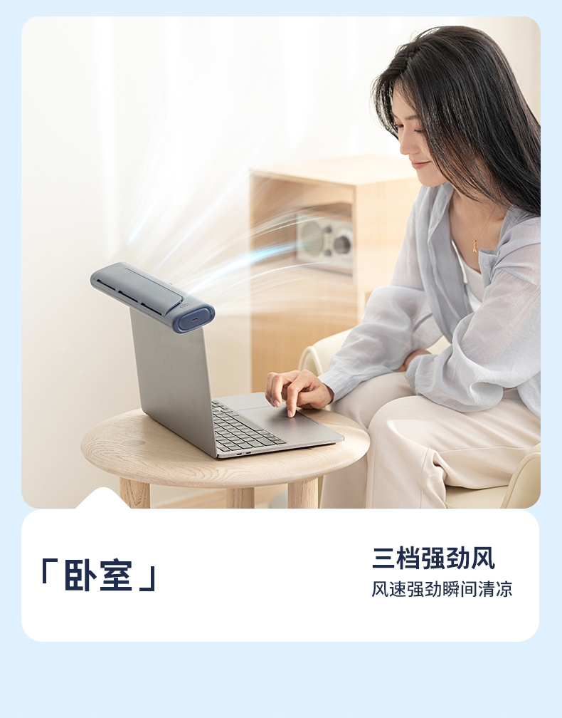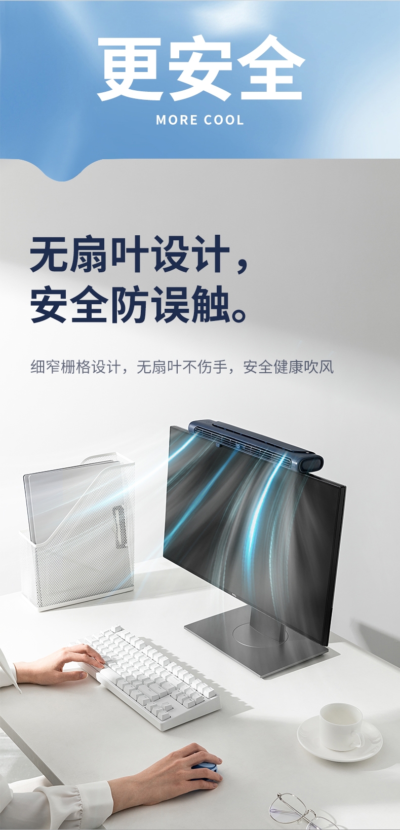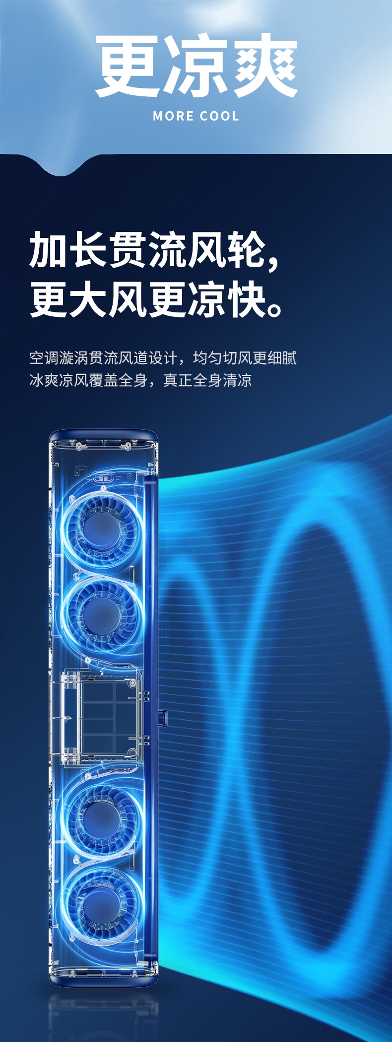 长风道贯流风轮,大风力更凉快;大角度送风,全面降温;三档送风模式,一键轻松操作