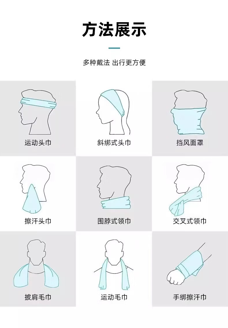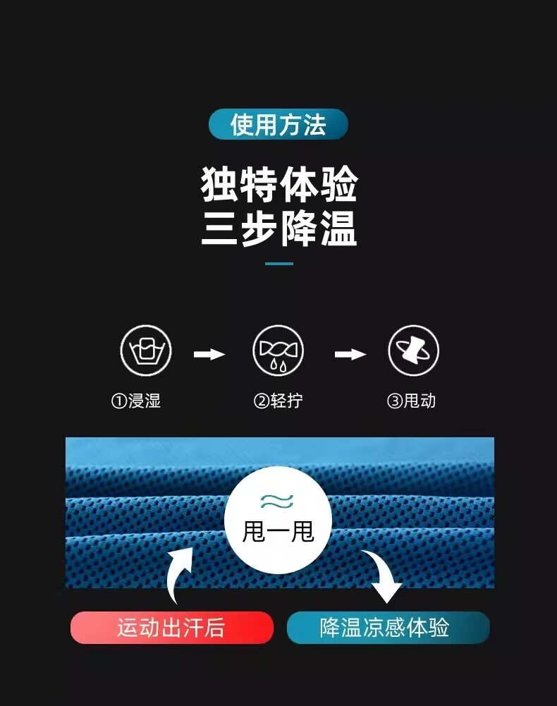 快速降温,透气吸汗;轻薄柔软,吸水性强;携带方便,随取随用