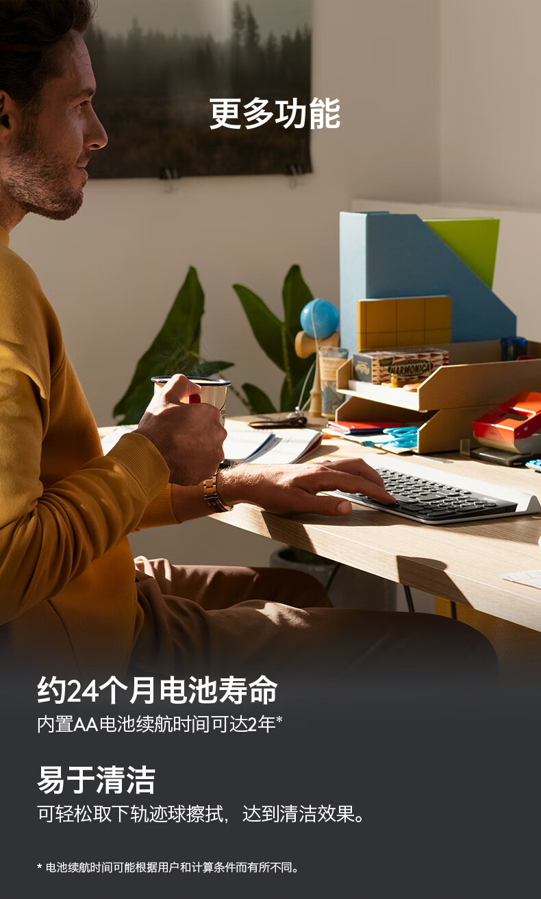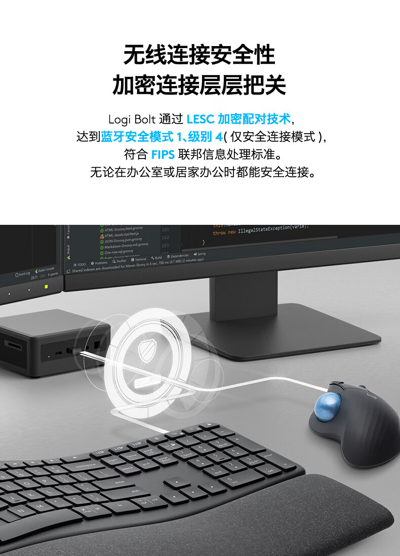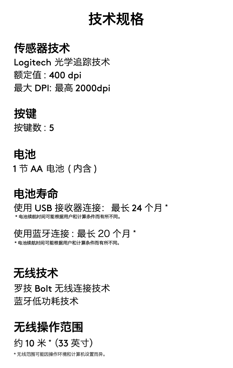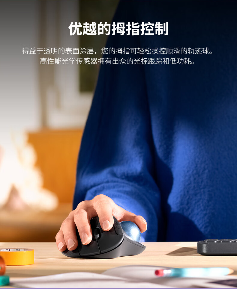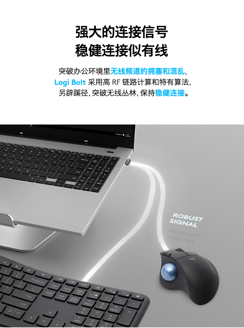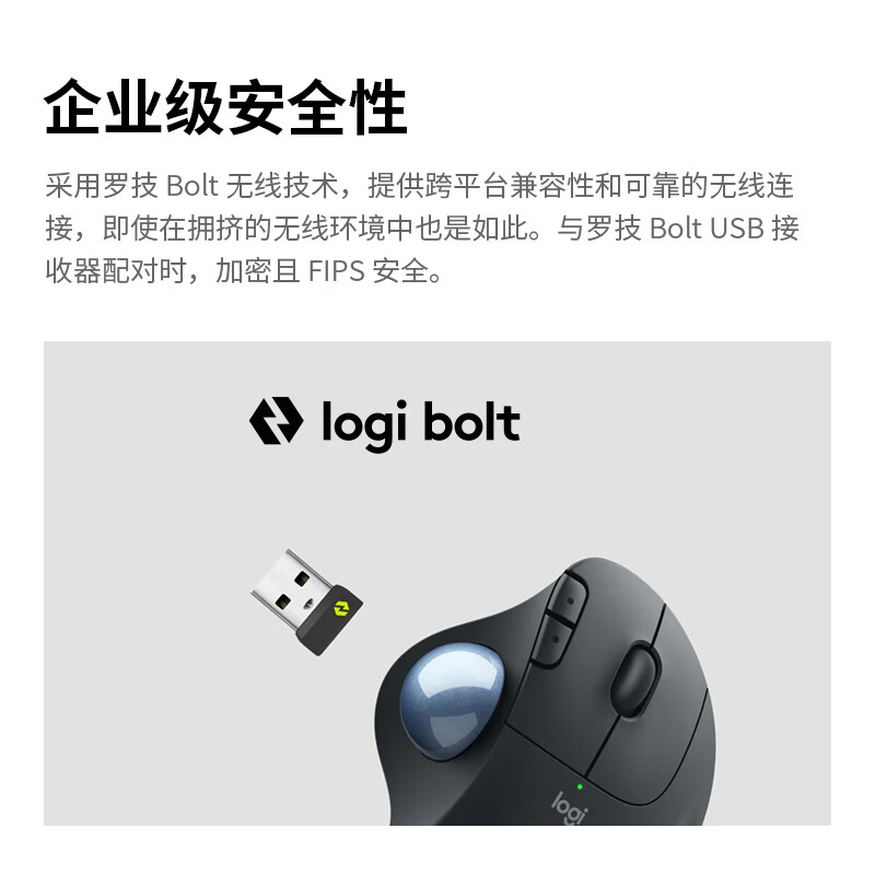 搭载logi bolt 无线连接技术;达到蓝牙安全模式1、级别4(仅安全连接模式);符合人体工程学造型;灵敏的拇指控制,节省空间;可轻松取下轨迹球擦拭清洁