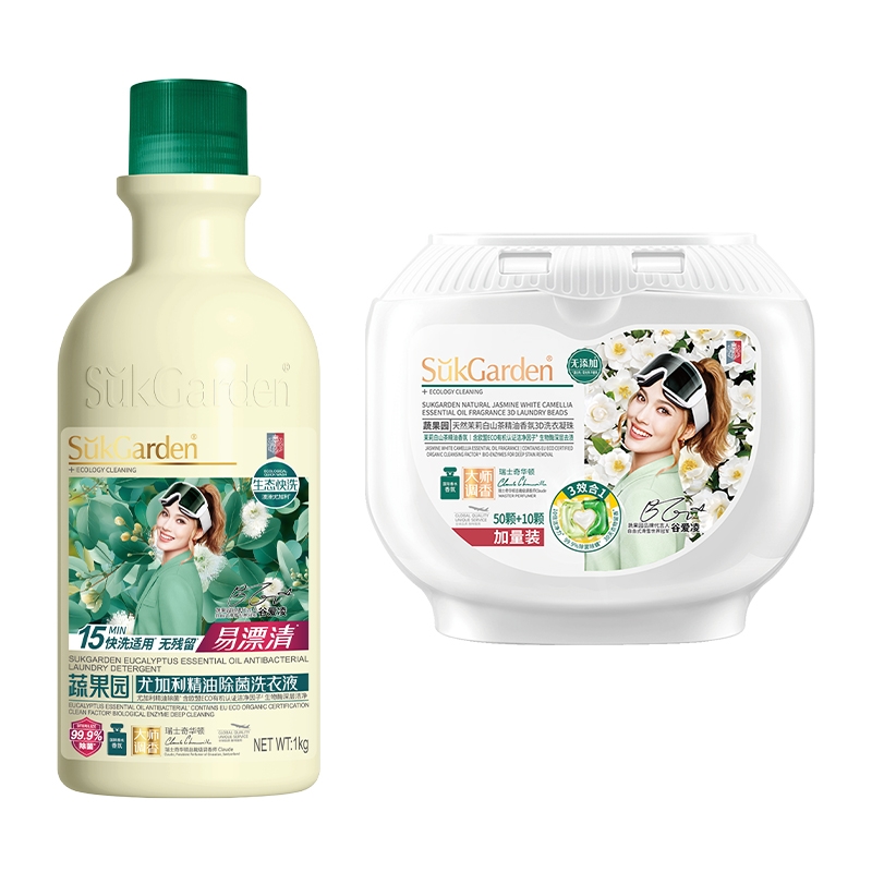配置清单: SukGarden蔬果园尤加利精油除菌洗衣液1kg SukGarden蔬果园茉莉白山茶香氛洗衣液500g SukGarden蔬果园茉莉白山茶香氛内衣洗衣液300g SukGarden蔬果园茉莉白山茶香氛3D洗衣凝珠10g*60颗 SukGarden蔬果园茉莉白山茶香氛3D洗衣凝珠10g*60颗 SukGarden蔬果园精美礼盒-谷爱凌版ML02