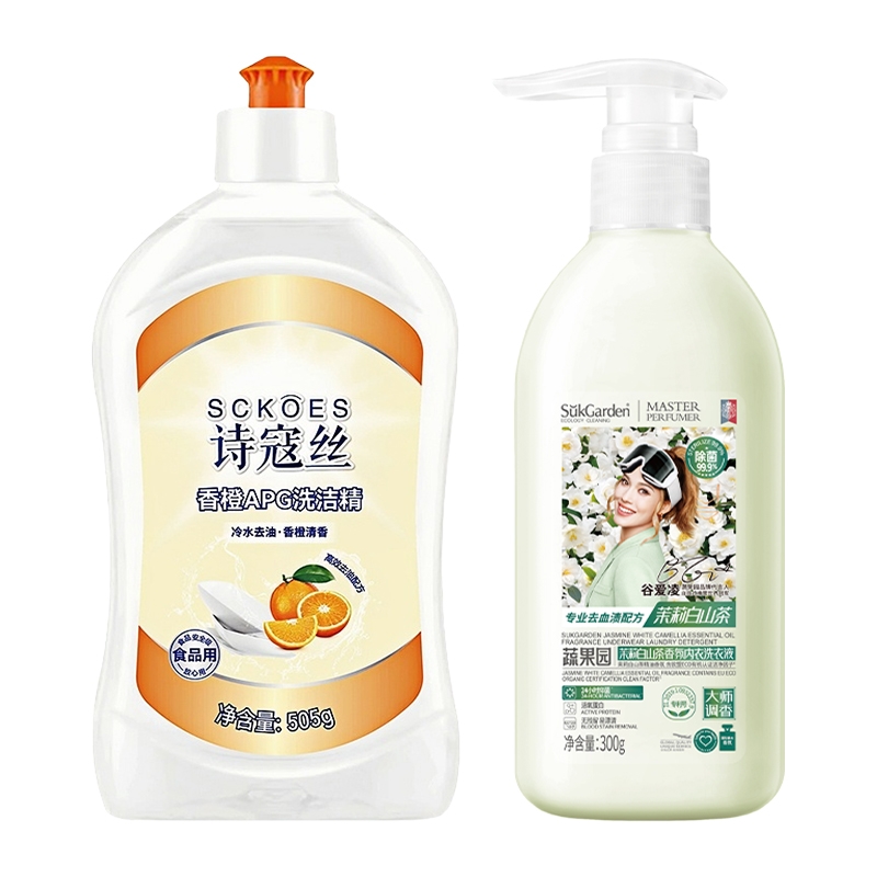 配置清单:SukGarden蔬果园尤加利精油除菌洗衣液1kg SukGarden蔬果园银针雪松木洁厕剂800g SukGarden蔬果园茉莉白山茶香氛内衣洗衣液300g SukGarden蔬果园青玉油柑果蔬餐具净800g 自然堂控油蓬松洗发乳600ML 自然堂焕亮雪肌沐浴露600ml Sckoes诗寇丝APG超浓缩洗洁精505g 精选精美礼盒-LH004