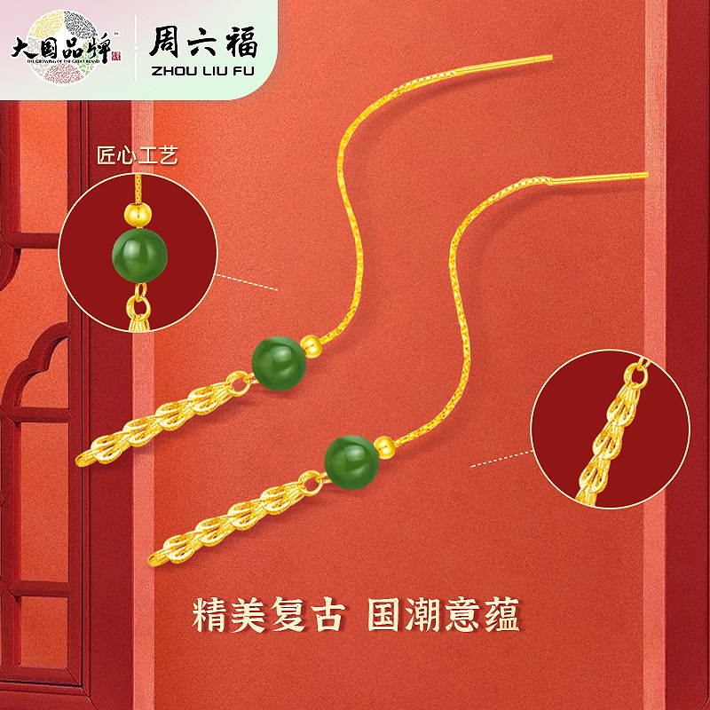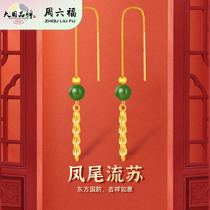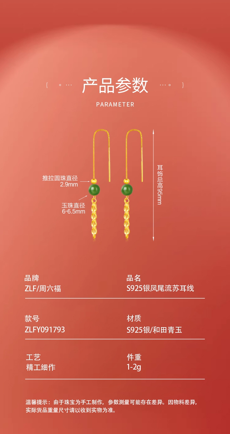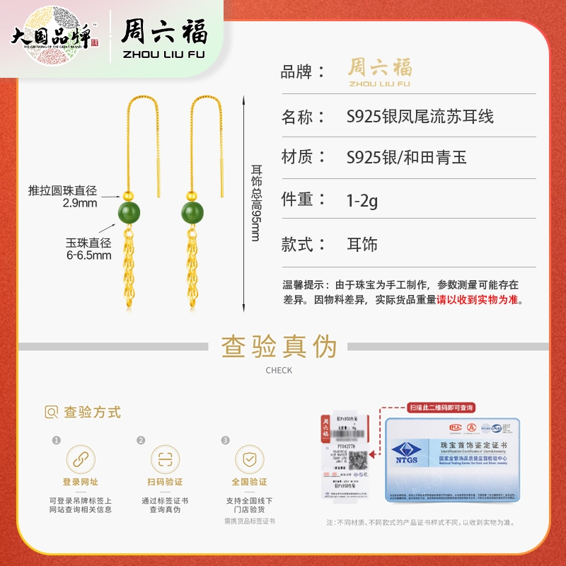 周六福 S925银凤尾流苏耳线ZLFY091793
