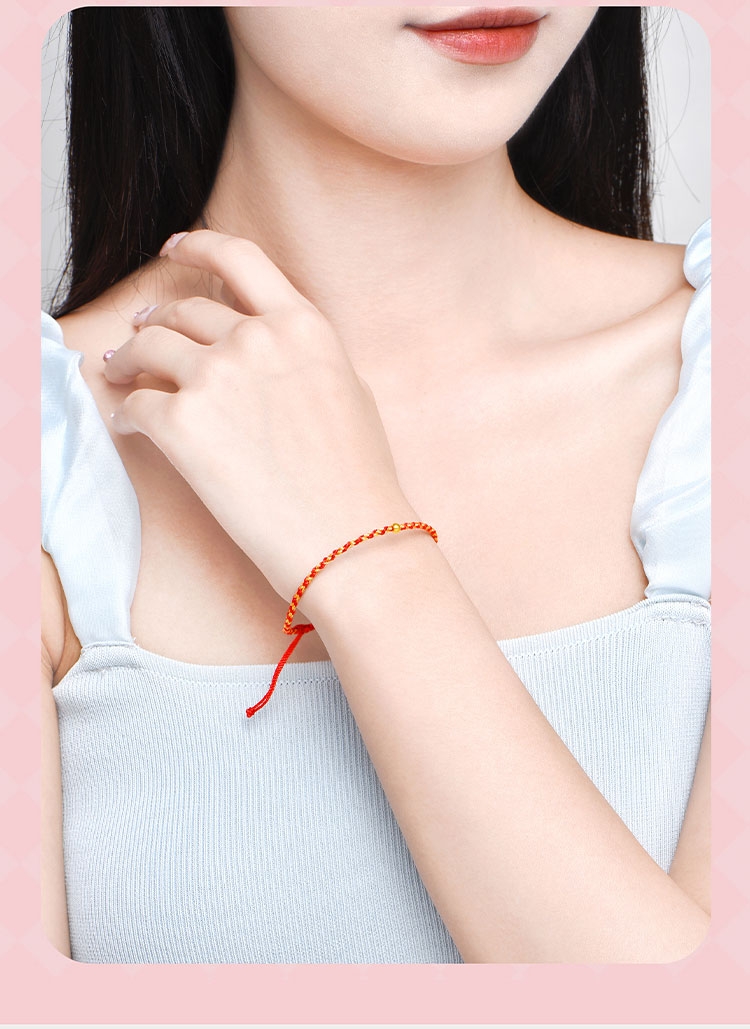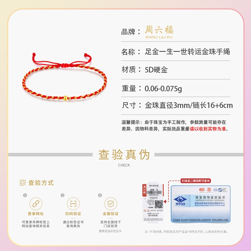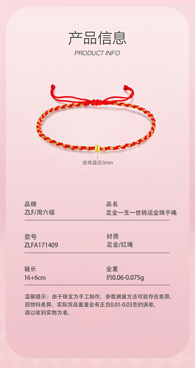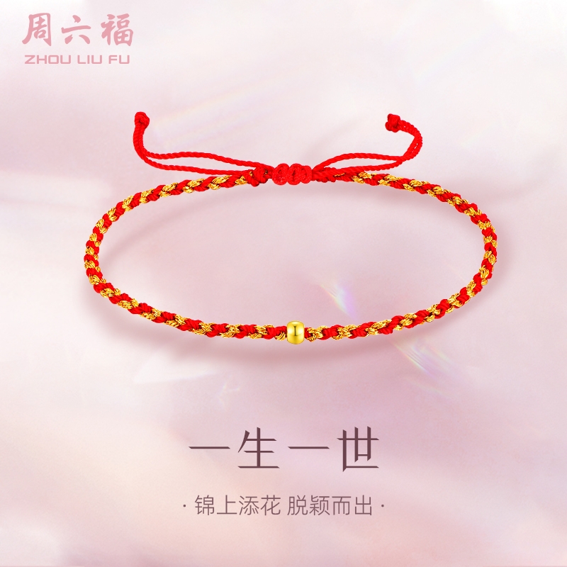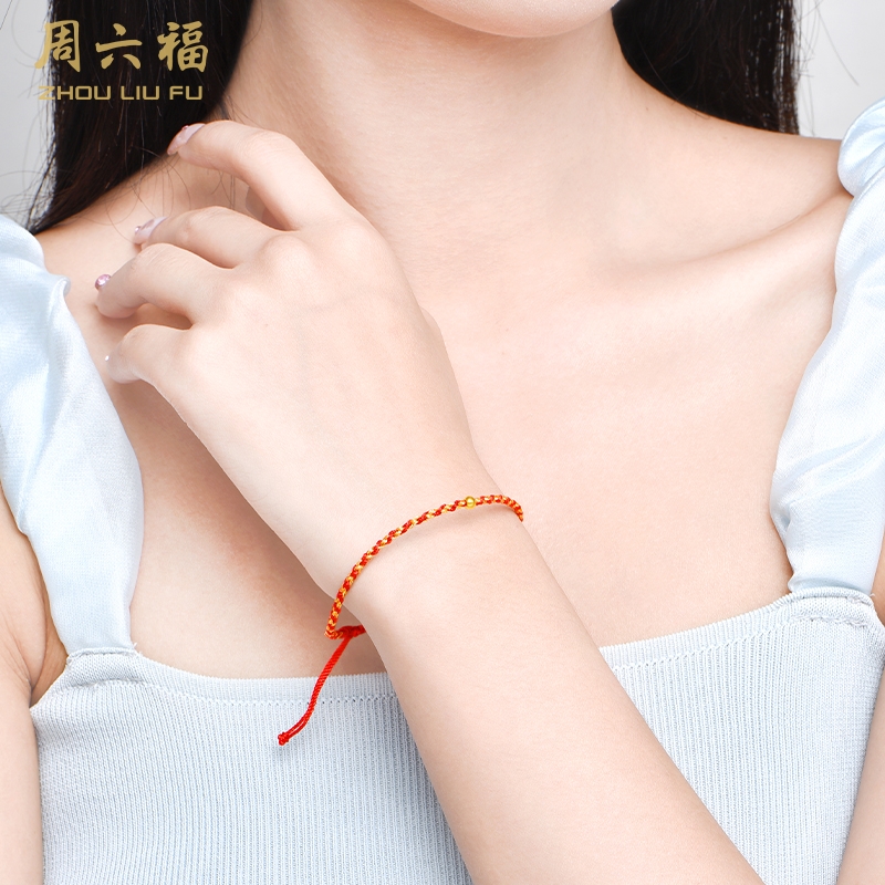 周六福 足金一生一世转运金珠手绳ZLFA171409