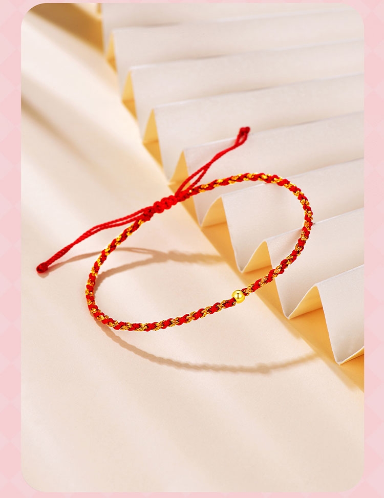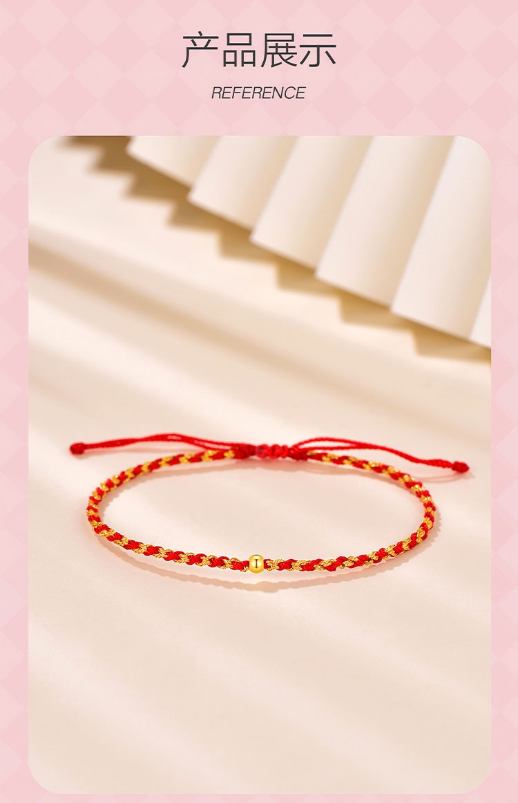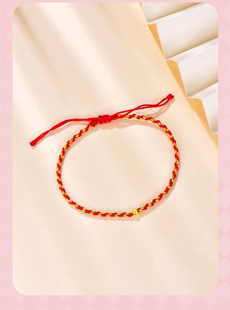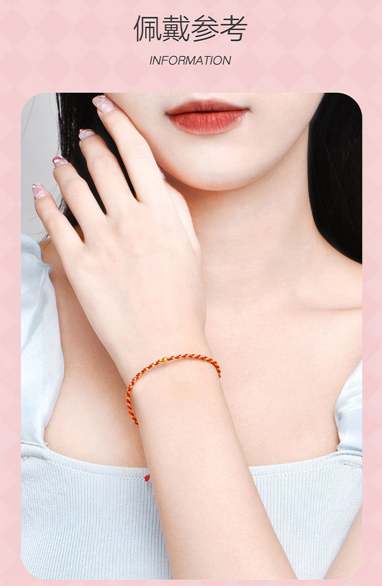 周六福 足金一生一世转运金珠手绳ZLFA171409