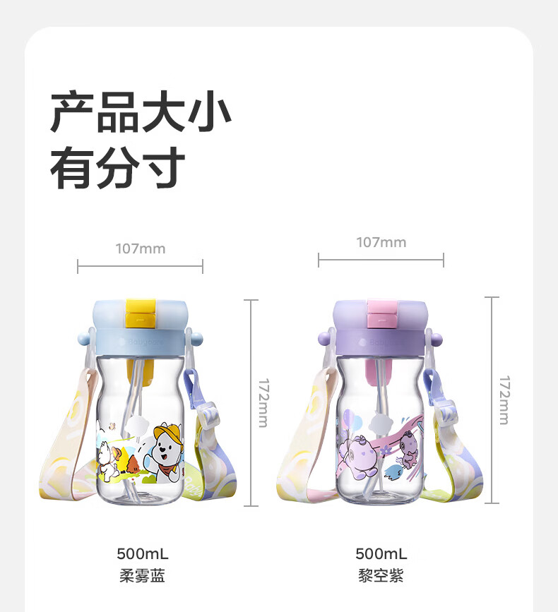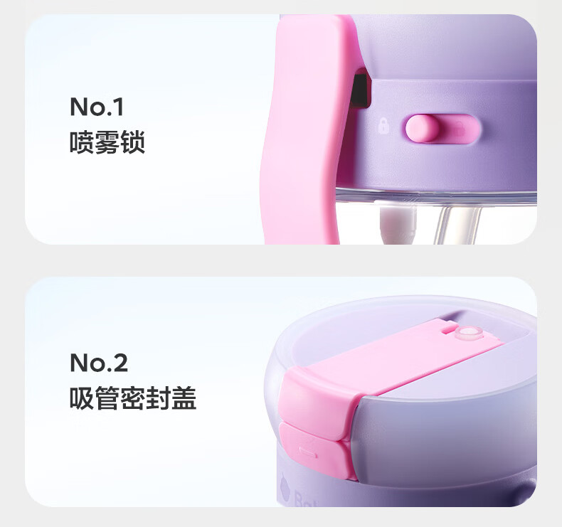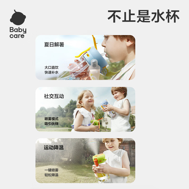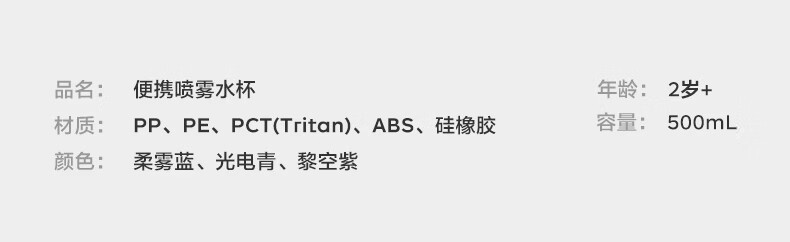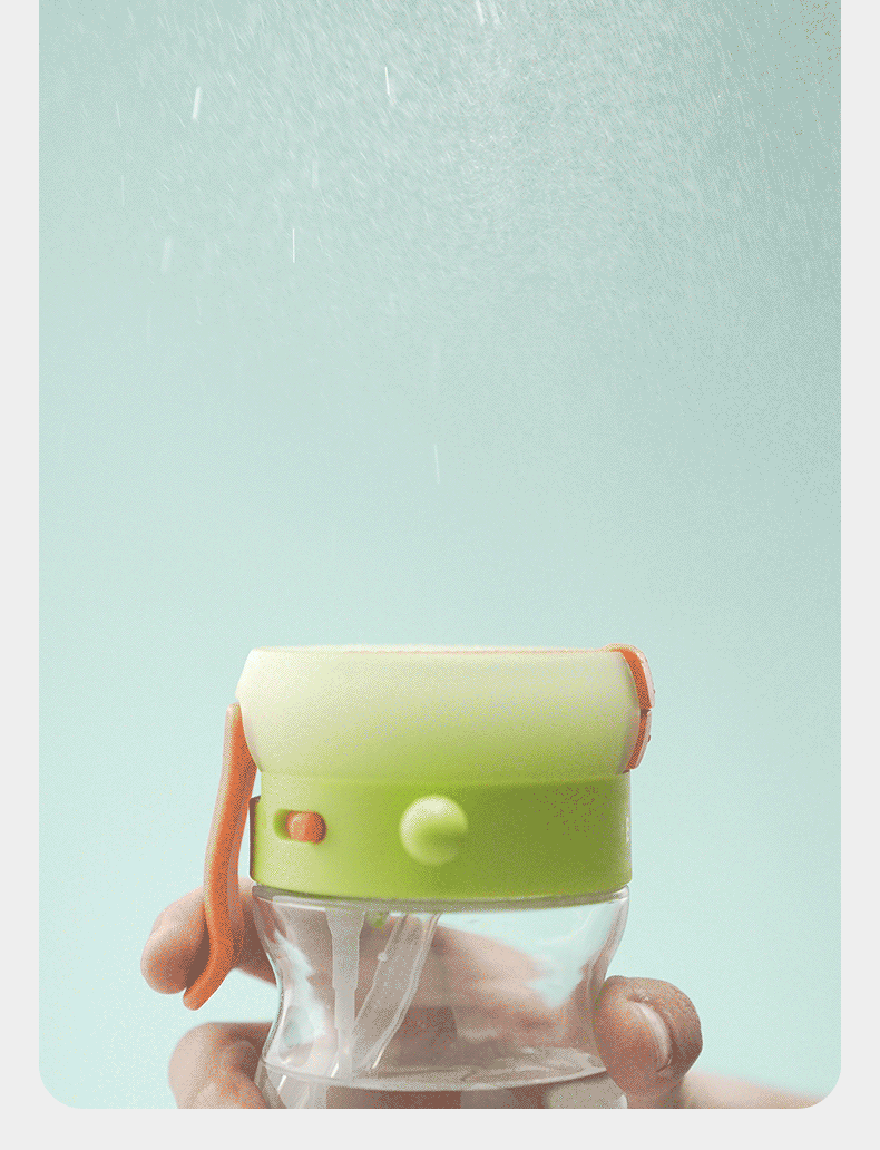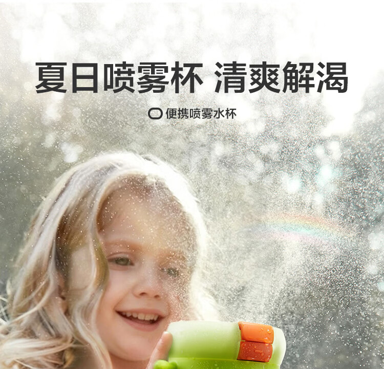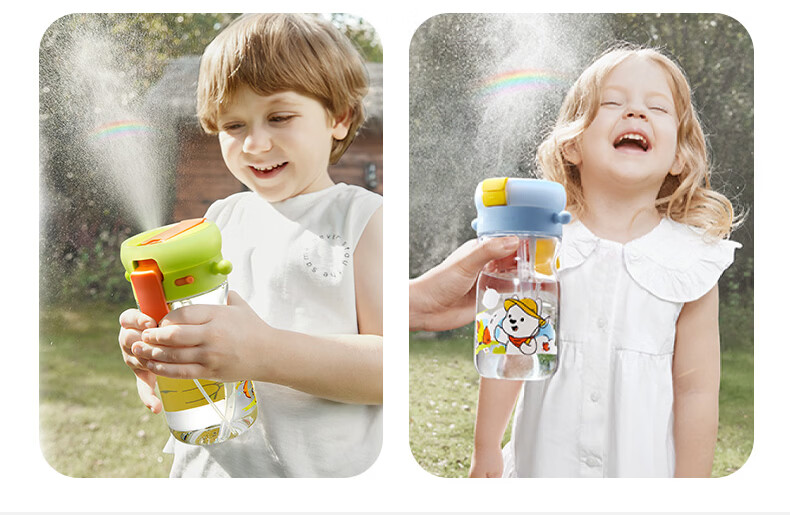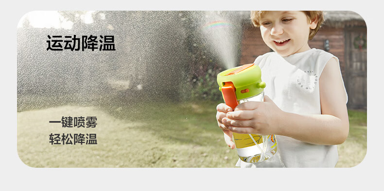 直饮吸嘴,畅快喝水;500mL满足补水量外出玩耍,也不重;一键喷雾,喝水降温两不误
