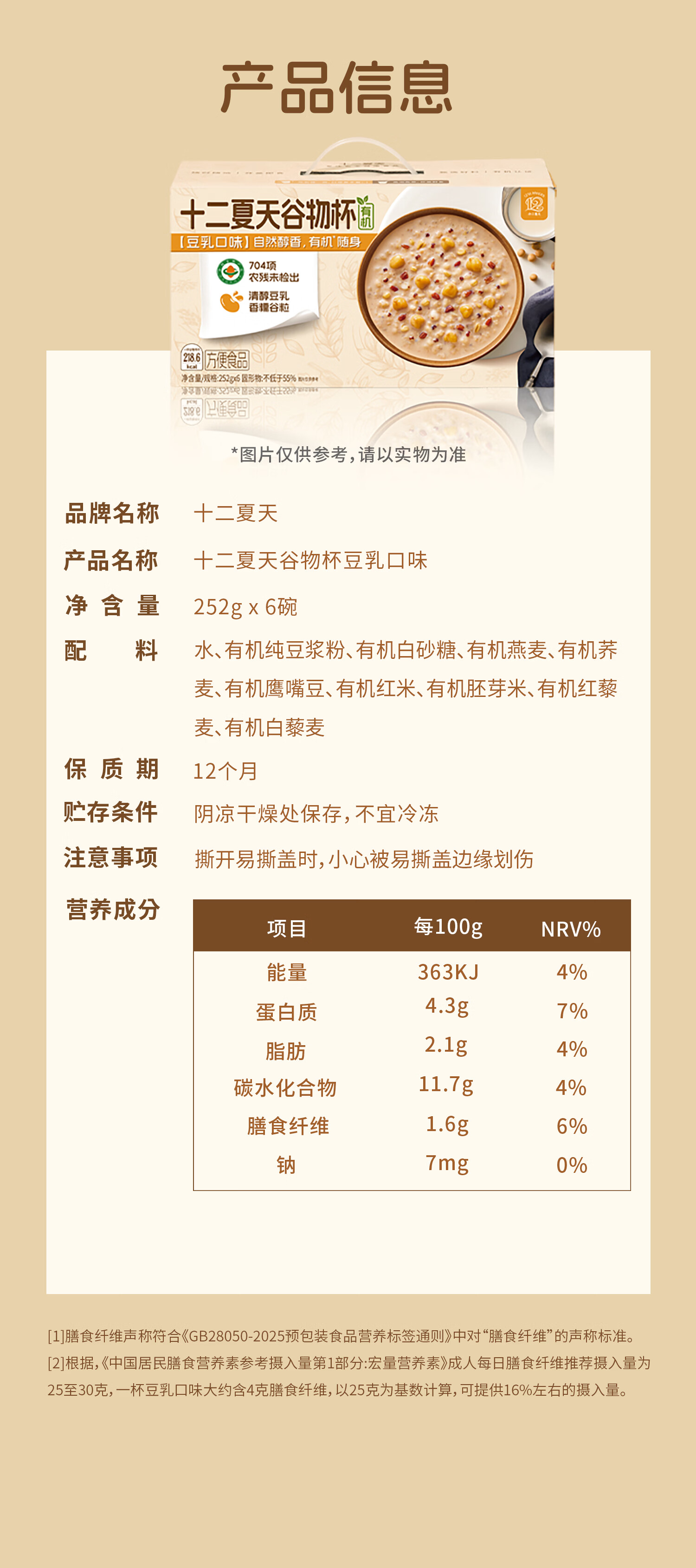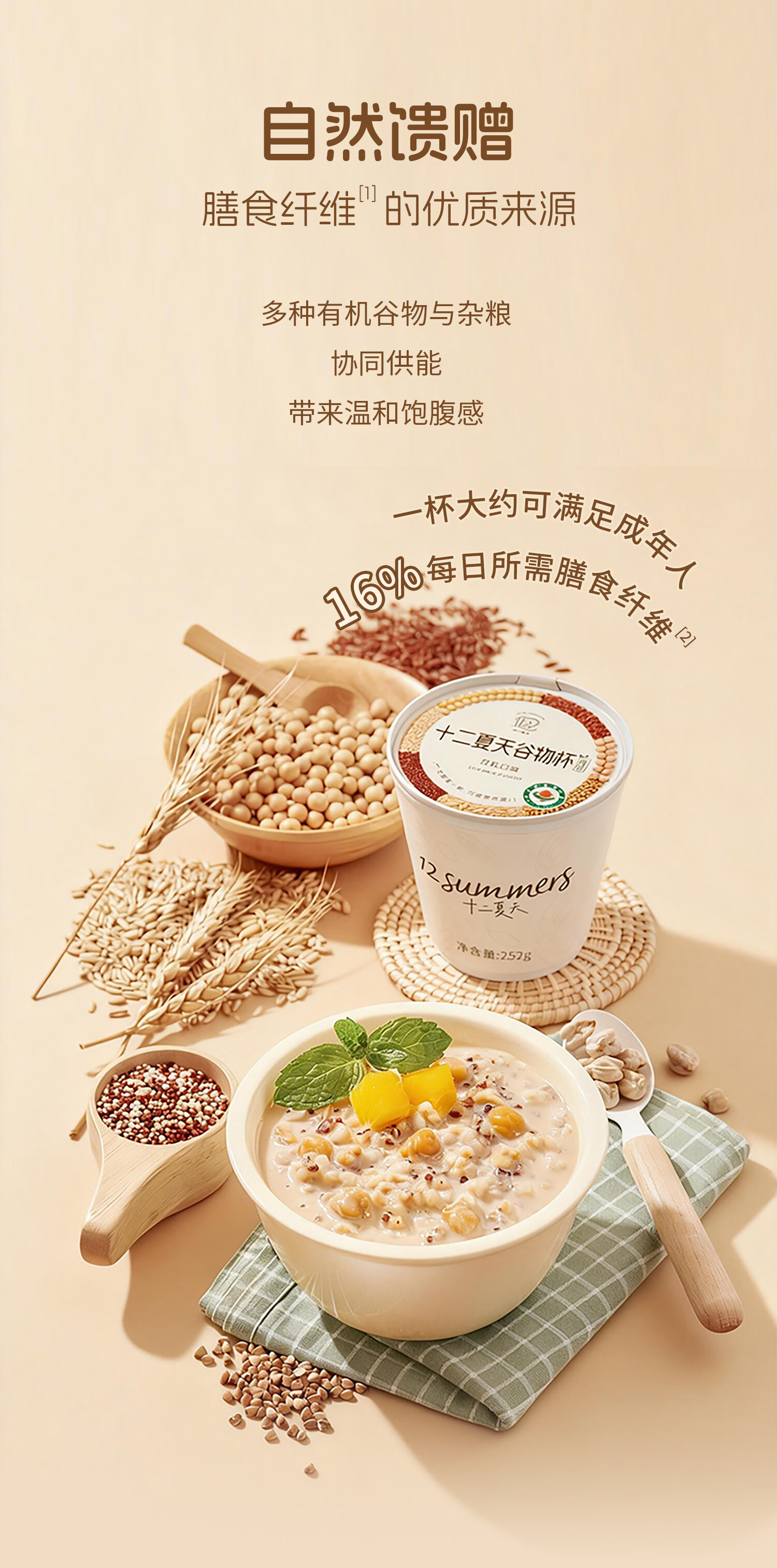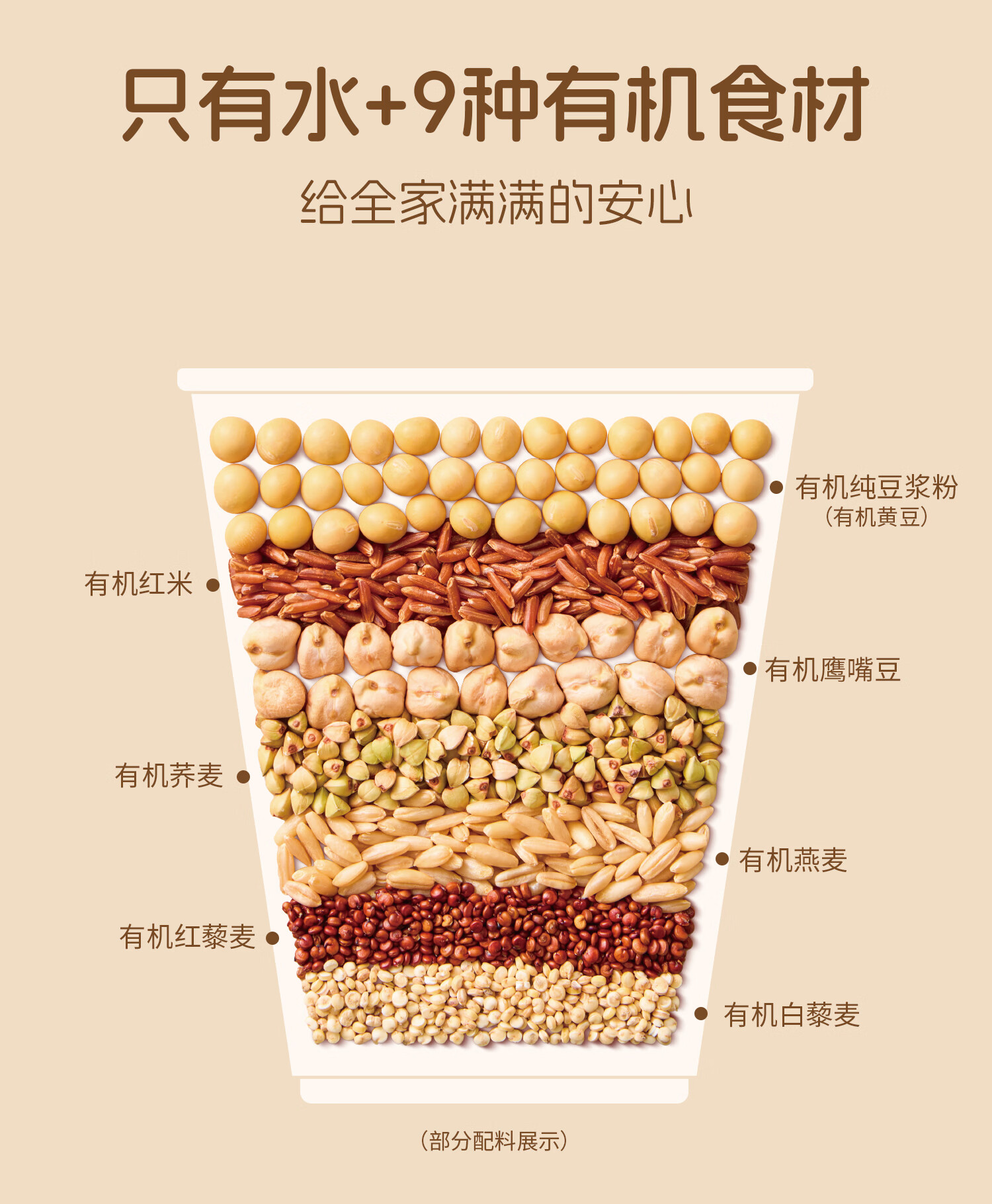 含膳食纤维,轻盈饱腹;配料只有9种有机食材+水,简单更放心;开盖即享,随时随刻补充谷物营养