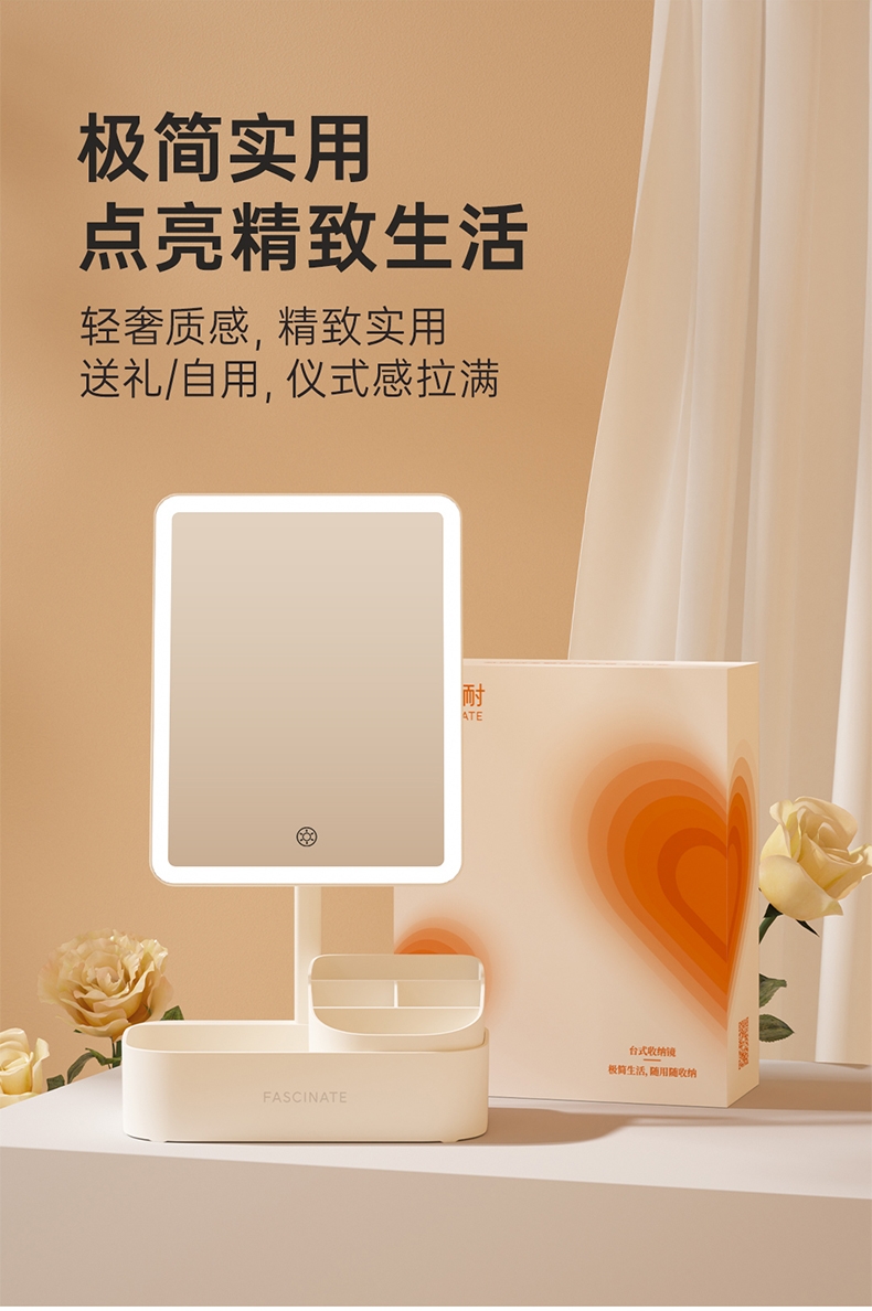 斐色耐 收纳镜含小收纳盒三色光镜子SM446-SL