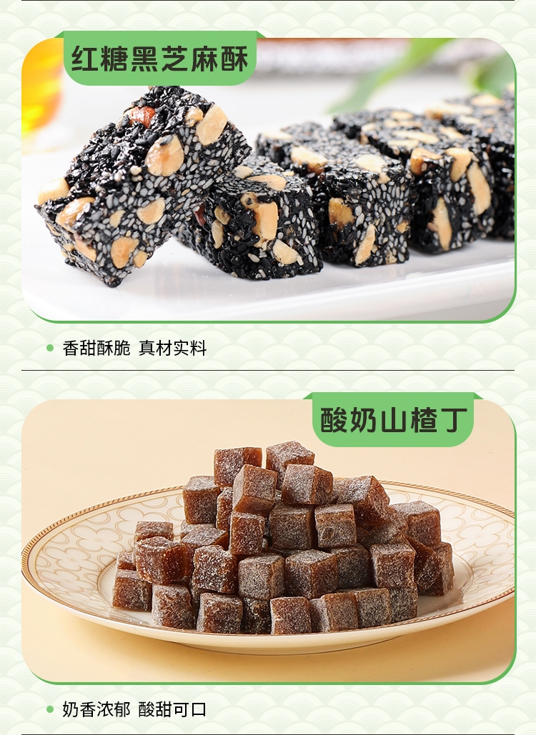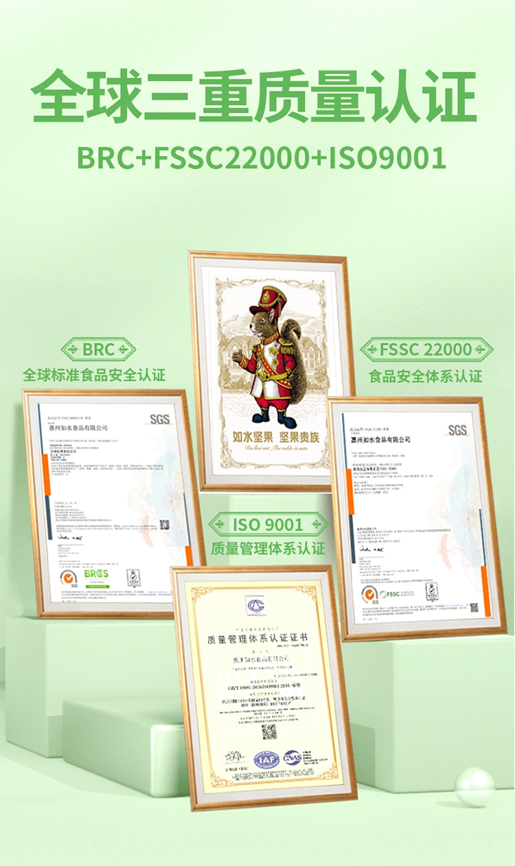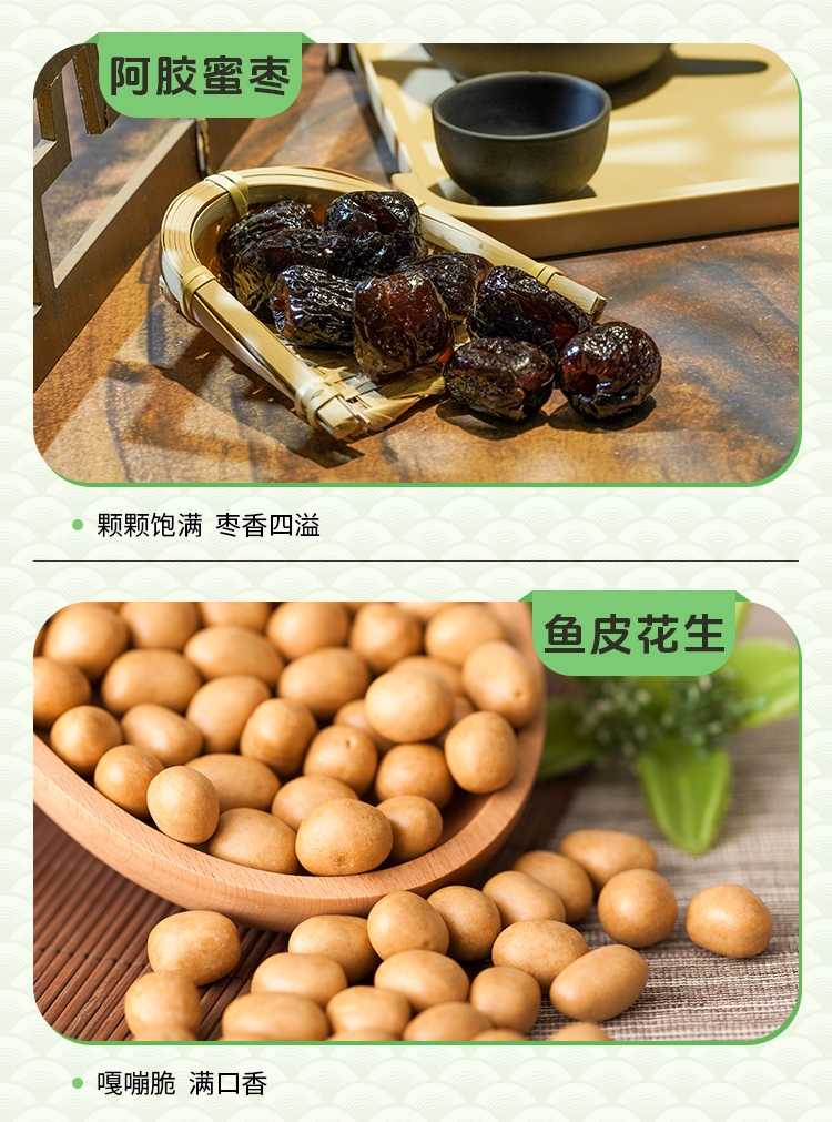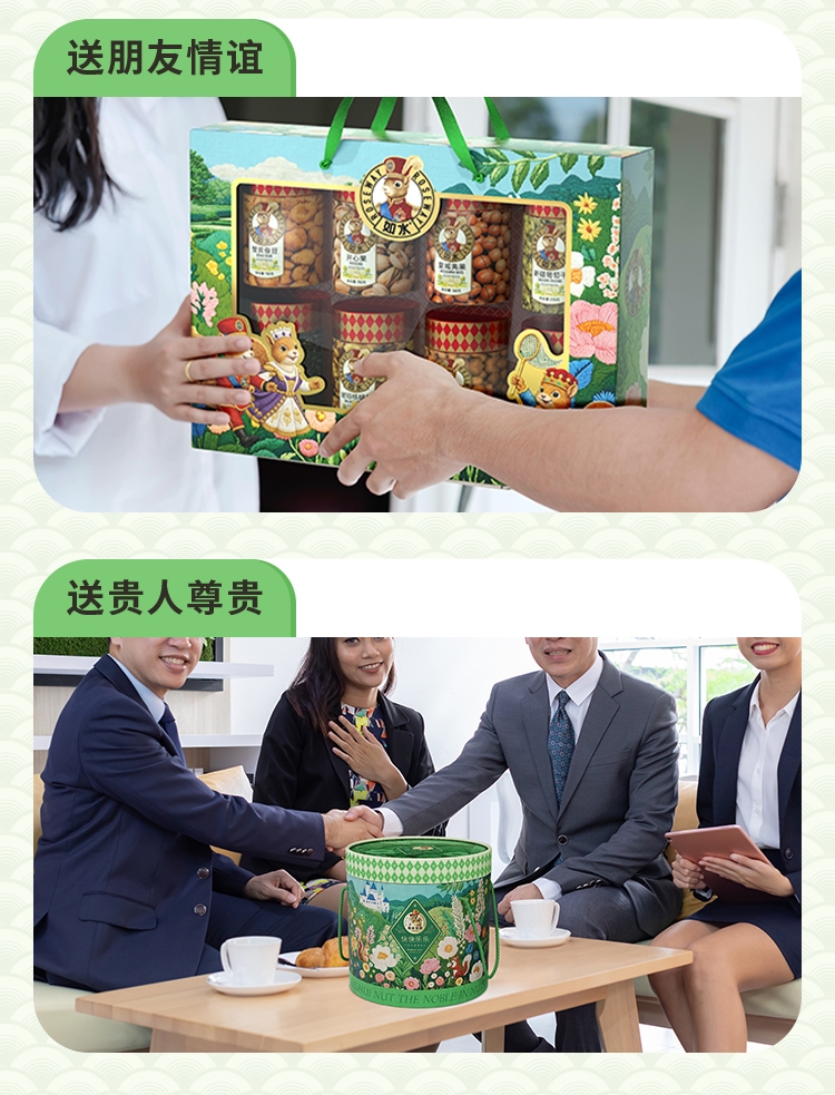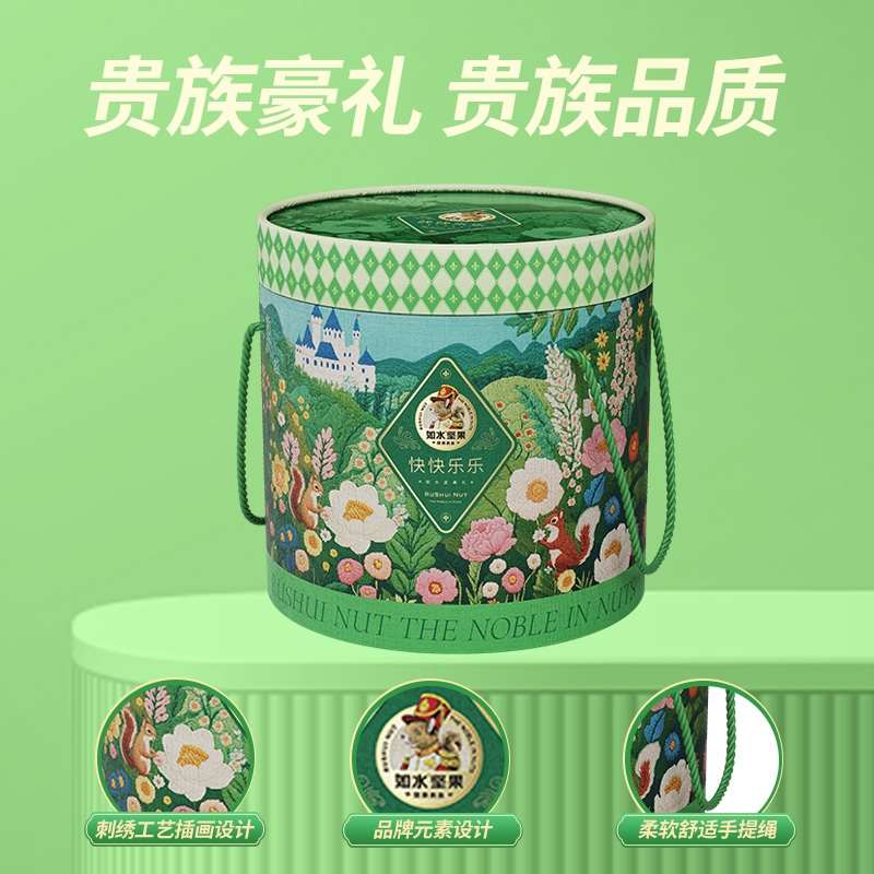 内容物:如水紫皮腰果100g 如水夏威夷果100g 如水薄皮核桃300g 如水坚果黄油小曲奇80g 如水铁山楂200g 如水红糖黑芝麻酥120g 如水酸奶山楂丁110g 如水阿胶蜜枣80g 如水鱼皮花生100g