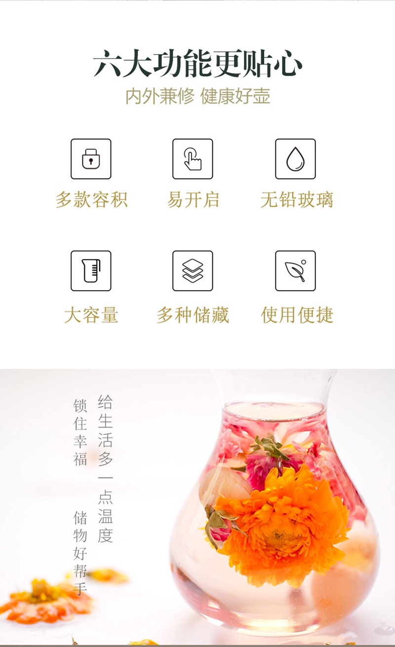 材质:无铅玻璃+食品级PS+食品级硅胶密封圈