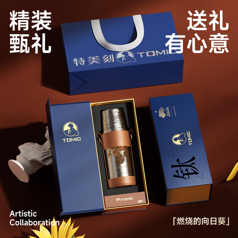 时尚压花手拎杯套;纯钛茶隔,轻松过滤;5D纳米鎏金真空技术