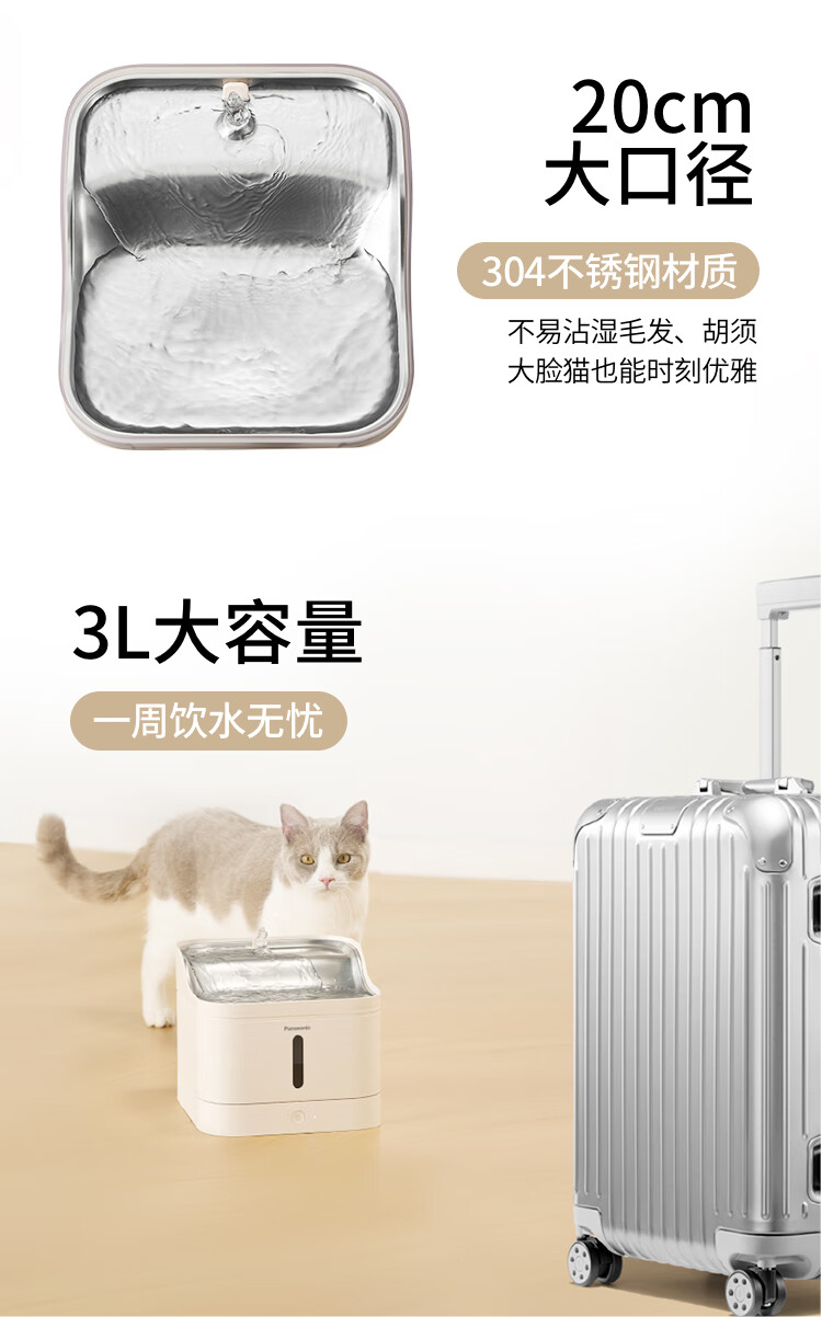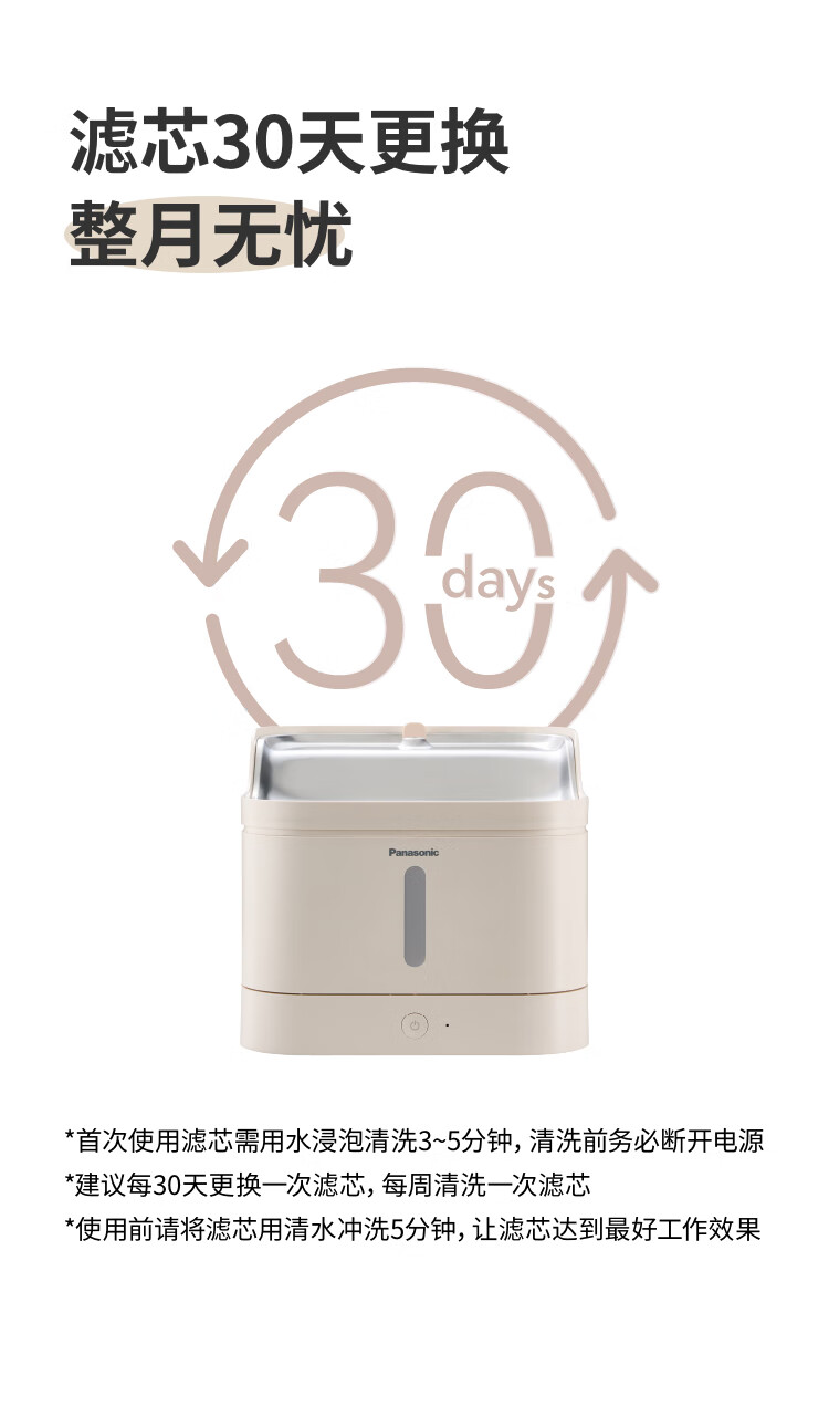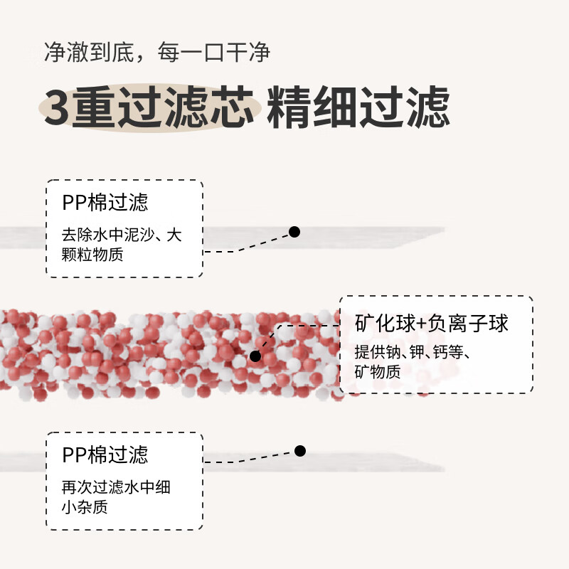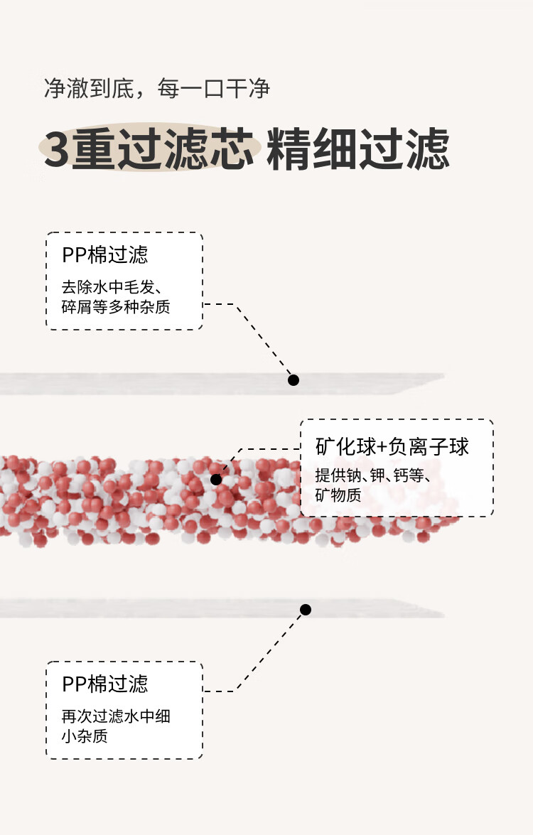 3重过精细过滤;双电源供电模式,无惧断电突发状况;3L容水量