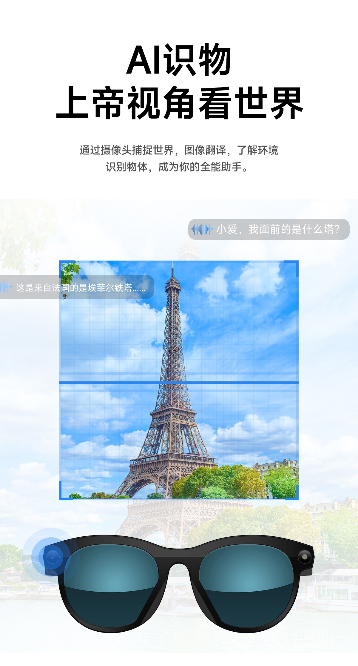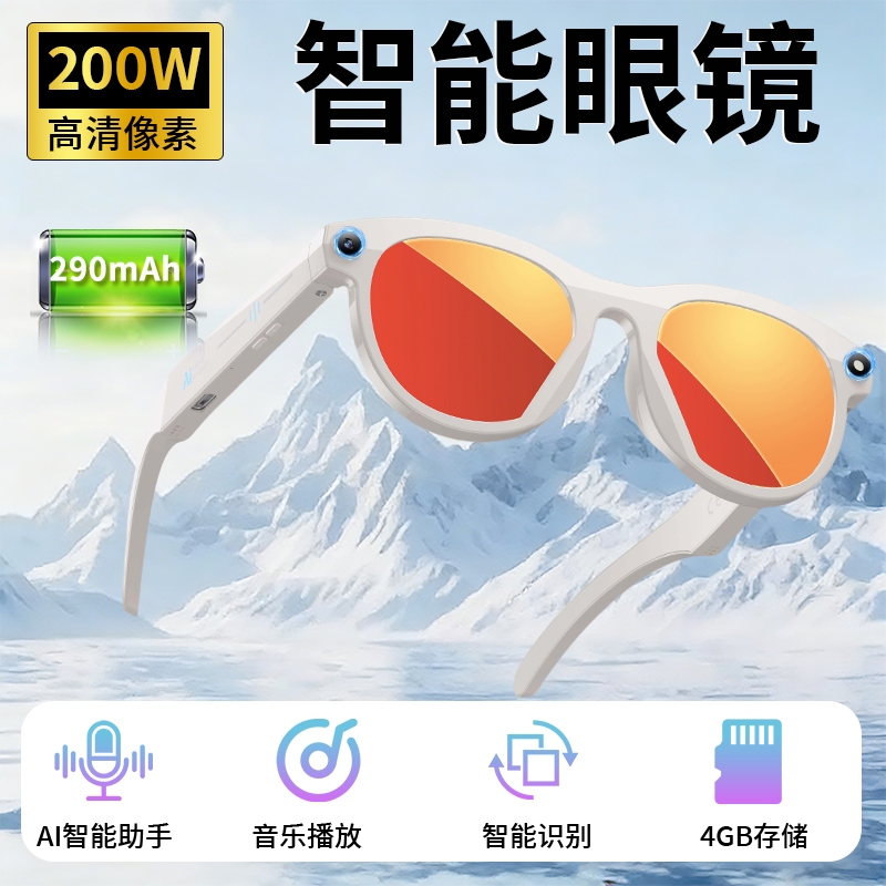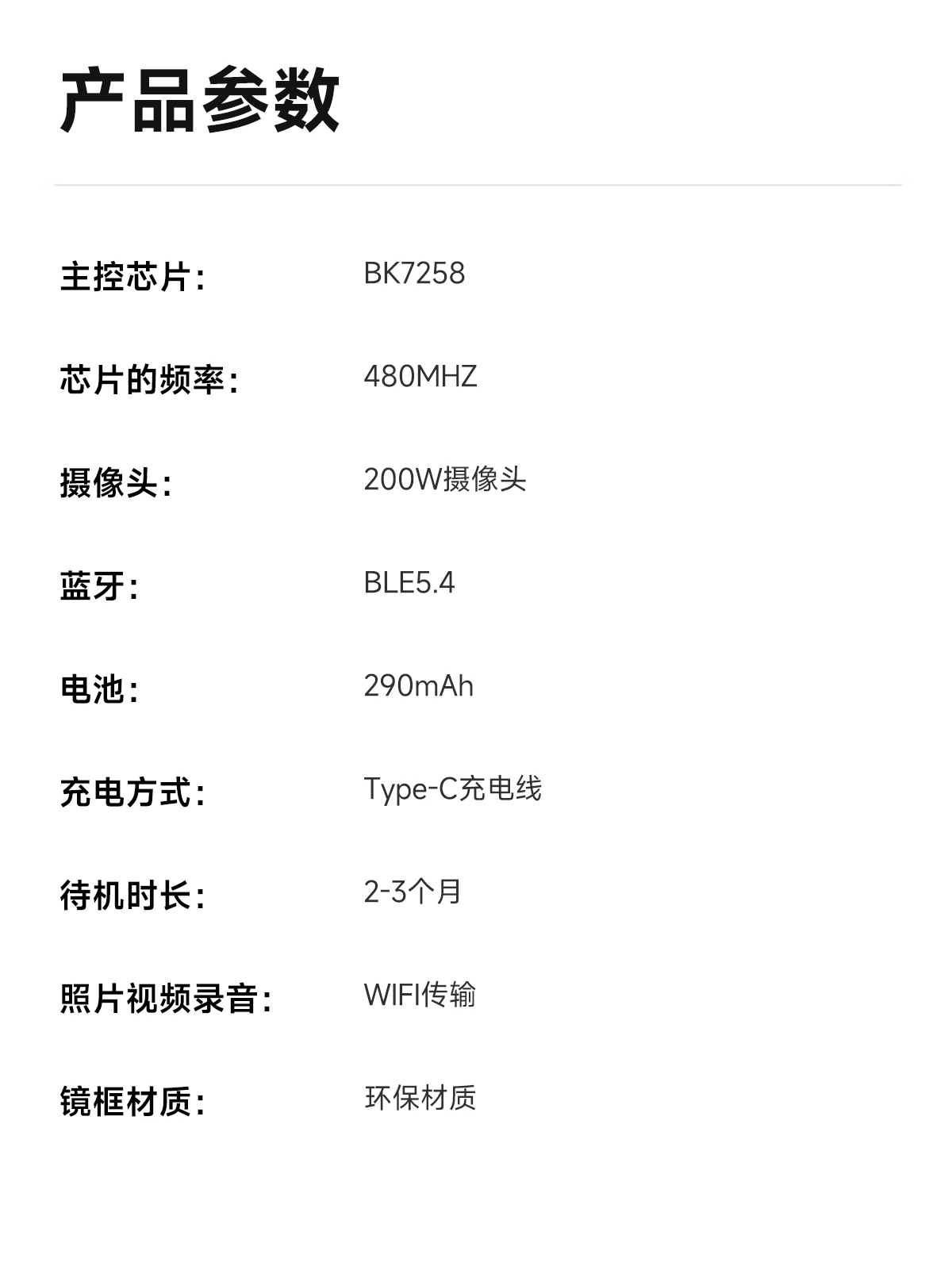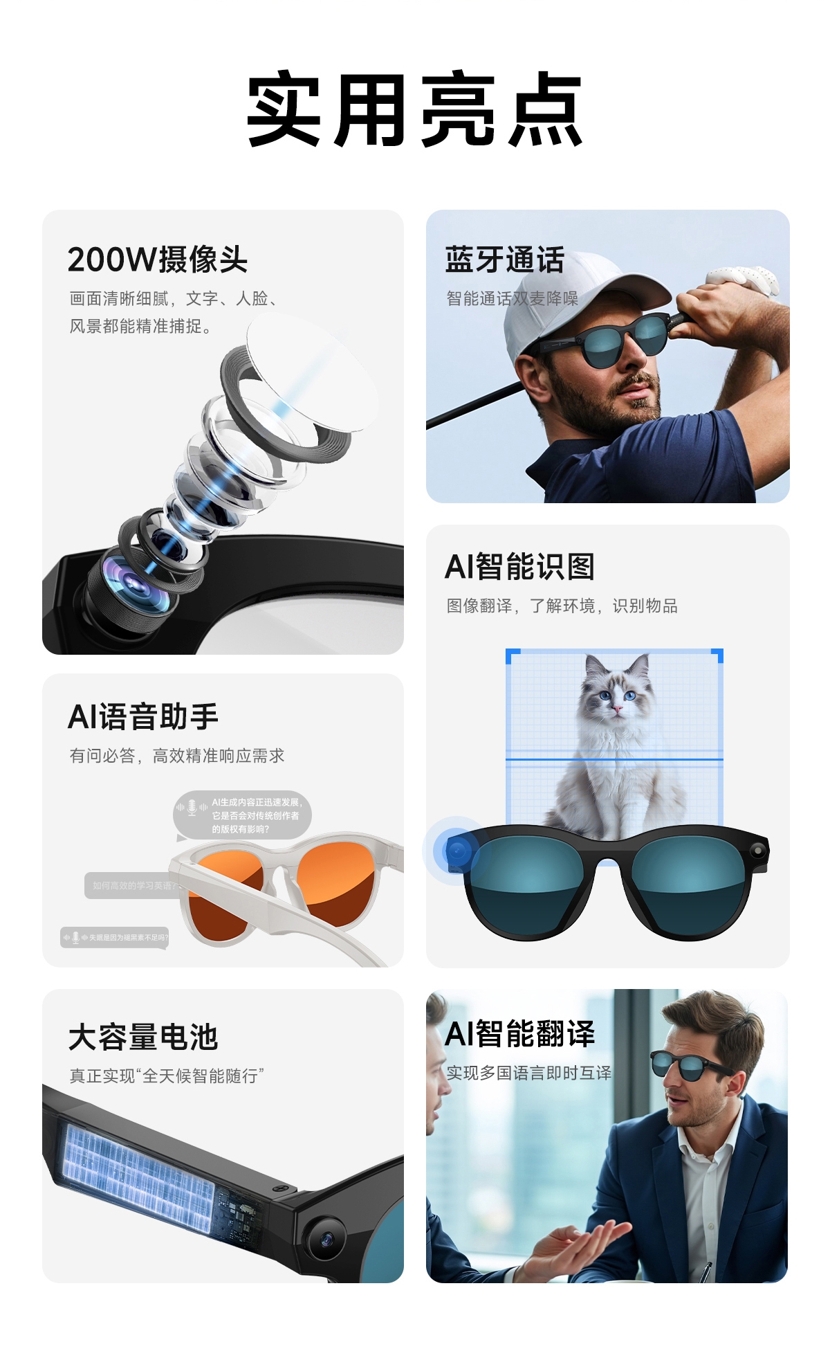 AI语音助手/拍照/录视频/录音/音乐控制/蓝牙通;提示音/指示灯/翻译/智视识物/触摸/可连接电脑图;音乐播放/离线语音等;语音提醒语言(中文/英文)