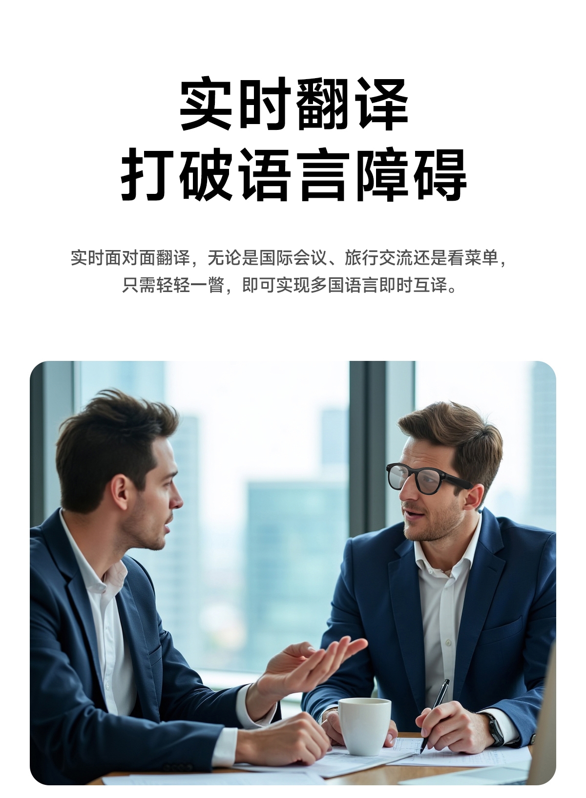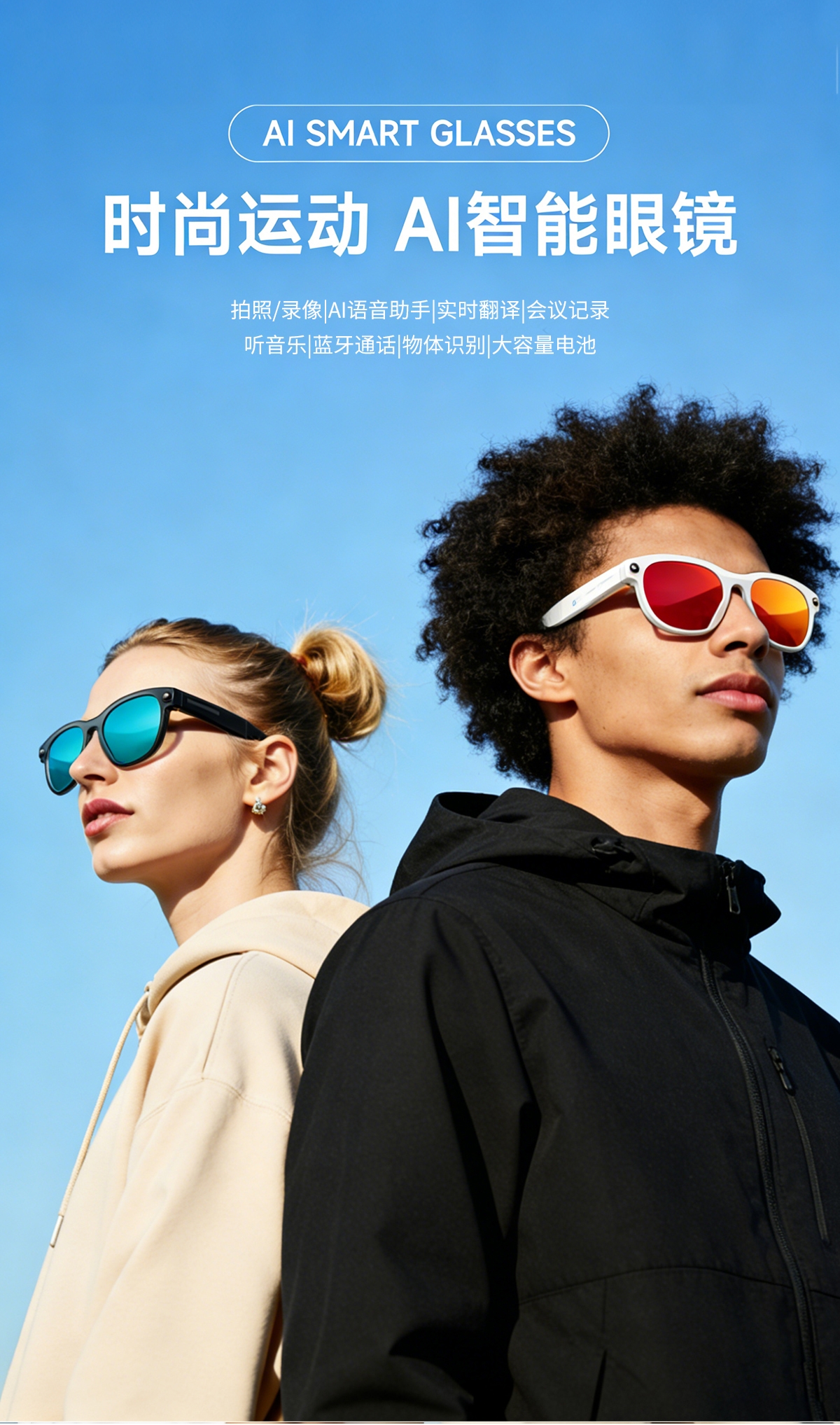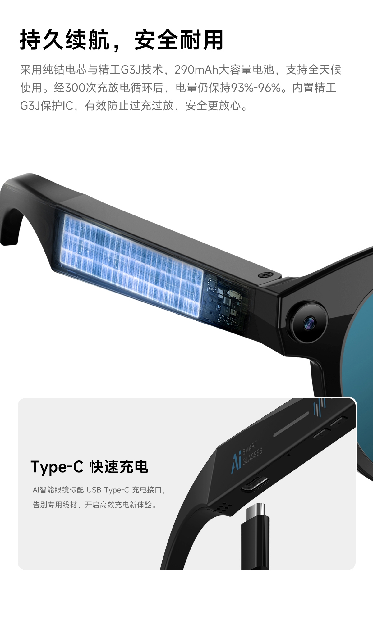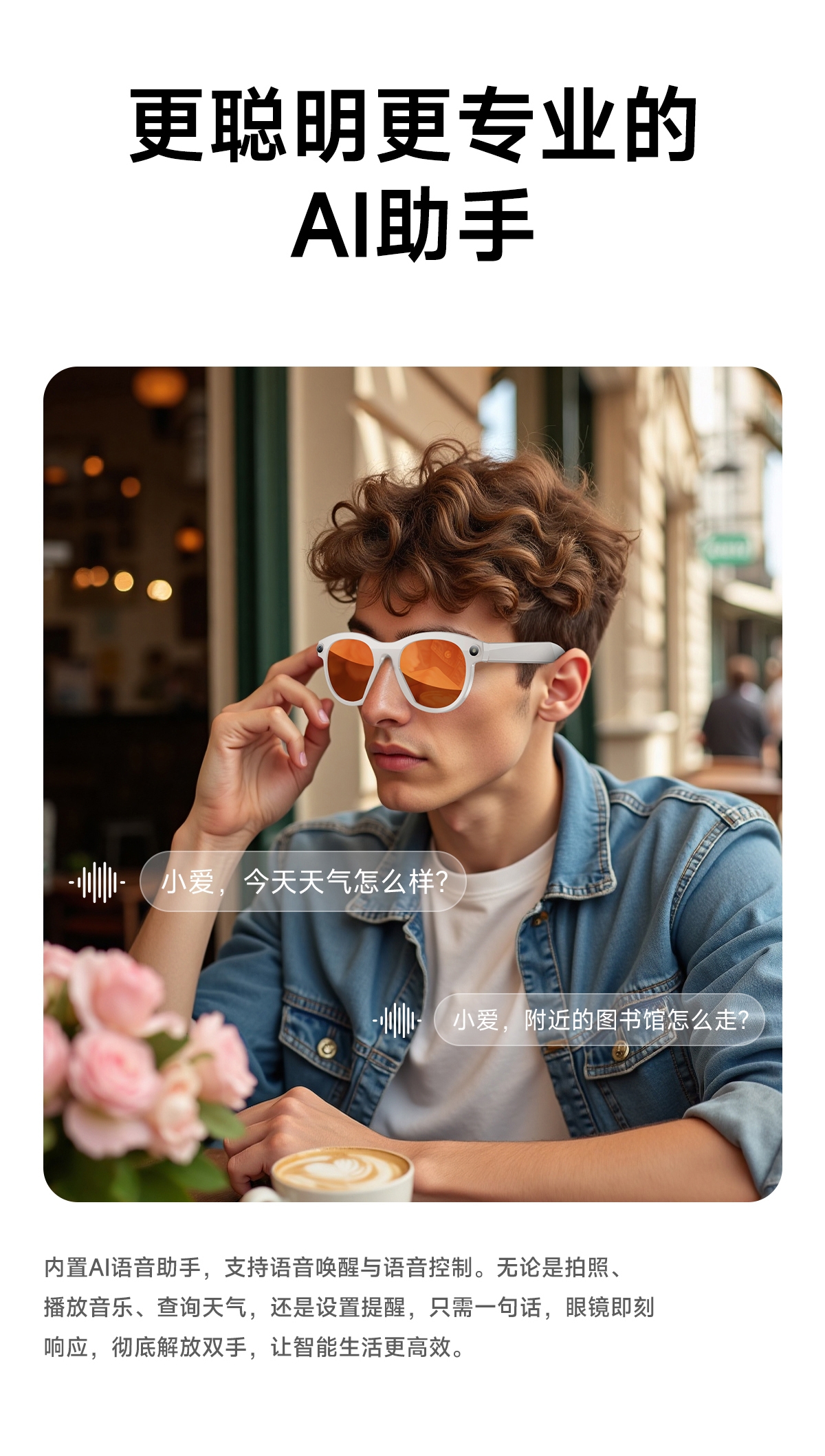 AI语音助手/拍照/录视频/录音/音乐控制/蓝牙通;提示音/指示灯/翻译/智视识物/触摸/可连接电脑图;音乐播放/离线语音等;语音提醒语言(中文/英文)