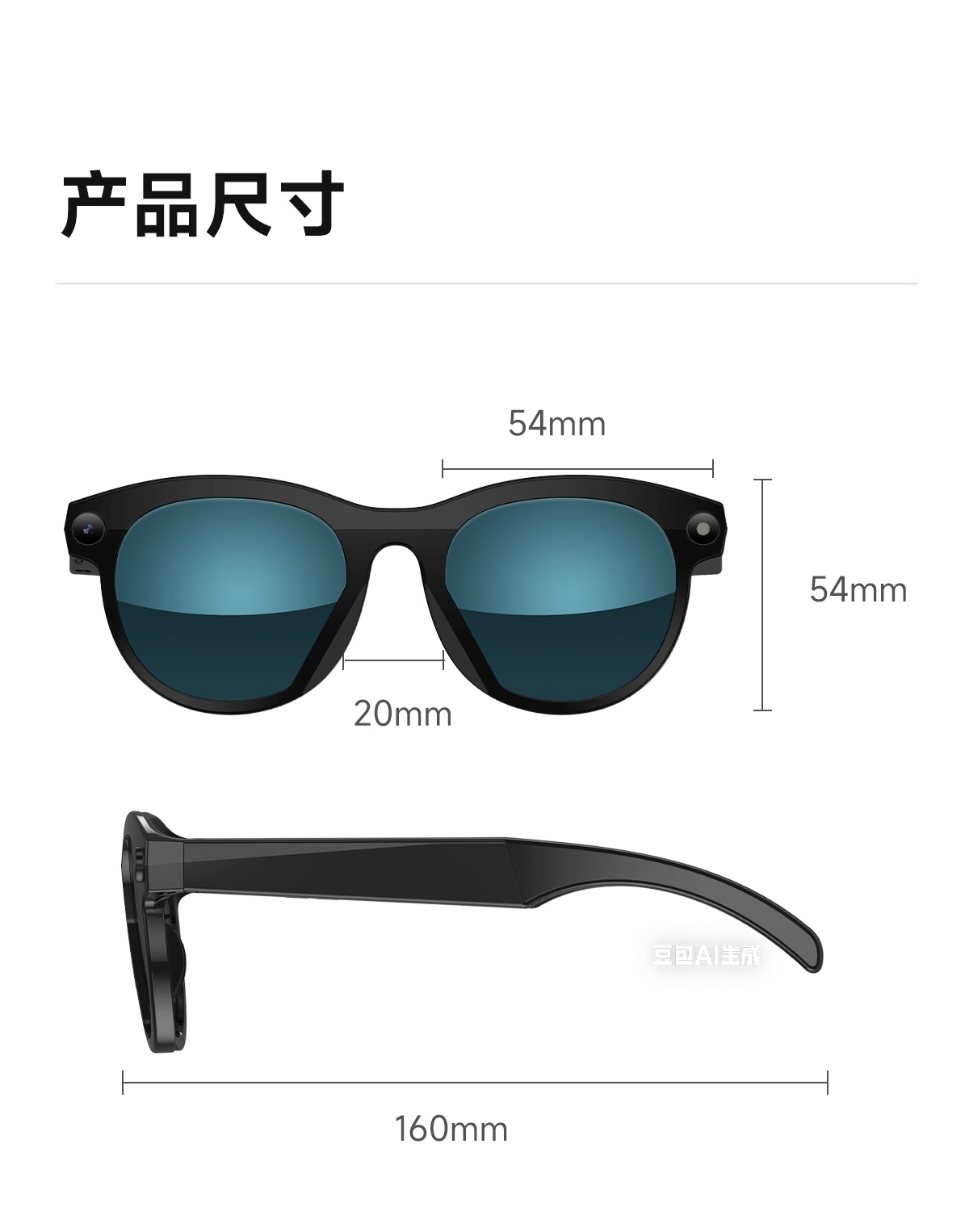 智能眼镜尺寸(mm):镜腿158*镜框150*镜高45mm