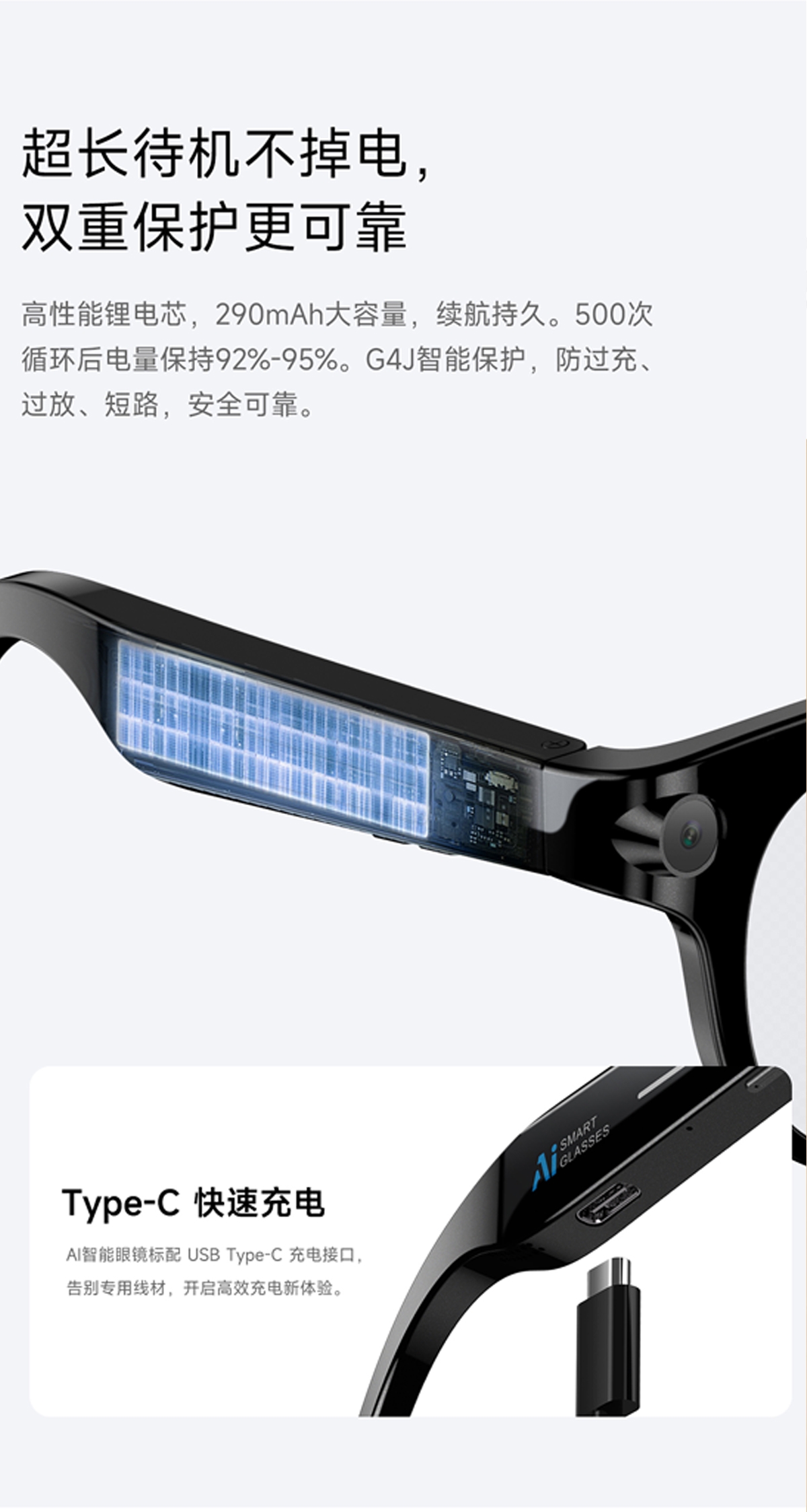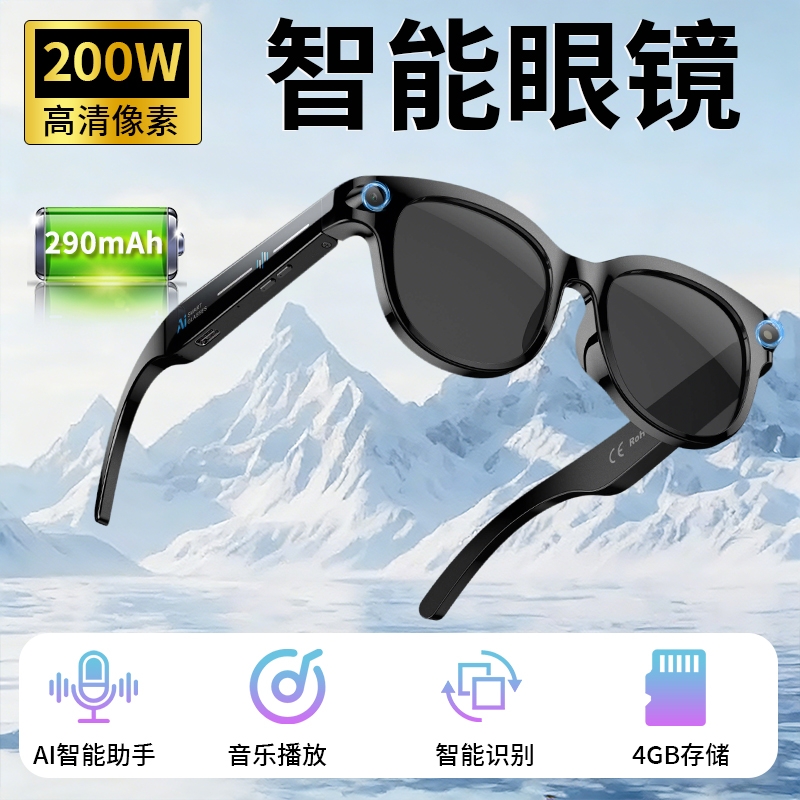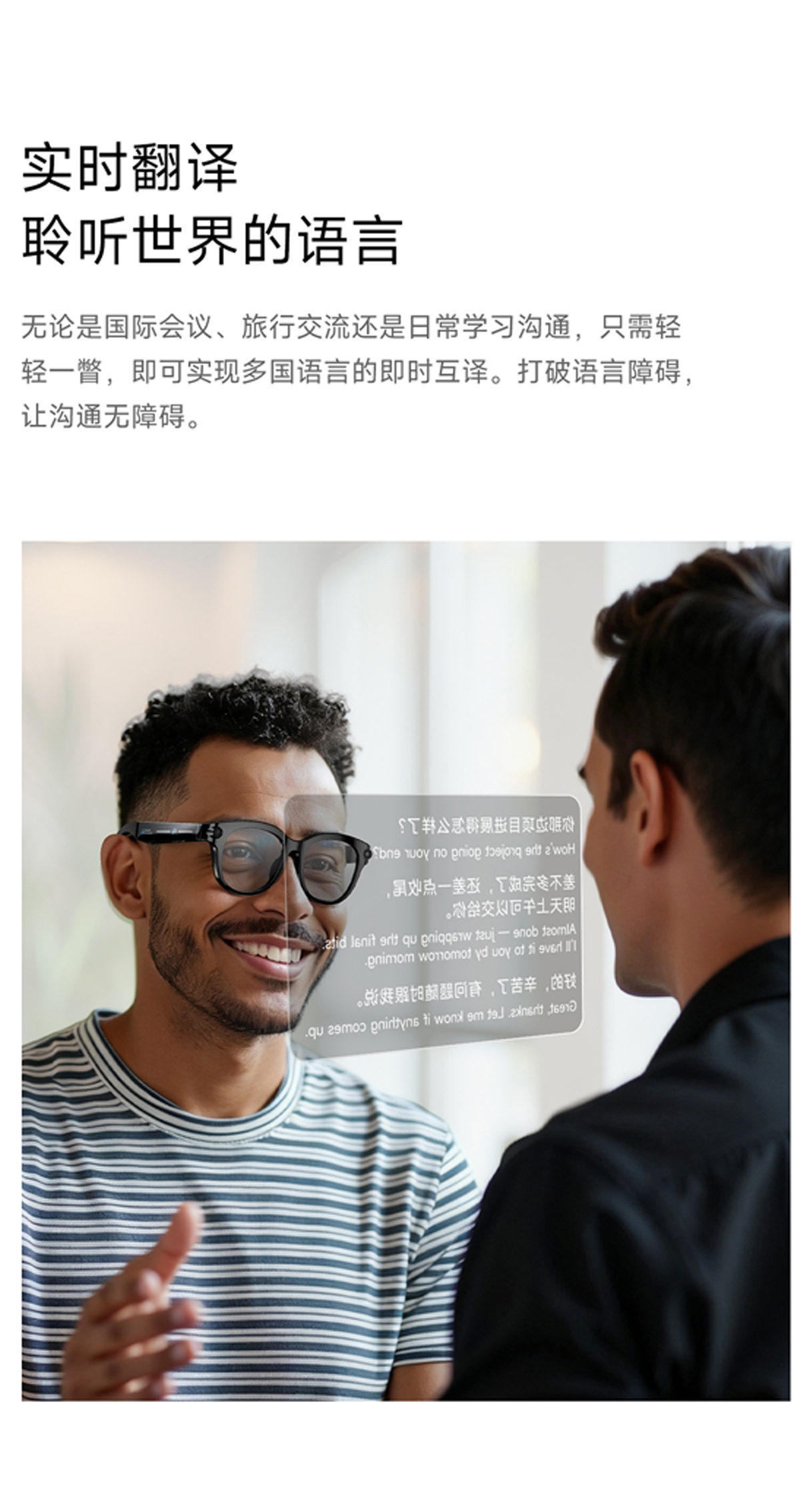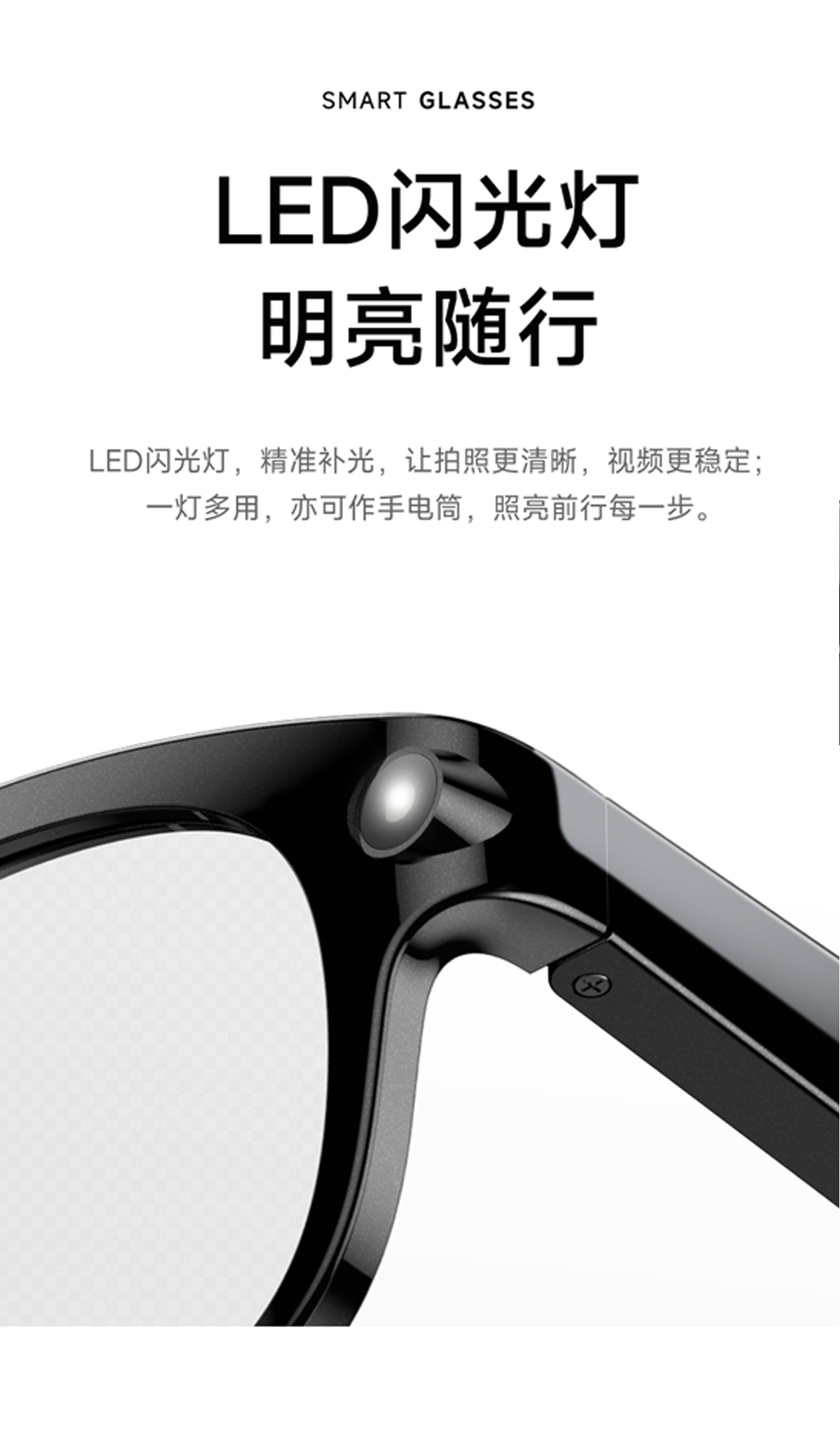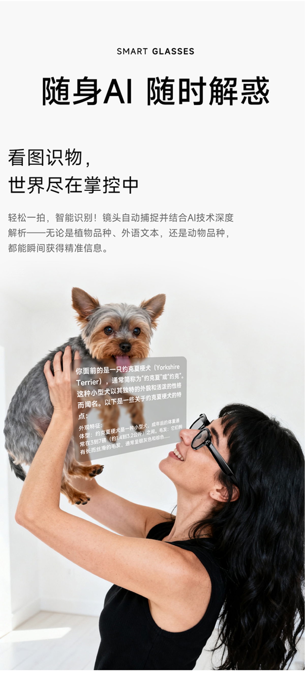 AI语音助手/拍照/录视频/录音/音乐控制/蓝牙通;提示音/指示灯/翻译/智视识物/触摸;可连接电脑图片视频传输/音乐播放/离线语音等