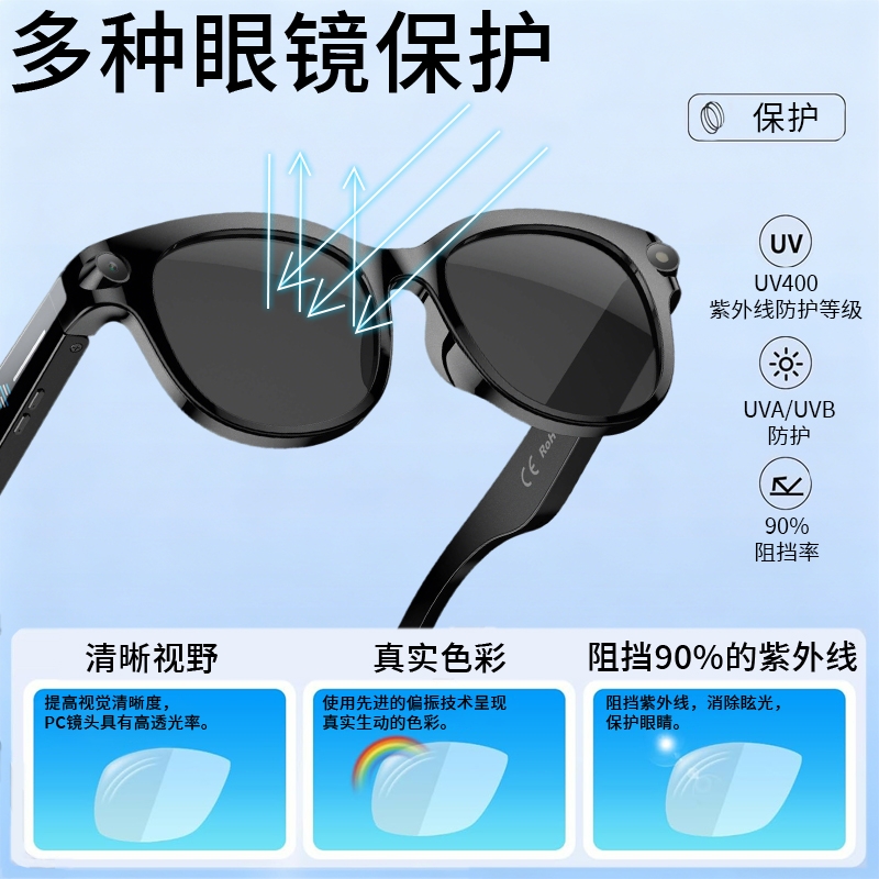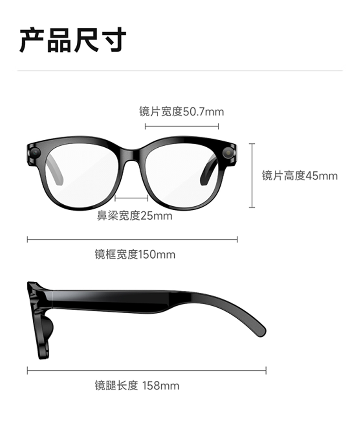 智能眼镜尺寸(mm):镜腿160*镜框148*镜高54mm