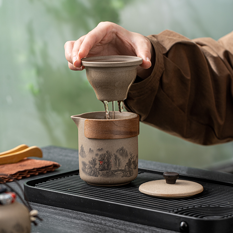 辞蕴 粗陶旅行茶具一壶三杯小套装